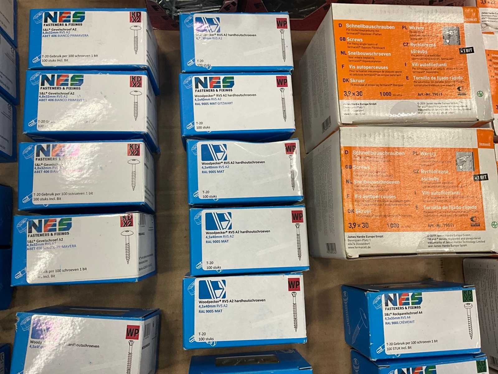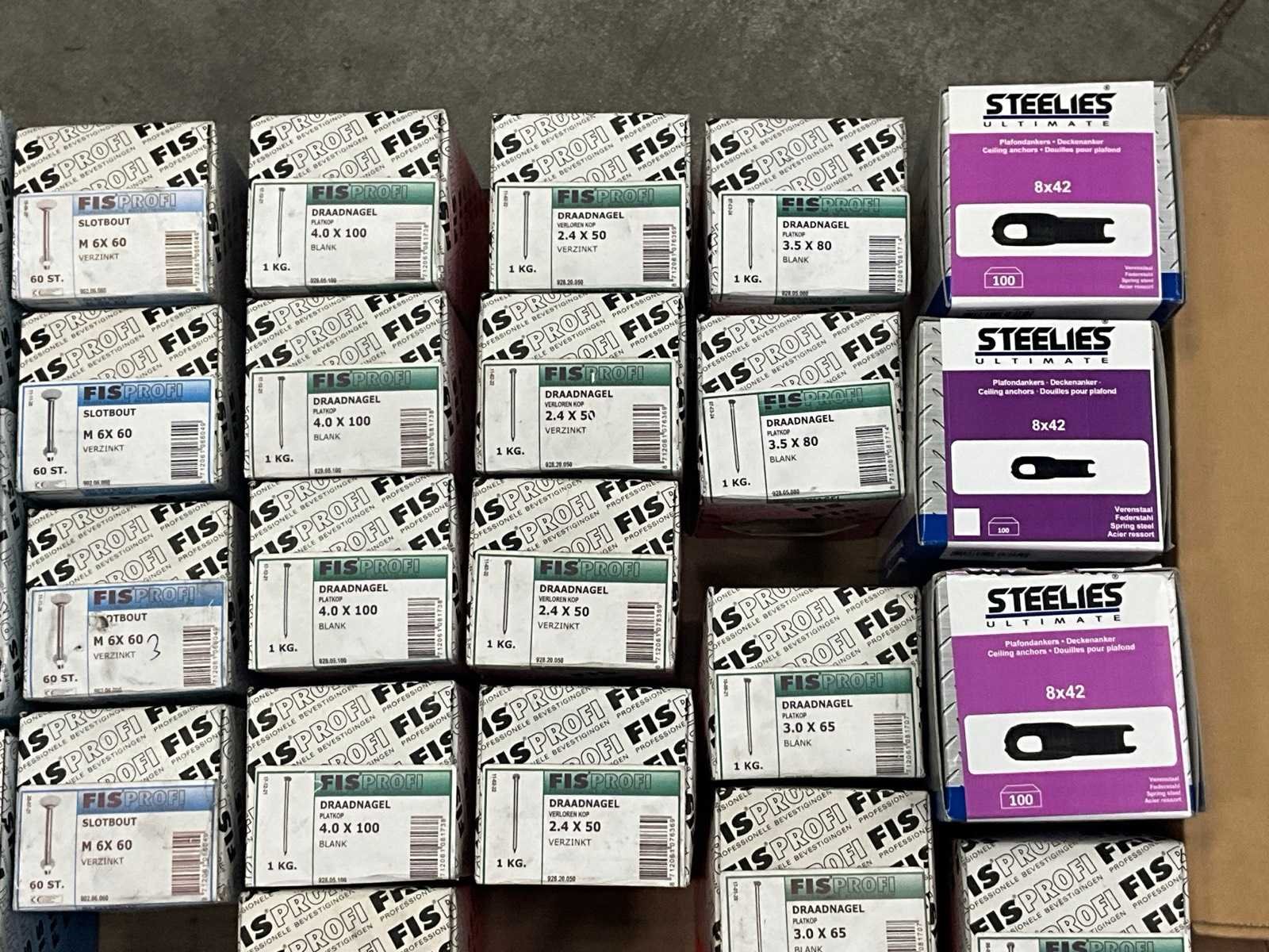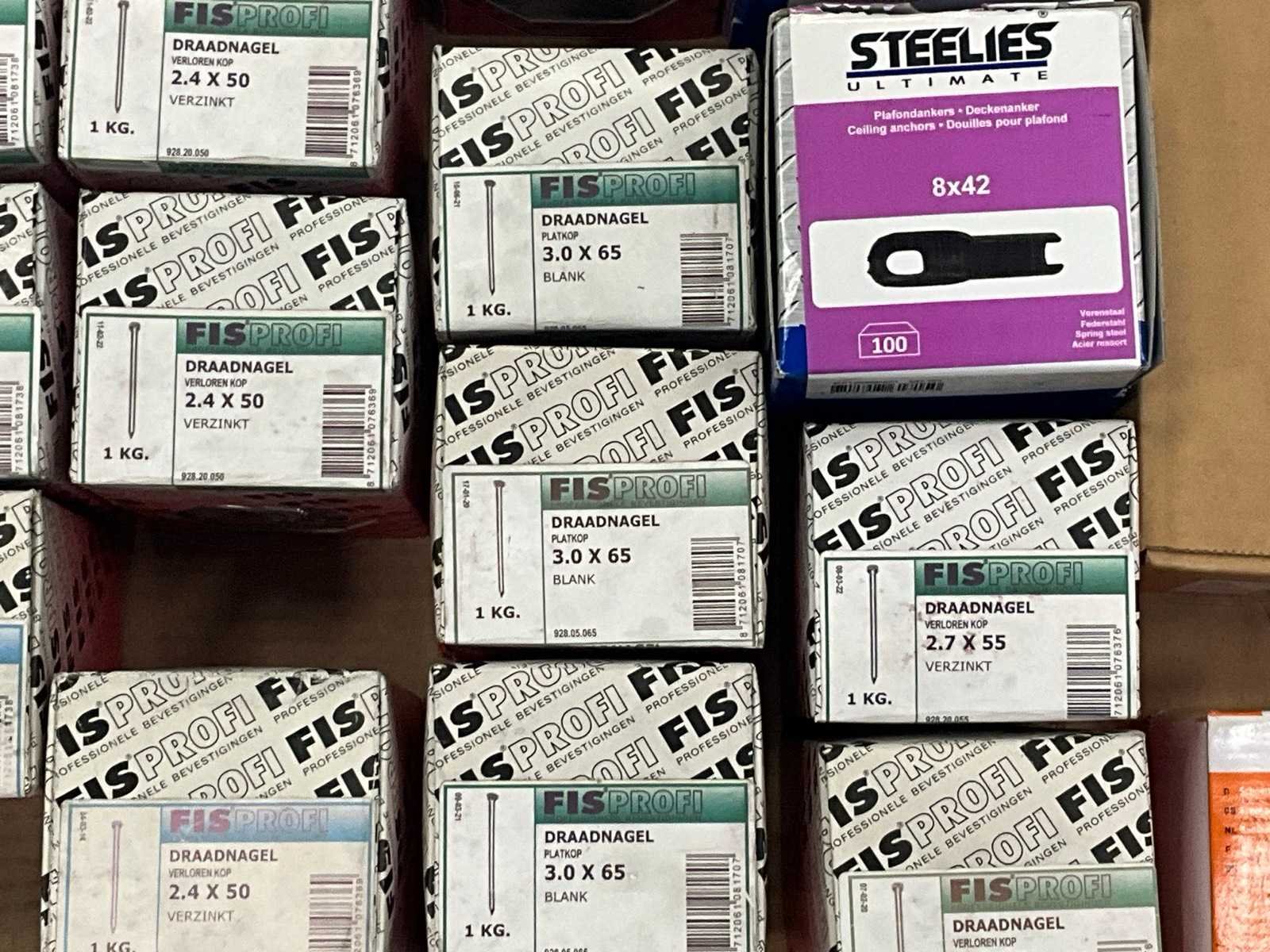 Partij diverse schroeven, draadnagels, slotbouten etc.