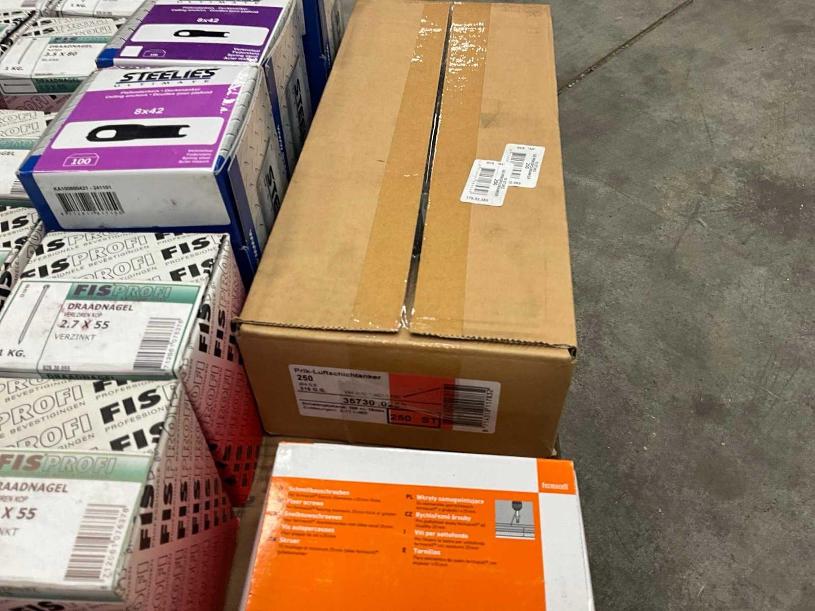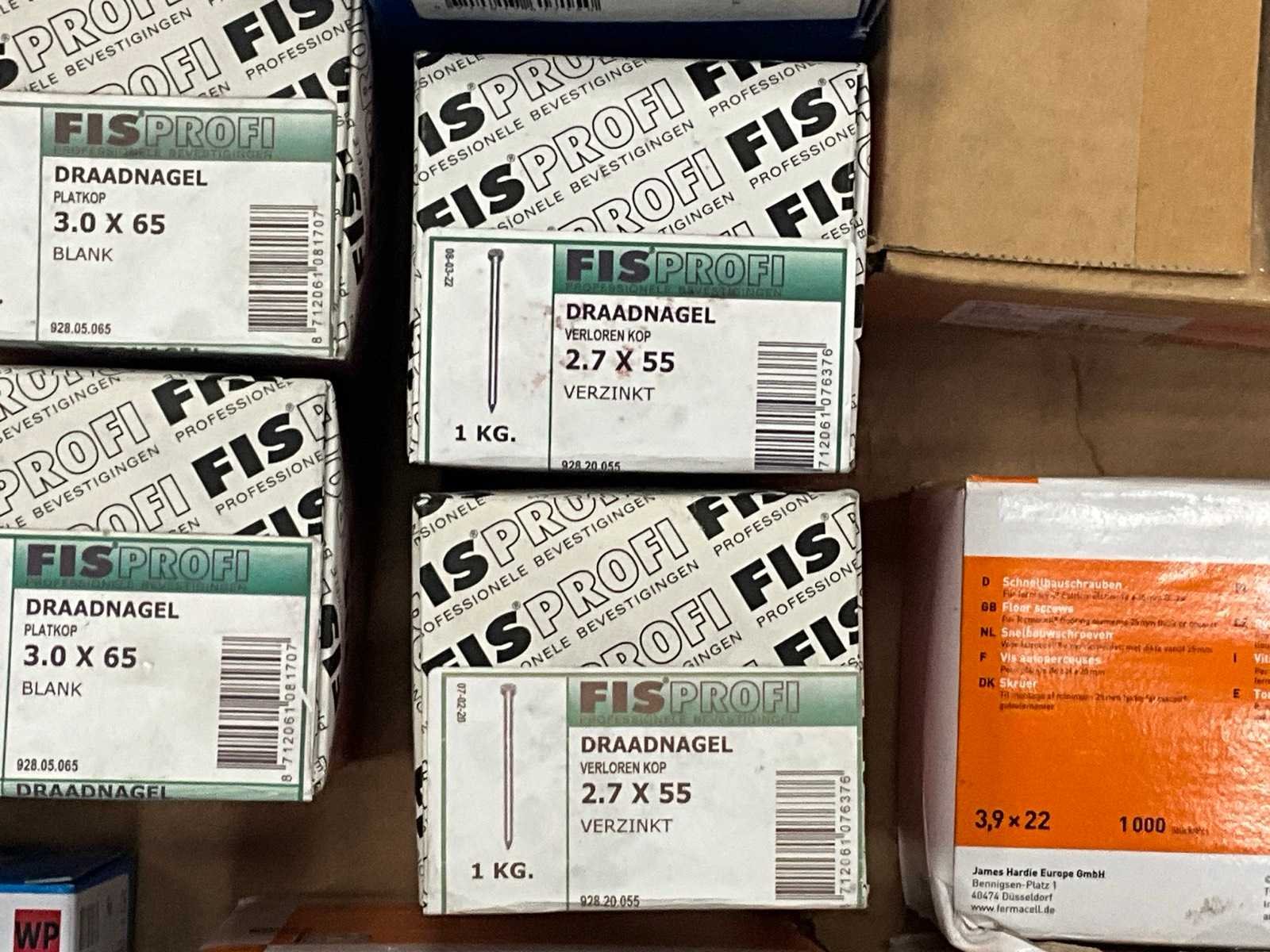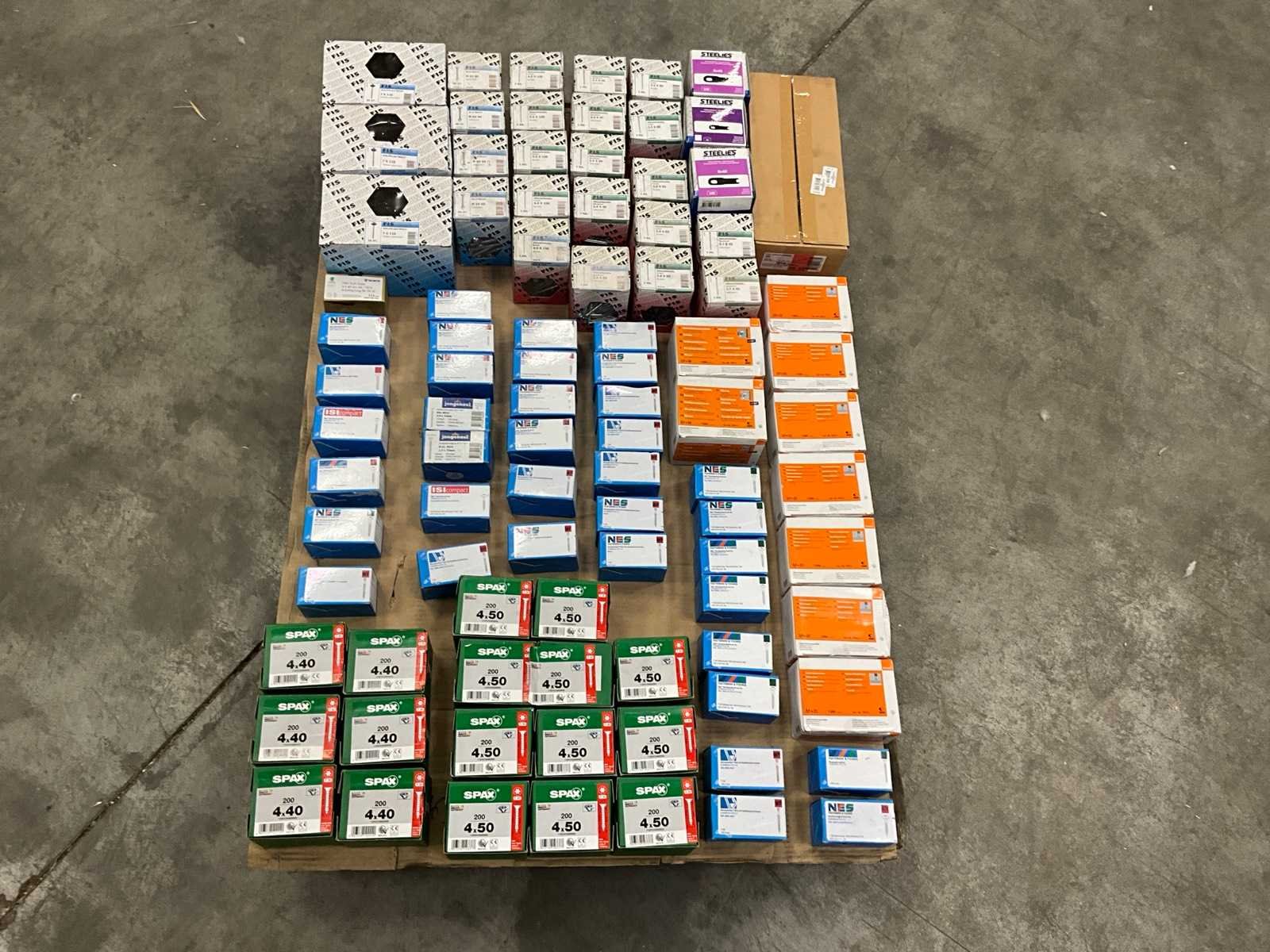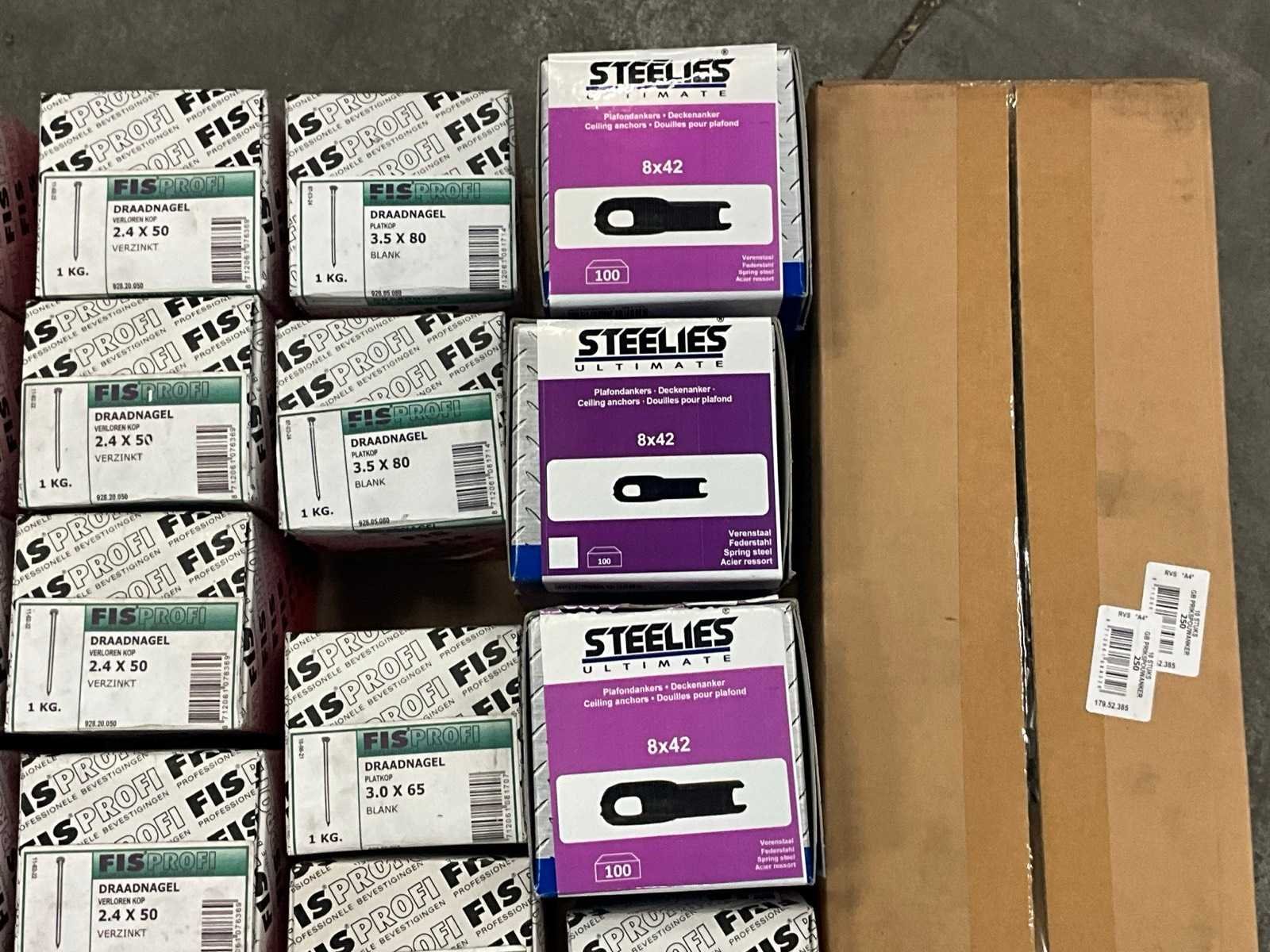 Partij diverse schroeven, draadnagels, slotbouten etc.