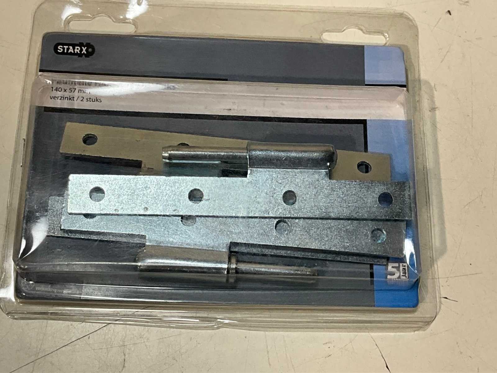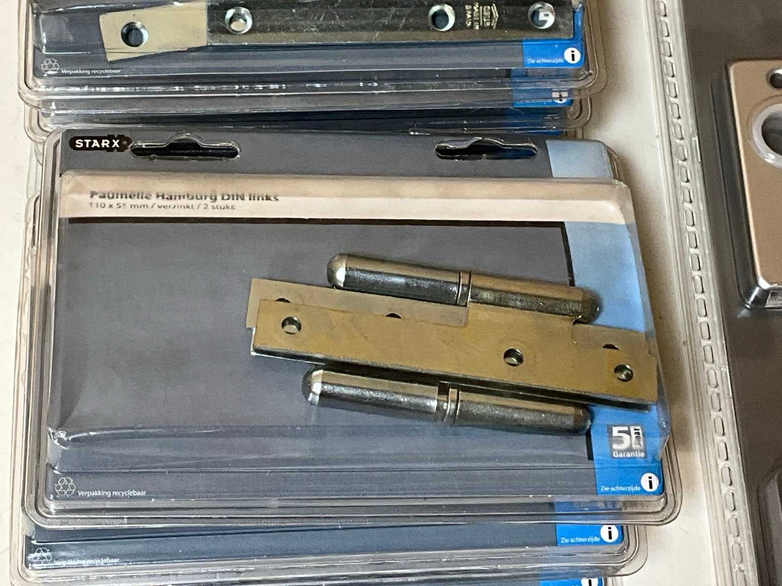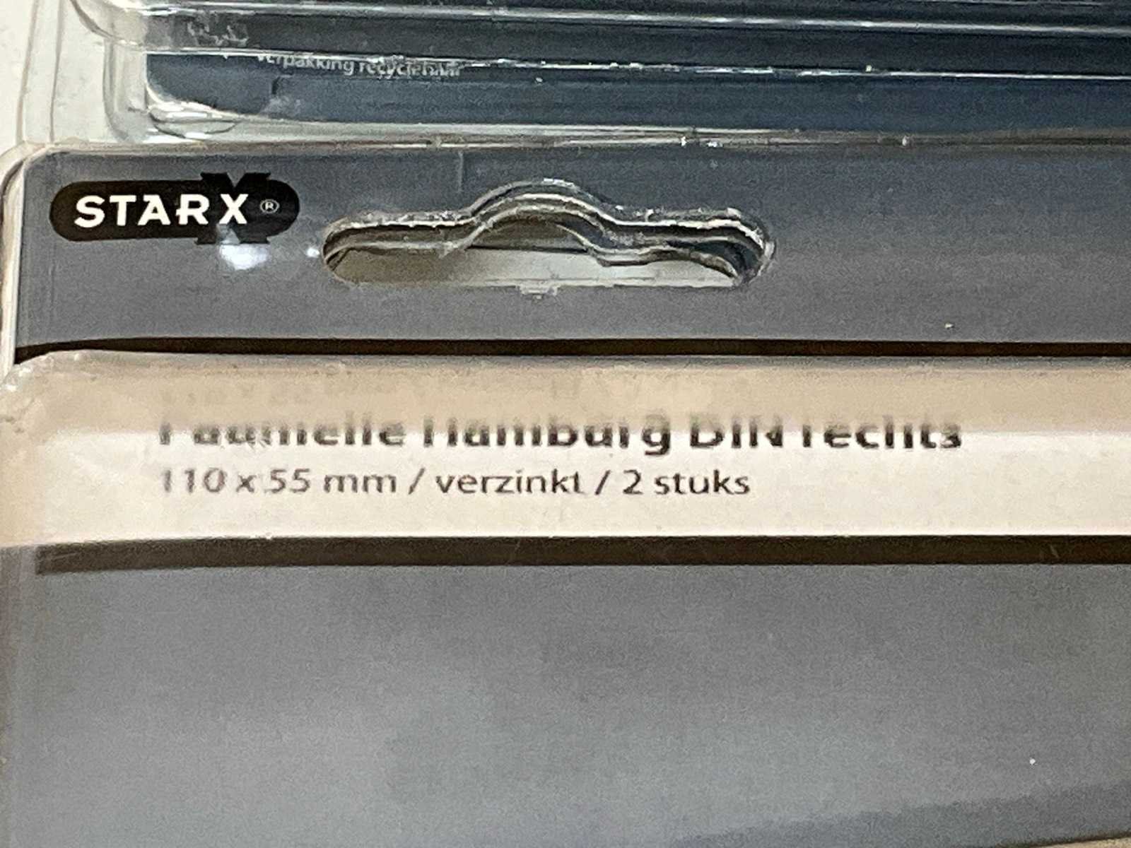 Paumelle Hamburg Links 140x57mm 8x Paumelle Hamburg Links 110x55mm 6x Paumelle Hamburg Rechts 110x55mm 7x RVS Kogellagerpaumelle 3x Loopslot met deurbeslag 2x Merk: Starx
