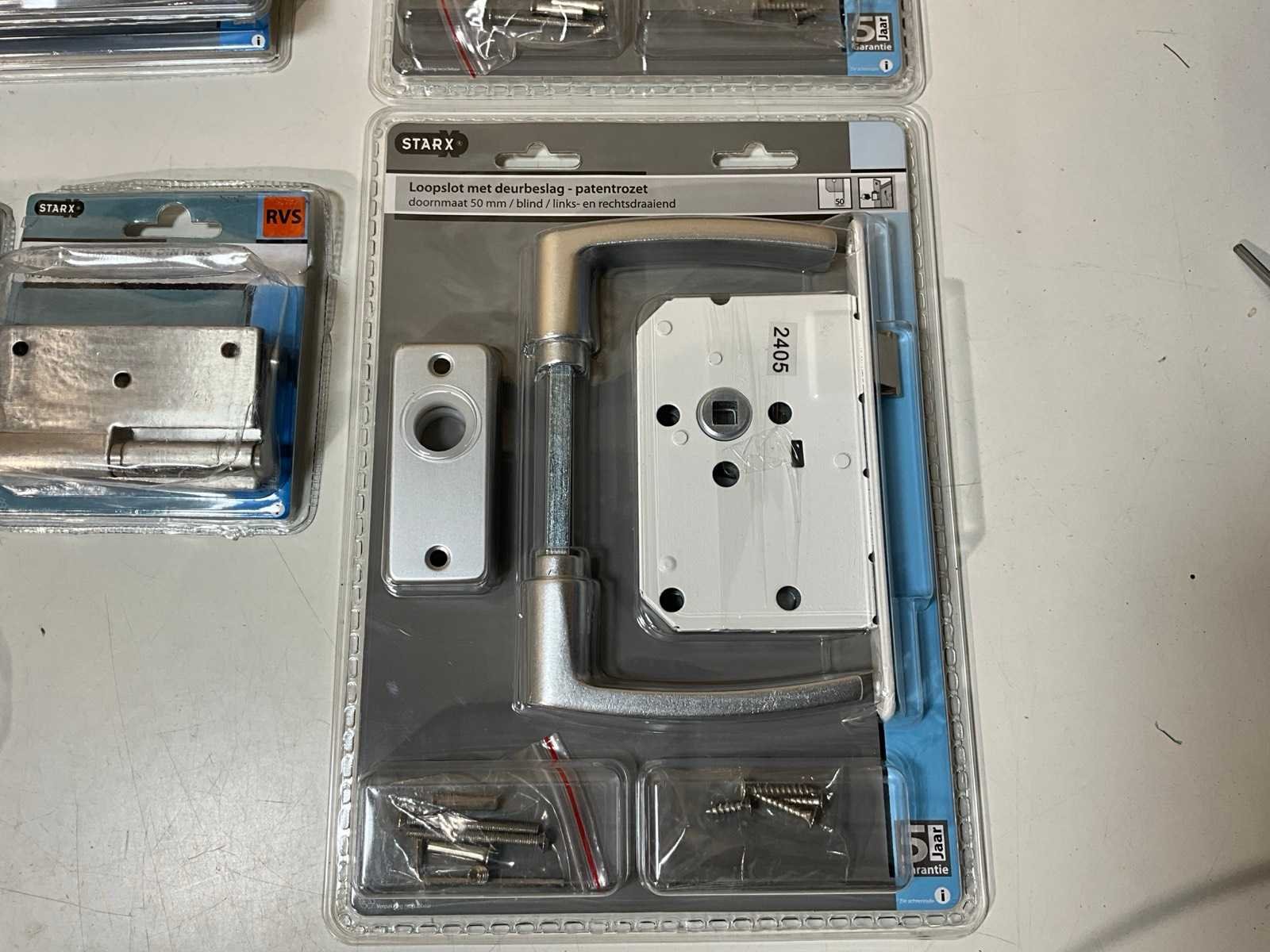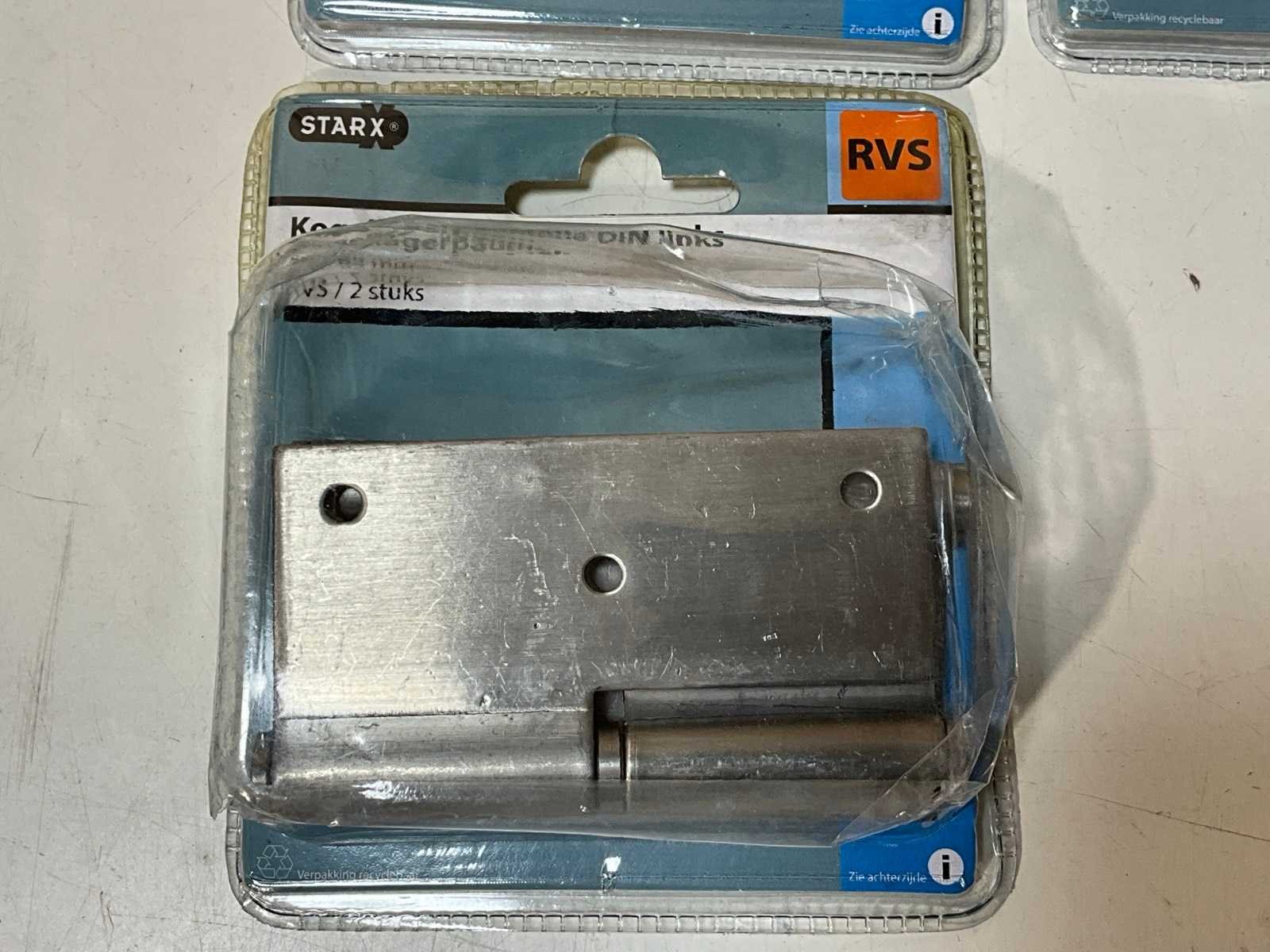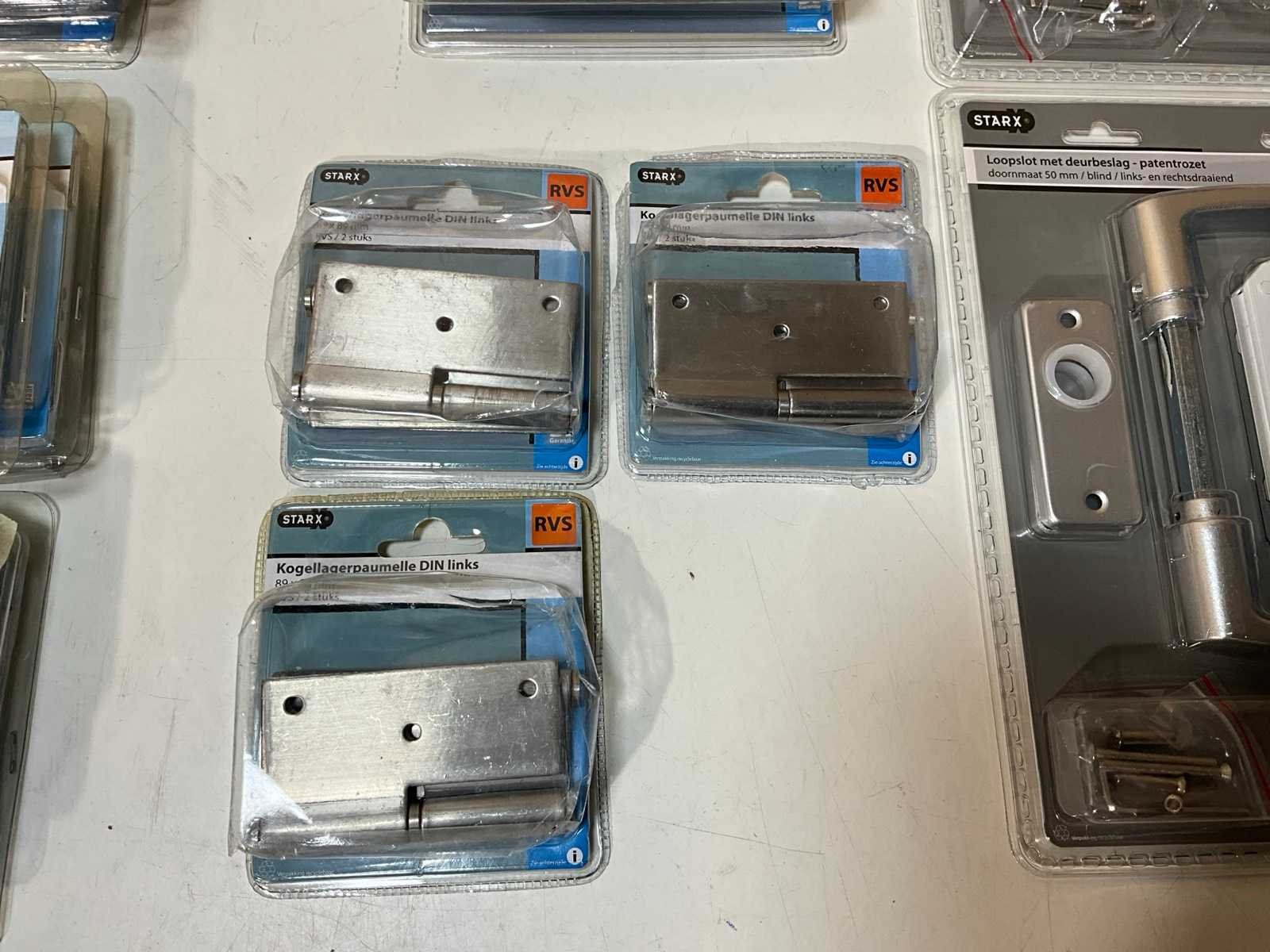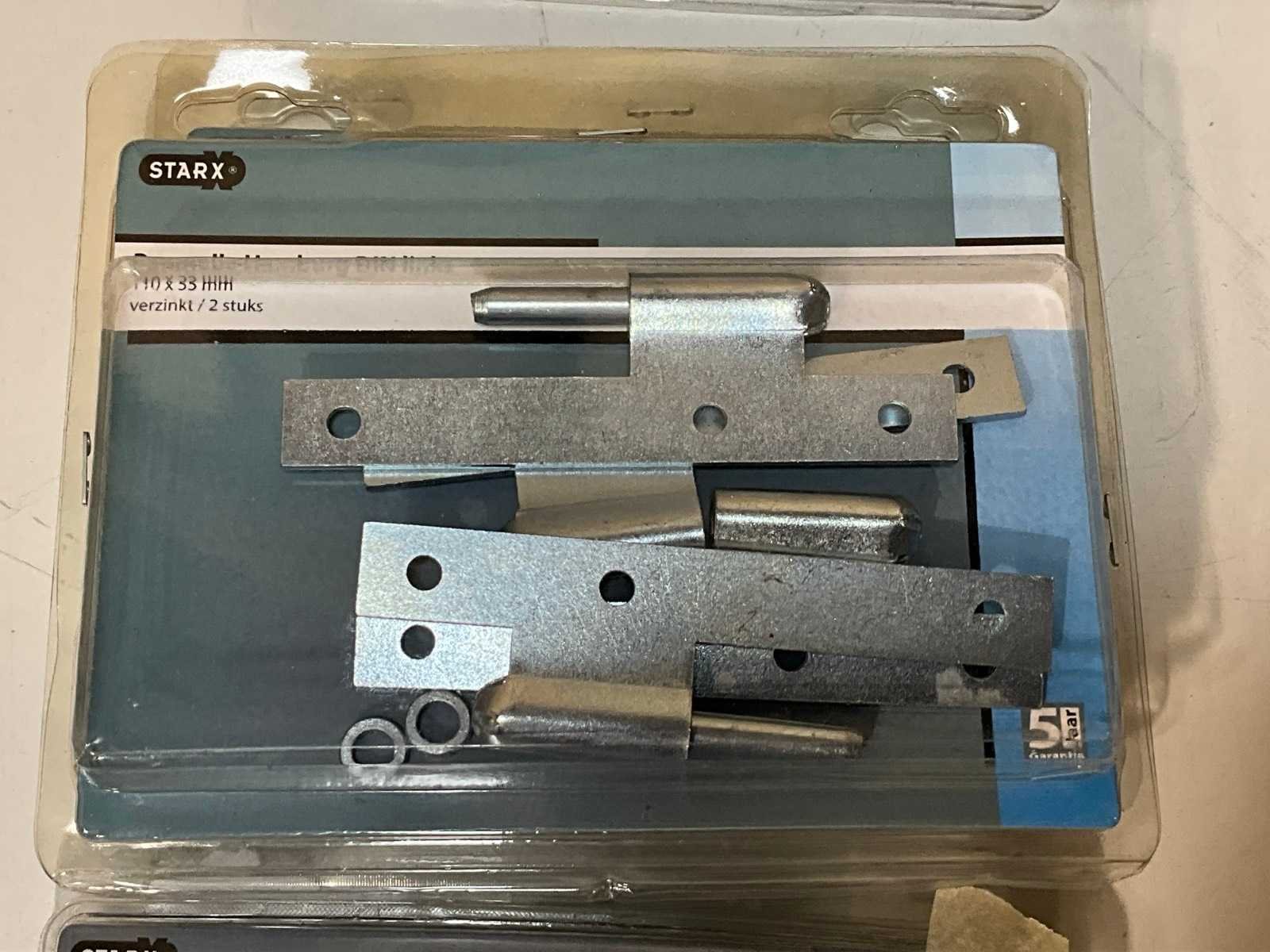 Paumelle Hamburg Links 140x57mm 8x Paumelle Hamburg Links 110x55mm 6x Paumelle Hamburg Rechts 110x55mm 7x RVS Kogellagerpaumelle 3x Loopslot met deurbeslag 2x Merk: Starx