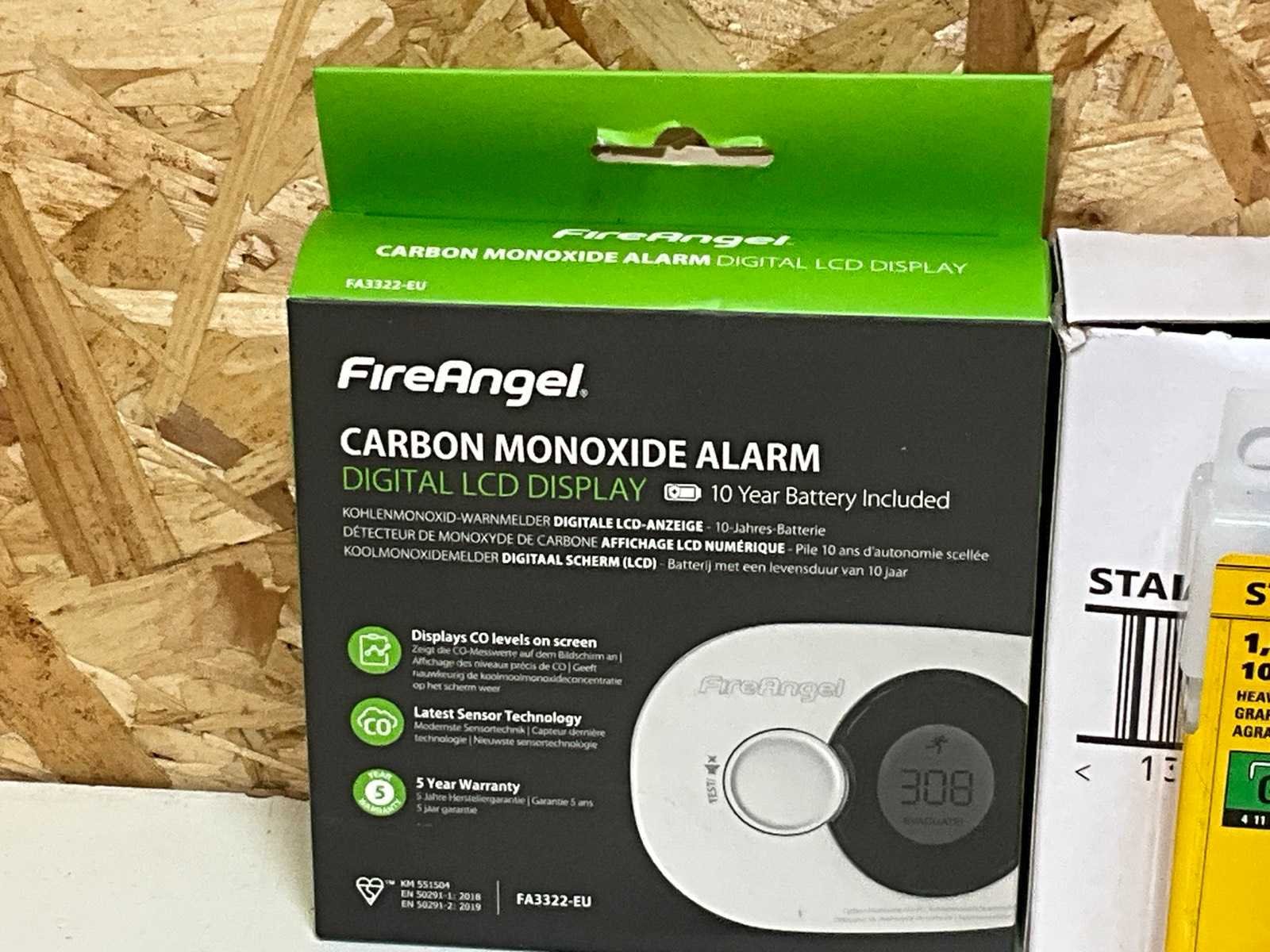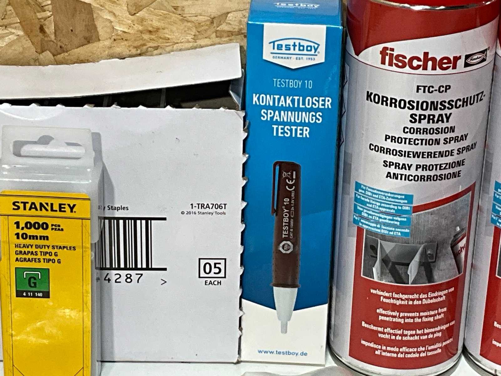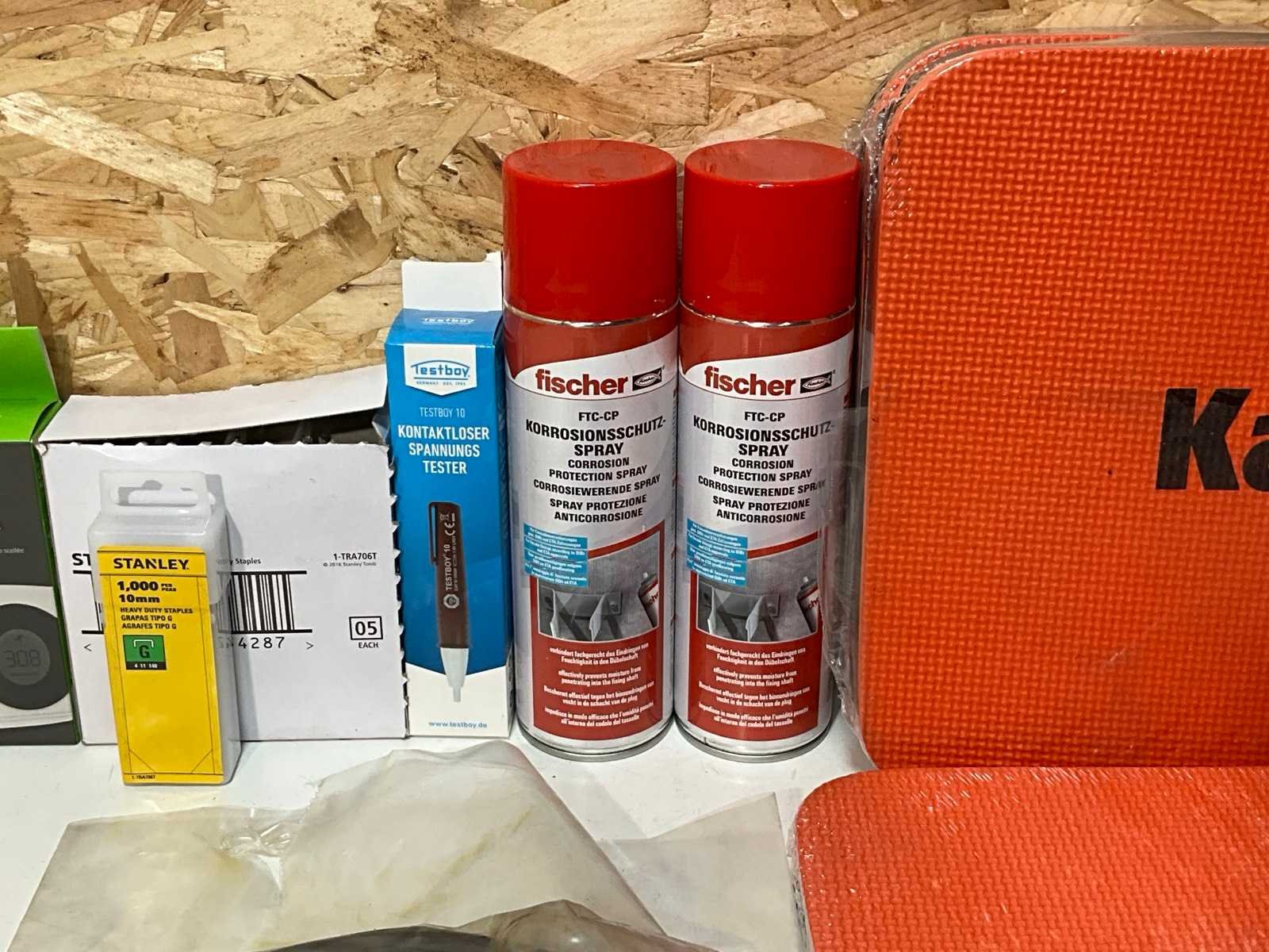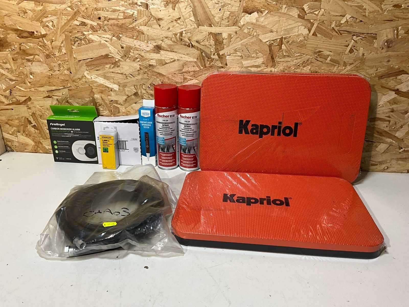 1x CO2 melder 1x Spanningstester 2x Fischer spuitbus 3x Kniekussen 1x Slang 5x Stanley nieten
