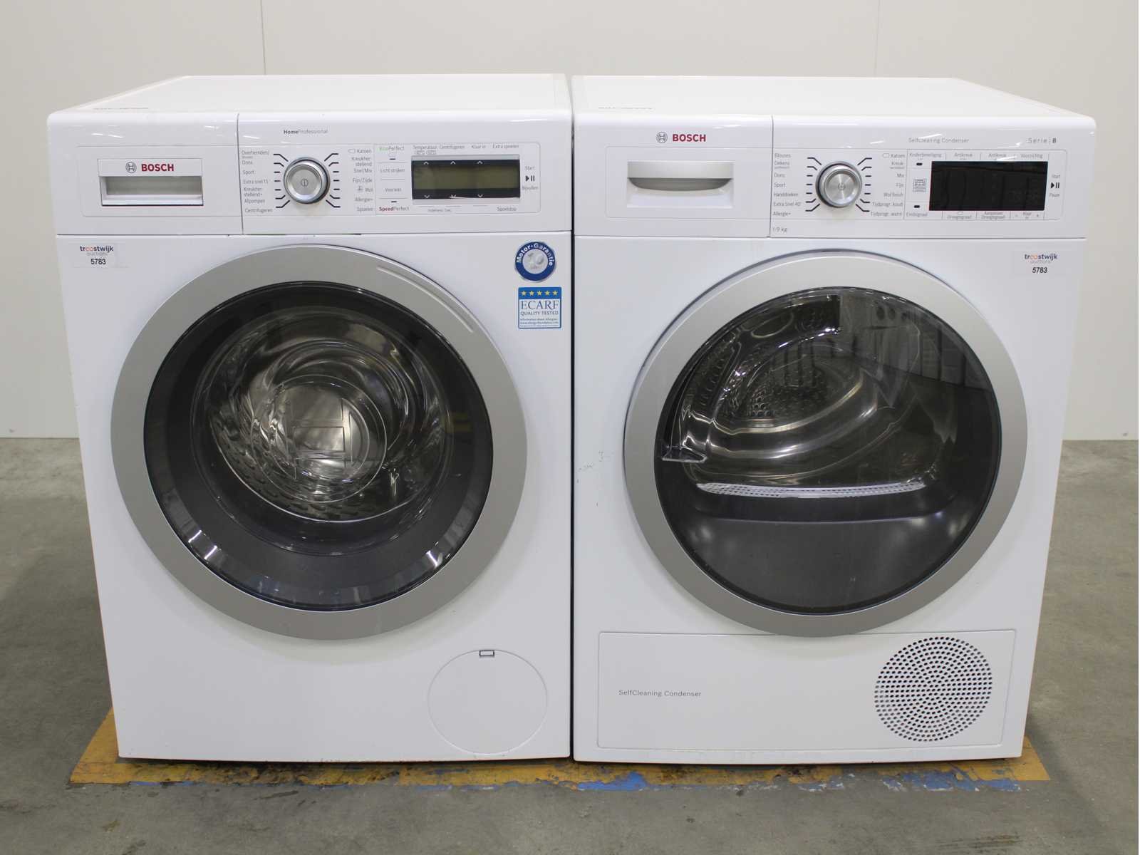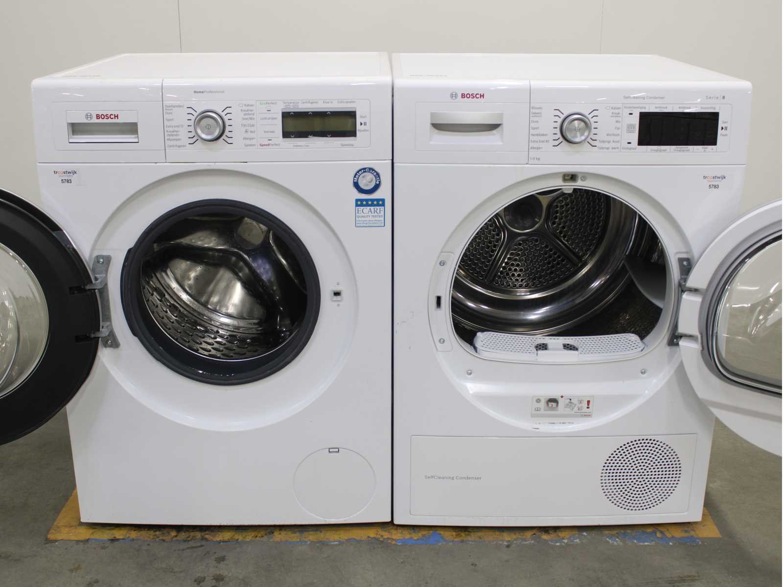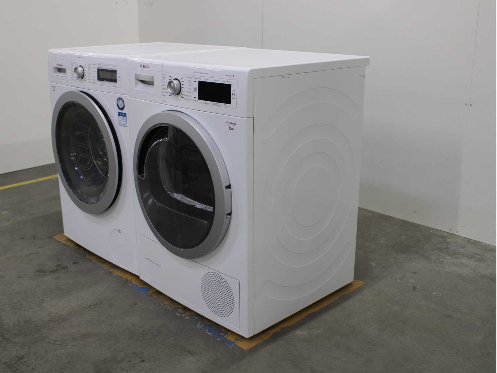 Deze wasmachine en wasdroger komen uit een partij jong gebruikt A-Merk witgoed. De machines zijn volledig getest, gereinigd en indien nodig gerepareerd. Houdt er rekening mee dat de machines lichte gebruikssporen kunnen hebben. Wasmachines en wasdrogers hebben vaak standaard afmetingen. Hoogte 85cm, Breedte 60cm en Diepte 60 tot 70cm, incl. uitstekende slangen e.d. aan de achterzijde. Als de machine vrij komt te staan is de afmeting minder relevant. Wil je de machine in een nis plaatsen of inbouwen? Controleer dan de exacte afmetingen op basis van het aangeboden merk en model/type. Within 7 days Merk: Bosch Serienummer: WAY32541NL en WTW87562NL/01