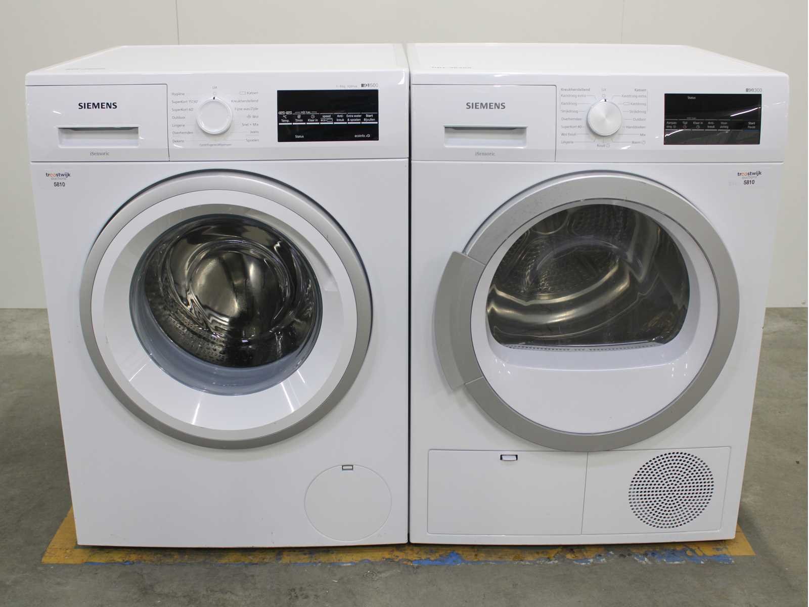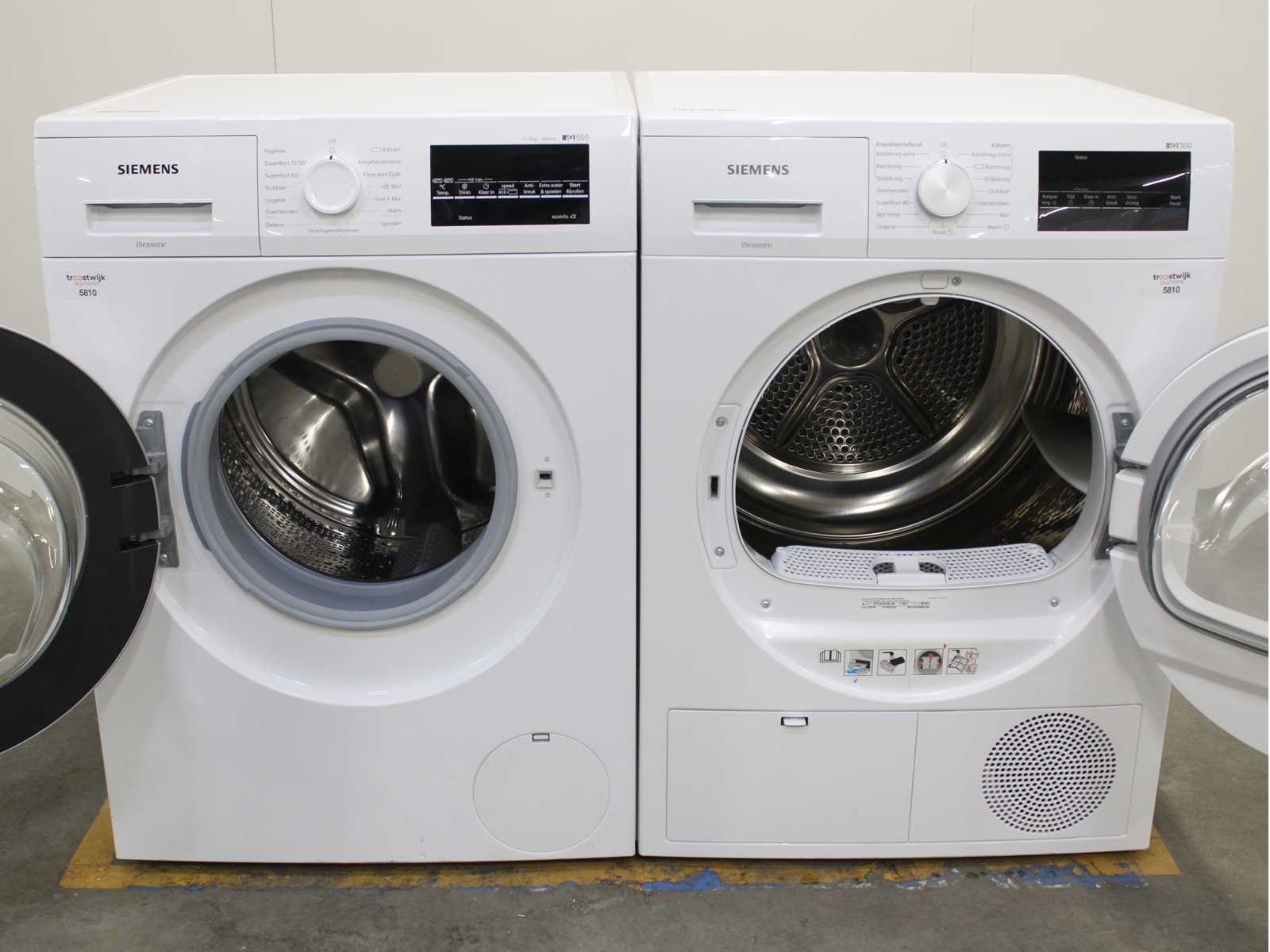 Deze wasmachine en wasdroger komen uit een partij jong gebruikt A-Merk witgoed. De machines zijn volledig getest, gereinigd en indien nodig gerepareerd. Houdt er rekening mee dat de machines lichte gebruikssporen kunnen hebben. Wasmachines en wasdrogers hebben vaak standaard afmetingen. Hoogte 85cm, Breedte 60cm en Diepte 60 tot 70cm, incl. uitstekende slangen e.d. aan de achterzijde. Als de machine vrij komt te staan is de afmeting minder relevant. Wil je de machine in een nis plaatsen of inbouwen? Controleer dan de exacte afmetingen op basis van het aangeboden merk en model/type. Within 7 days Merk: Siemens Serienummer: WM16T420NL en WT45H201NL/04