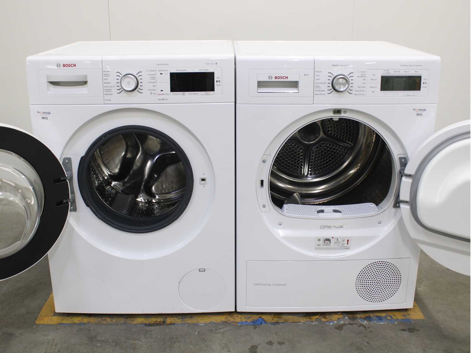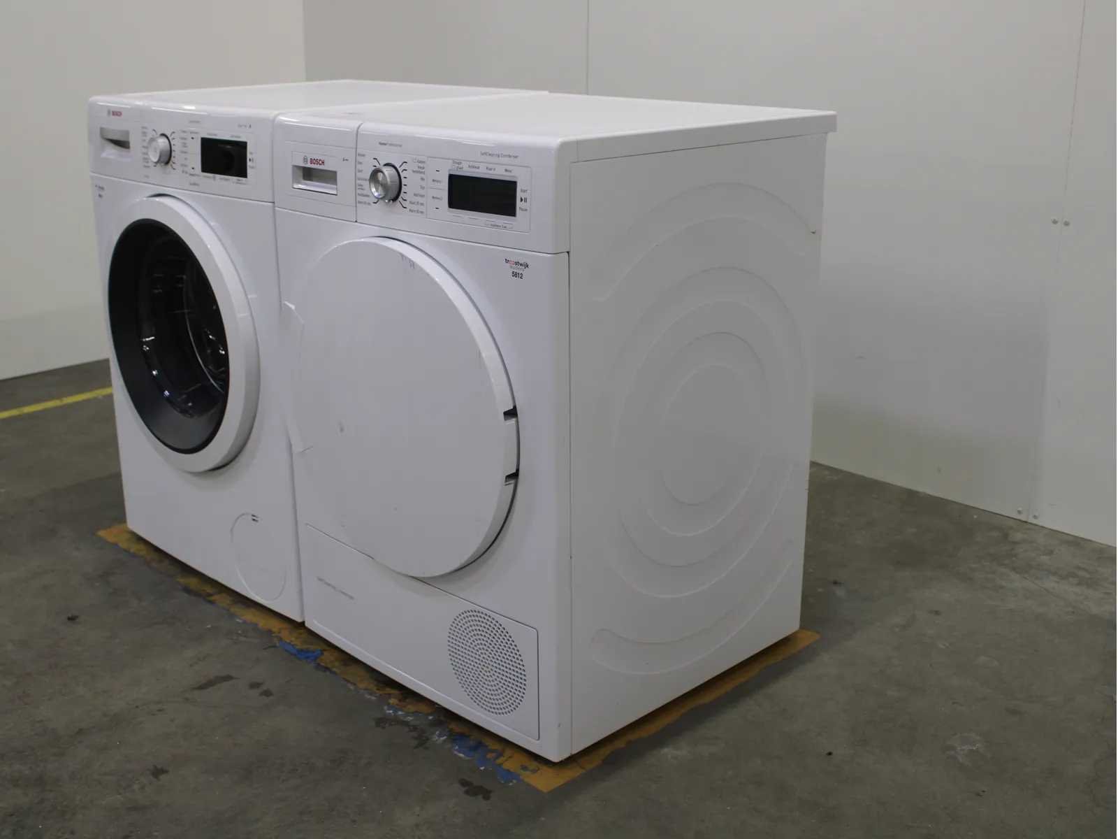 Deze wasmachine en wasdroger komen uit een partij jong gebruikt A-Merk witgoed. De machines zijn volledig getest, gereinigd en indien nodig gerepareerd. Houdt er rekening mee dat de machines lichte gebruikssporen kunnen hebben. Wasmachines en wasdrogers hebben vaak standaard afmetingen. Hoogte 85cm, Breedte 60cm en Diepte 60 tot 70cm, incl. uitstekende slangen e.d. aan de achterzijde. Als de machine vrij komt te staan is de afmeting minder relevant. Wil je de machine in een nis plaatsen of inbouwen? Controleer dan de exacte afmetingen op basis van het aangeboden merk en model/type. Within 7 days Merk: Bosch Serienummer: WAW32461NL/11 en WTY87700NL