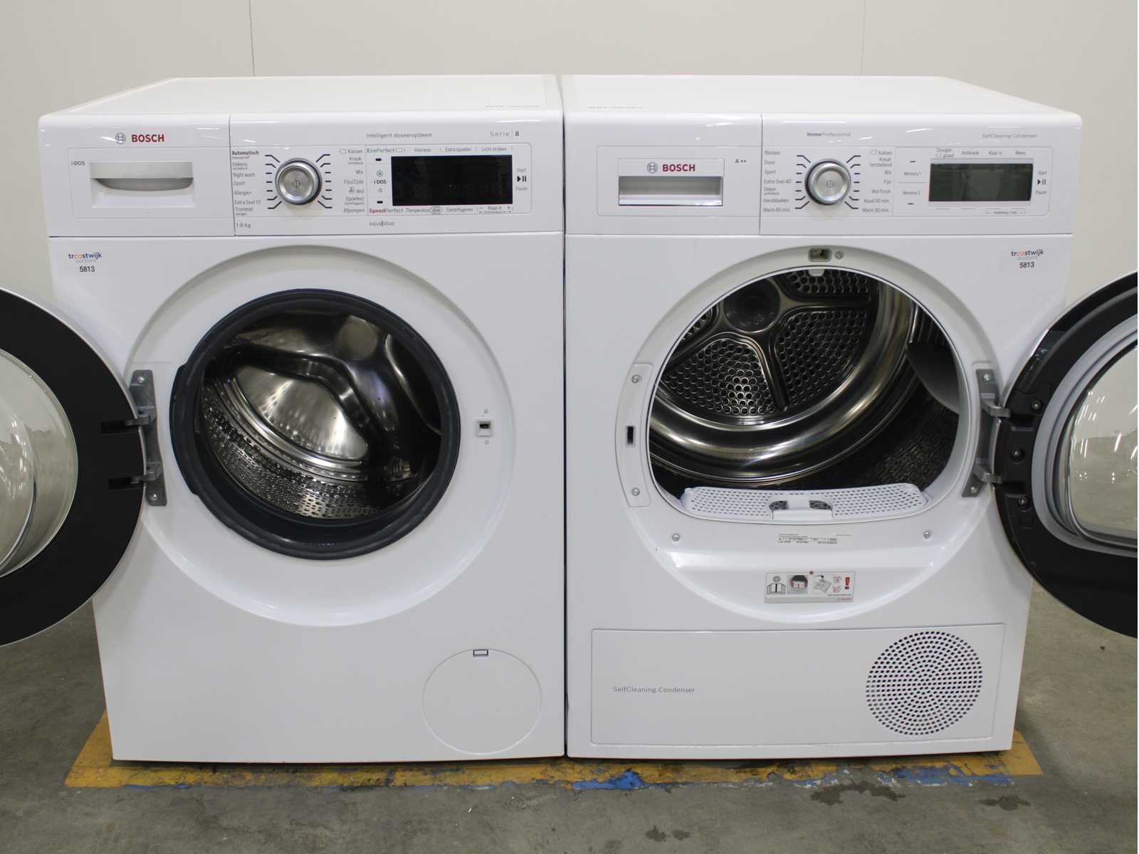 Deze wasmachine en wasdroger komen uit een partij jong gebruikt A-Merk witgoed. De machines zijn volledig getest, gereinigd en indien nodig gerepareerd. Houdt er rekening mee dat de machines lichte gebruikssporen kunnen hebben. Wasmachines en wasdrogers hebben vaak standaard afmetingen. Hoogte 85cm, Breedte 60cm en Diepte 60 tot 70cm, incl. uitstekende slangen e.d. aan de achterzijde. Als de machine vrij komt te staan is de afmeting minder relevant. Wil je de machine in een nis plaatsen of inbouwen? Controleer dan de exacte afmetingen op basis van het aangeboden merk en model/type. Within 7 days Merk: Bosch Serienummer: WAW32642NL en WTY87700NL/17