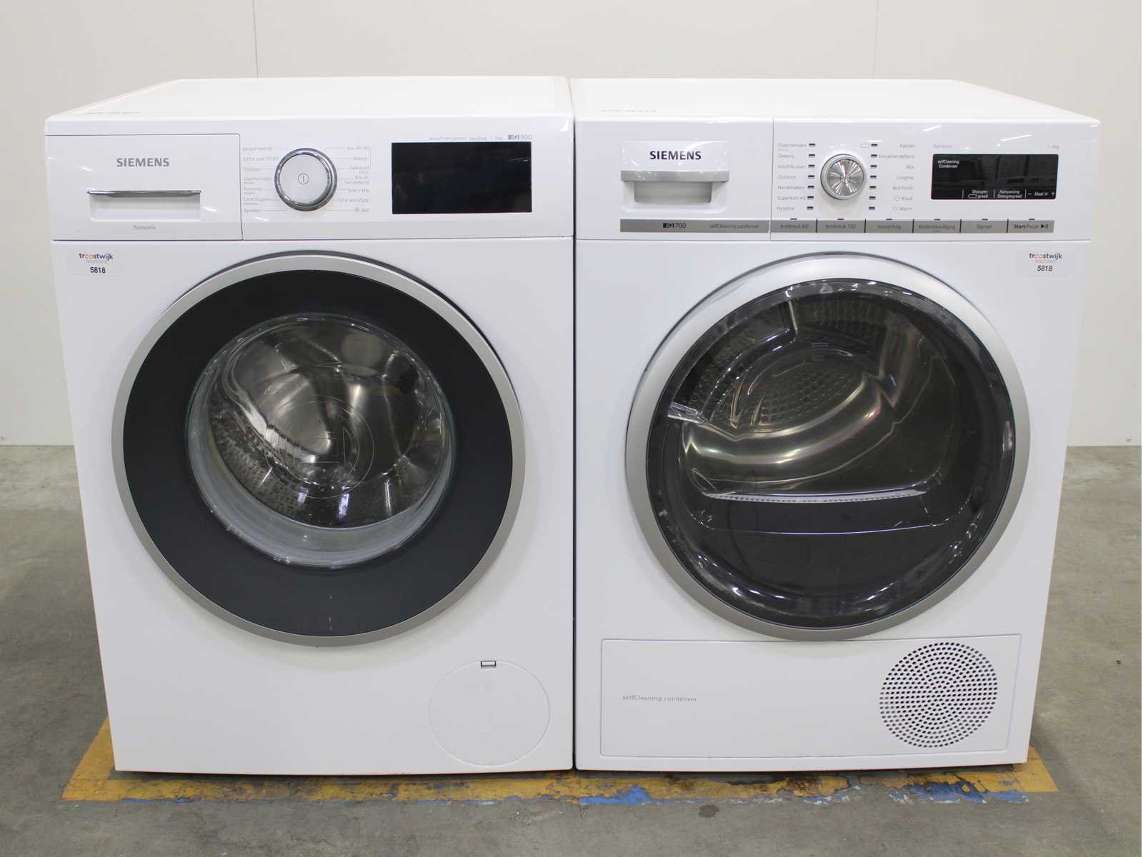 Deze wasmachine en wasdroger komen uit een partij jong gebruikt A-Merk witgoed. De machines zijn volledig getest, gereinigd en indien nodig gerepareerd. Houdt er rekening mee dat de machines lichte gebruikssporen kunnen hebben. Wasmachines en wasdrogers hebben vaak standaard afmetingen. Hoogte 85cm, Breedte 60cm en Diepte 60 tot 70cm, incl. uitstekende slangen e.d. aan de achterzijde. Als de machine vrij komt te staan is de afmeting minder relevant. Wil je de machine in een nis plaatsen of inbouwen? Controleer dan de exacte afmetingen op basis van het aangeboden merk en model/type. Within 7 days Merk: Siemens Serienummer: WM14UQ75NL en WT47W562NL