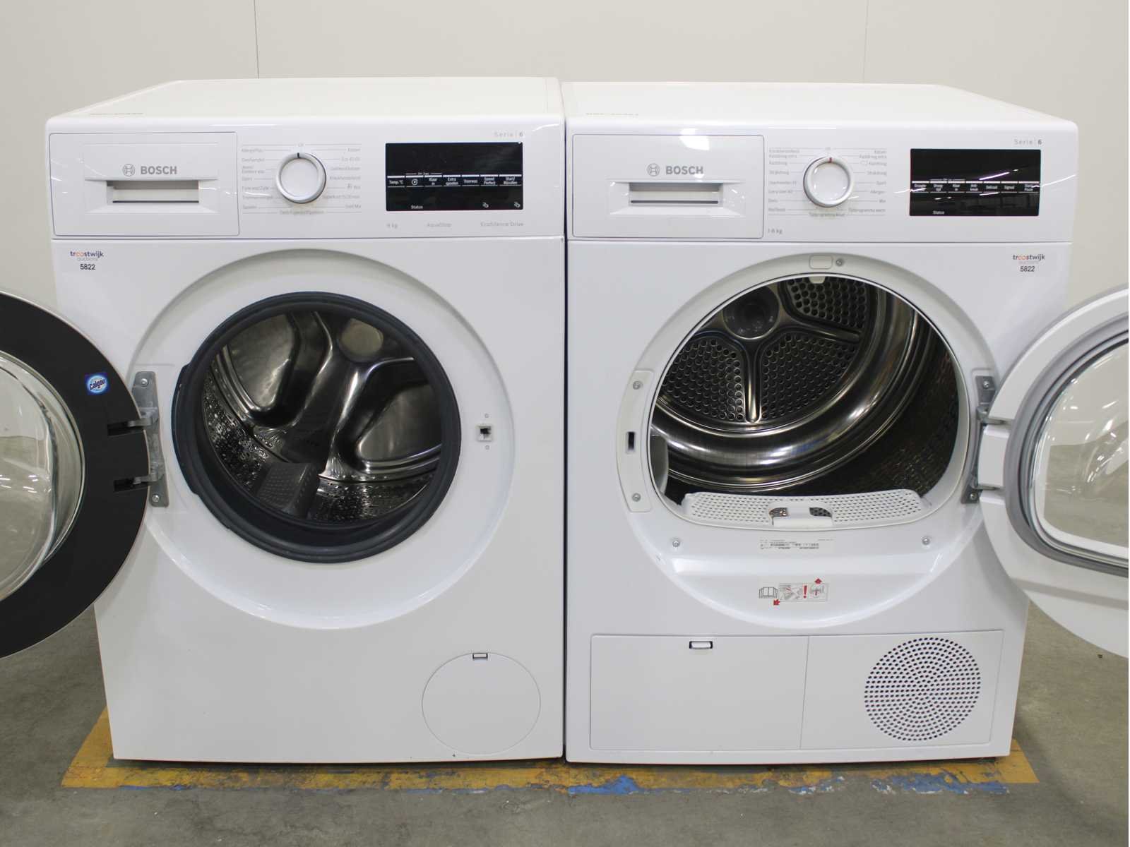 Deze wasmachine en wasdroger komen uit een partij jong gebruikt A-Merk witgoed. De machines zijn volledig getest, gereinigd en indien nodig gerepareerd. Houdt er rekening mee dat de machines lichte gebruikssporen kunnen hebben. Wasmachines en wasdrogers hebben vaak standaard afmetingen. Hoogte 85cm, Breedte 60cm en Diepte 60 tot 70cm, incl. uitstekende slangen e.d. aan de achterzijde. Als de machine vrij komt te staan is de afmeting minder relevant. Wil je de machine in een nis plaatsen of inbouwen? Controleer dan de exacte afmetingen op basis van het aangeboden merk en model/type. Within 7 days Merk: Bosch Serienummer: WAU28T75NL en WTG86400NL