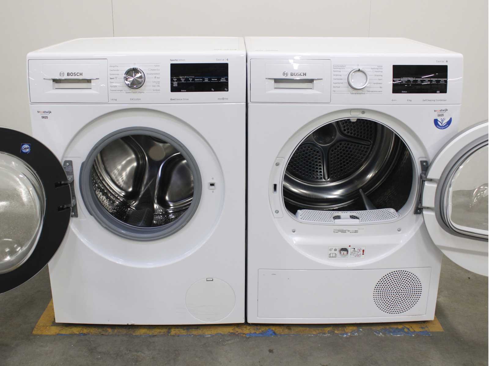 Deze wasmachine en wasdroger komen uit een partij jong gebruikt A-Merk witgoed. De machines zijn volledig getest, gereinigd en indien nodig gerepareerd. Houdt er rekening mee dat de machines lichte gebruikssporen kunnen hebben. Wasmachines en wasdrogers hebben vaak standaard afmetingen. Hoogte 85cm, Breedte 60cm en Diepte 60 tot 70cm, incl. uitstekende slangen e.d. aan de achterzijde. Als de machine vrij komt te staan is de afmeting minder relevant. Wil je de machine in een nis plaatsen of inbouwen? Controleer dan de exacte afmetingen op basis van het aangeboden merk en model/type. Within 7 days Merk: Bosch Serienummer: WAT28491NL en WTW8446ENL