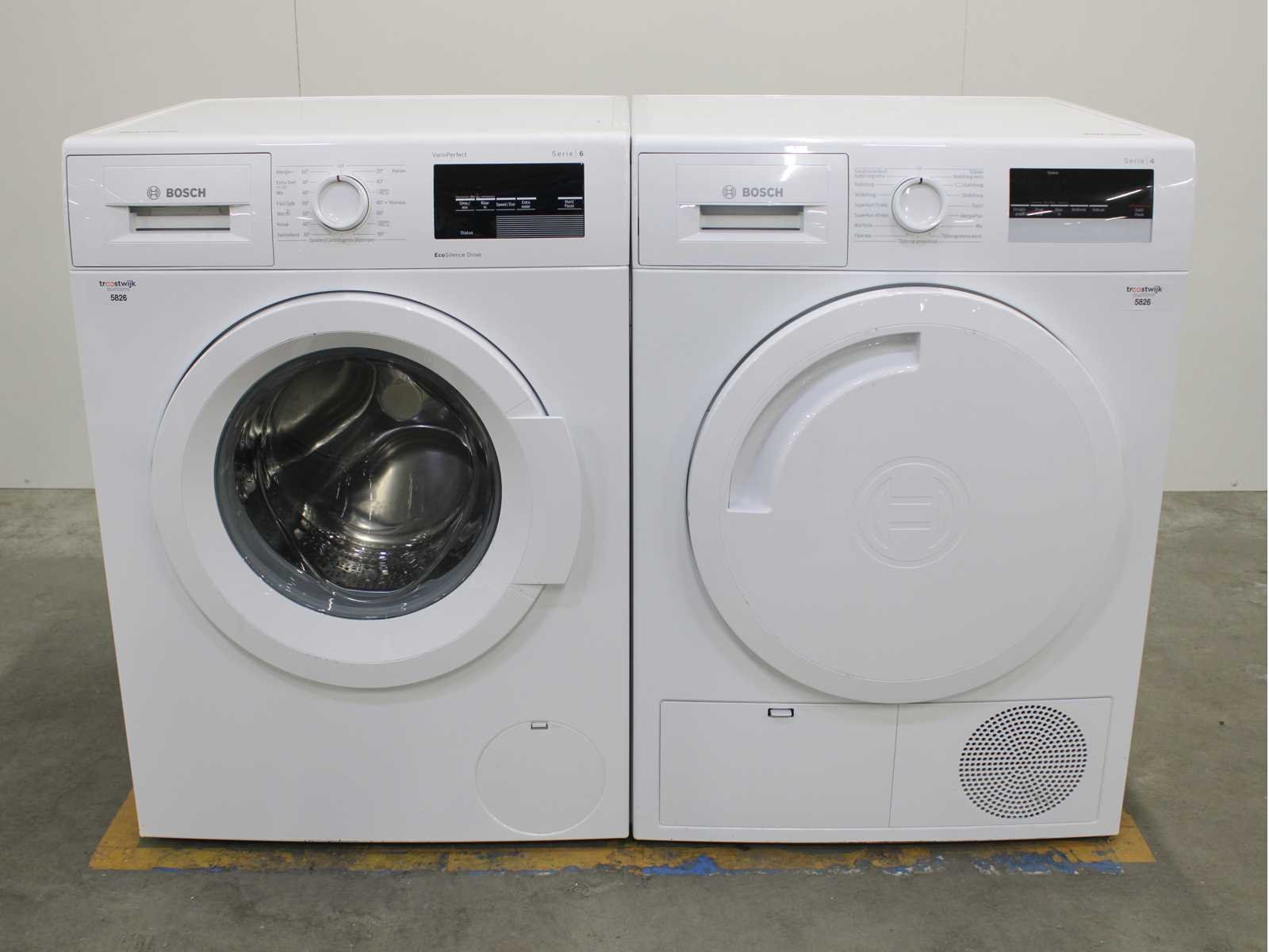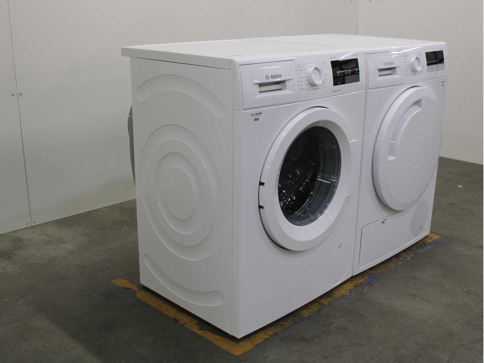 Deze wasmachine en wasdroger komen uit een partij jong gebruikt A-Merk witgoed. De machines zijn volledig getest, gereinigd en indien nodig gerepareerd. Houdt er rekening mee dat de machines lichte gebruikssporen kunnen hebben. Wasmachines en wasdrogers hebben vaak standaard afmetingen. Hoogte 85cm, Breedte 60cm en Diepte 60 tot 70cm, incl. uitstekende slangen e.d. aan de achterzijde. Als de machine vrij komt te staan is de afmeting minder relevant. Wil je de machine in een nis plaatsen of inbouwen? Controleer dan de exacte afmetingen op basis van het aangeboden merk en model/type. Within 7 days Merk: Bosch Serienummer: WAT28321NL en WTN83202NL