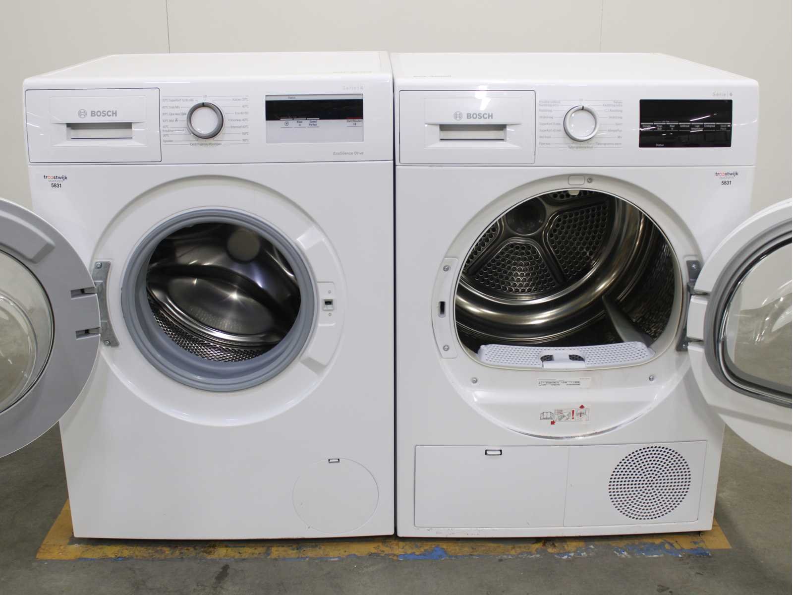 Deze wasmachine en wasdroger komen uit een partij jong gebruikt A-Merk witgoed. De machines zijn volledig getest, gereinigd en indien nodig gerepareerd. Houdt er rekening mee dat de machines lichte gebruikssporen kunnen hebben. Wasmachines en wasdrogers hebben vaak standaard afmetingen. Hoogte 85cm, Breedte 60cm en Diepte 60 tot 70cm, incl. uitstekende slangen e.d. aan de achterzijde. Als de machine vrij komt te staan is de afmeting minder relevant. Wil je de machine in een nis plaatsen of inbouwen? Controleer dan de exacte afmetingen op basis van het aangeboden merk en model/type. Within 7 days Merk: Bosch Serienummer: WAN28005NL/38 en WTG86472NL
