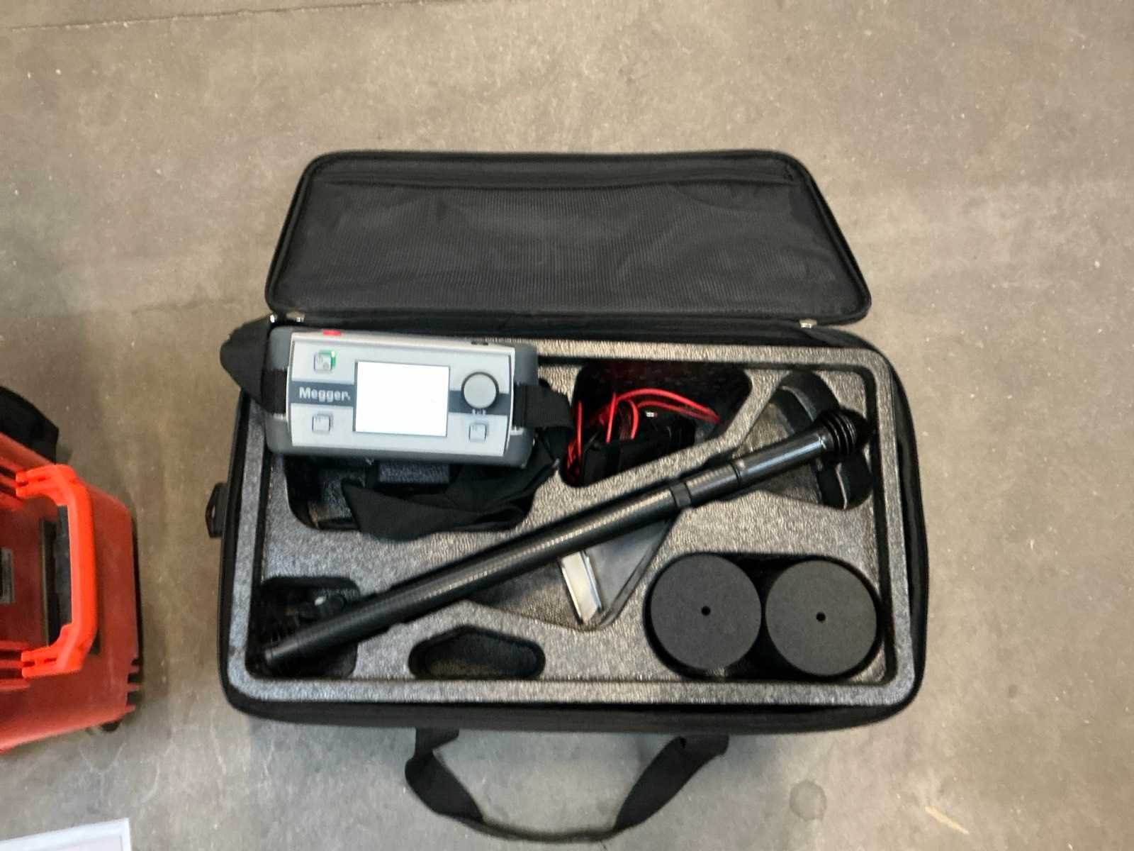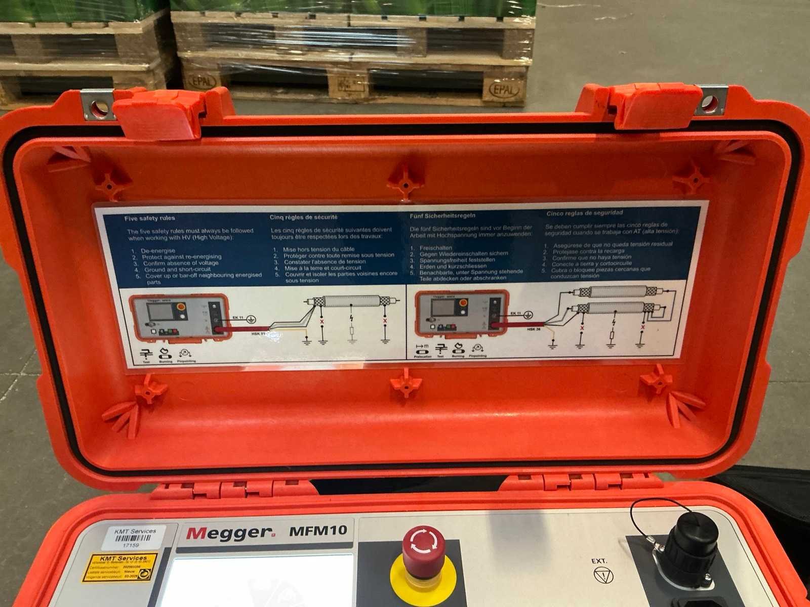 Voorzien van Megger ESG NT2-VS digitale kabelfout localisator. Compleet meetsysteem. Toepasbaar in ruige omstandigheden PELI CASE. Spat waterdichte behuizing. 1 kops bediening. Automatische testprocedure of manueel. Batterij of via NET gevoed. Voorlocalisatie dmv meetbrug. Mantelbeoproeven tot 10 KV. Nalocalisatie. USB protocollering. Transportunit. 1 HV kabel voor alle metingen. Merk: Megger Type: MFM10 Serienummer: 1015503