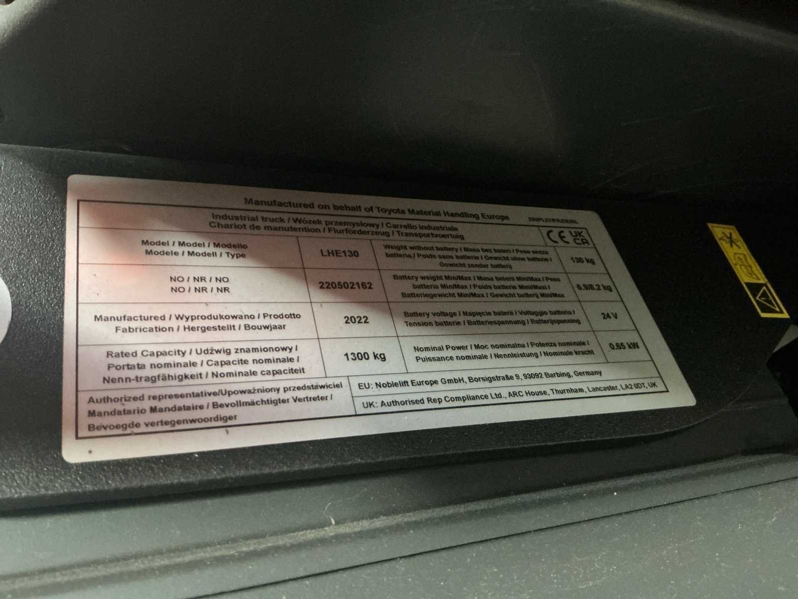 2022 toyota lhe130 elektrische palletwagen