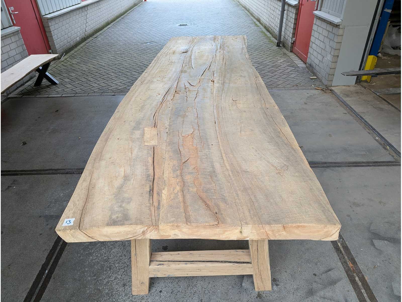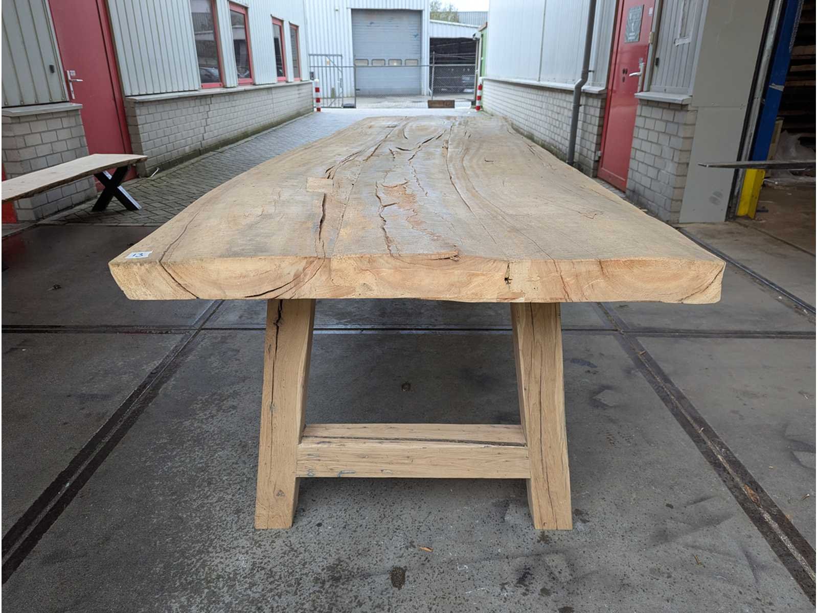 Blad dikte 8cm Houten A onderstel Lengte: 340cm Breedte: 100cm Hoogte: 80cm