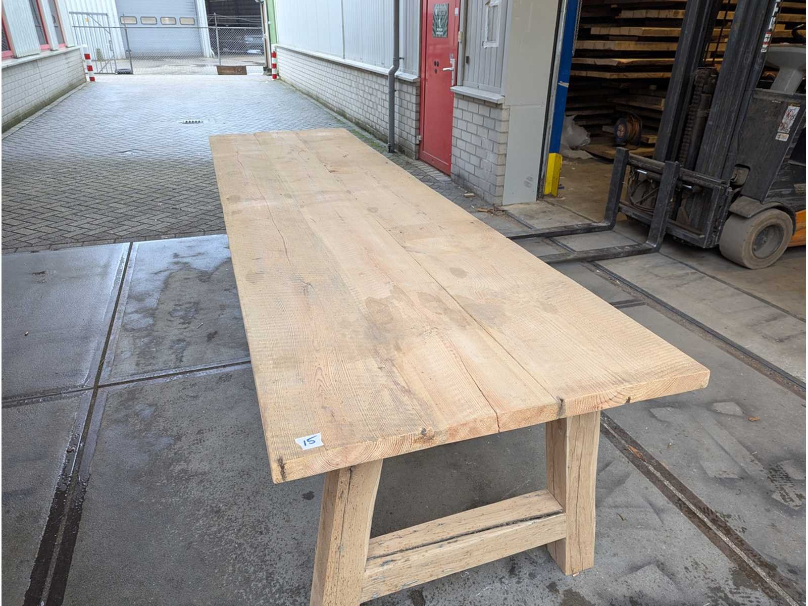 Blad dikte 4cm Houten A onderstel Lengte: 370cm Breedte: 115cm Hoogte: 78cm