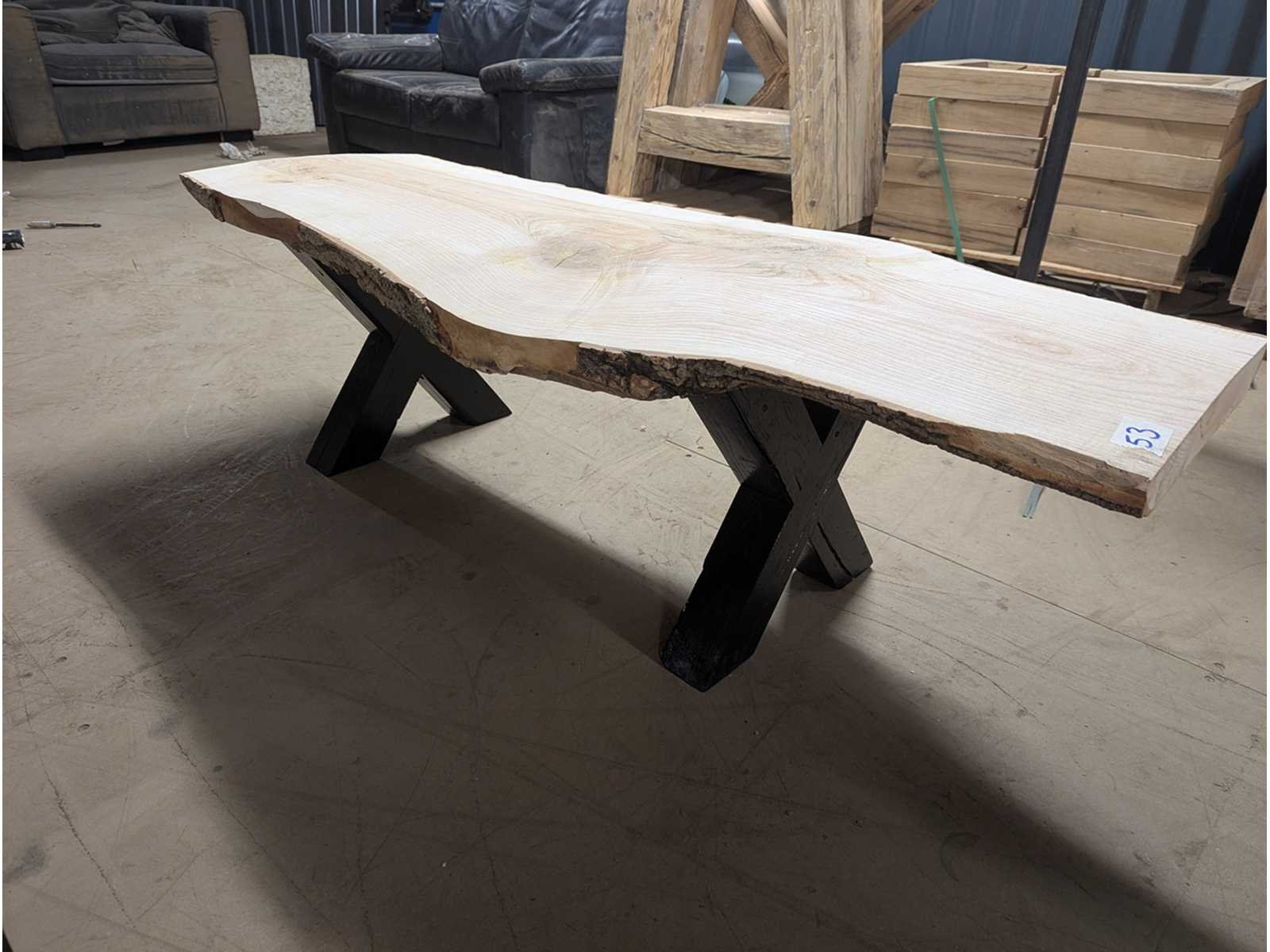Blad dikte 5cm Zwart x onderstel Lengte: 150cm Breedte: 50cm Hoogte: 45cm Materiaal: hout