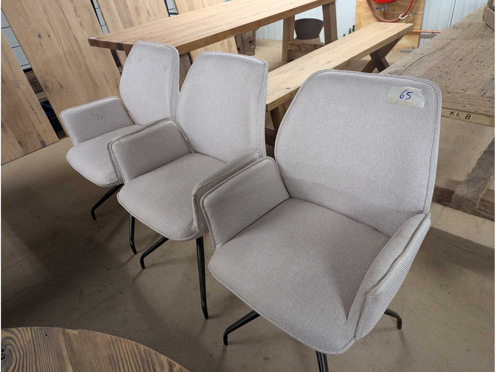 Set van 3 nieuwe stoelen (terug draaiend) Kleur: Wit roze Zithoogte: 45cm Materiaal: Stof