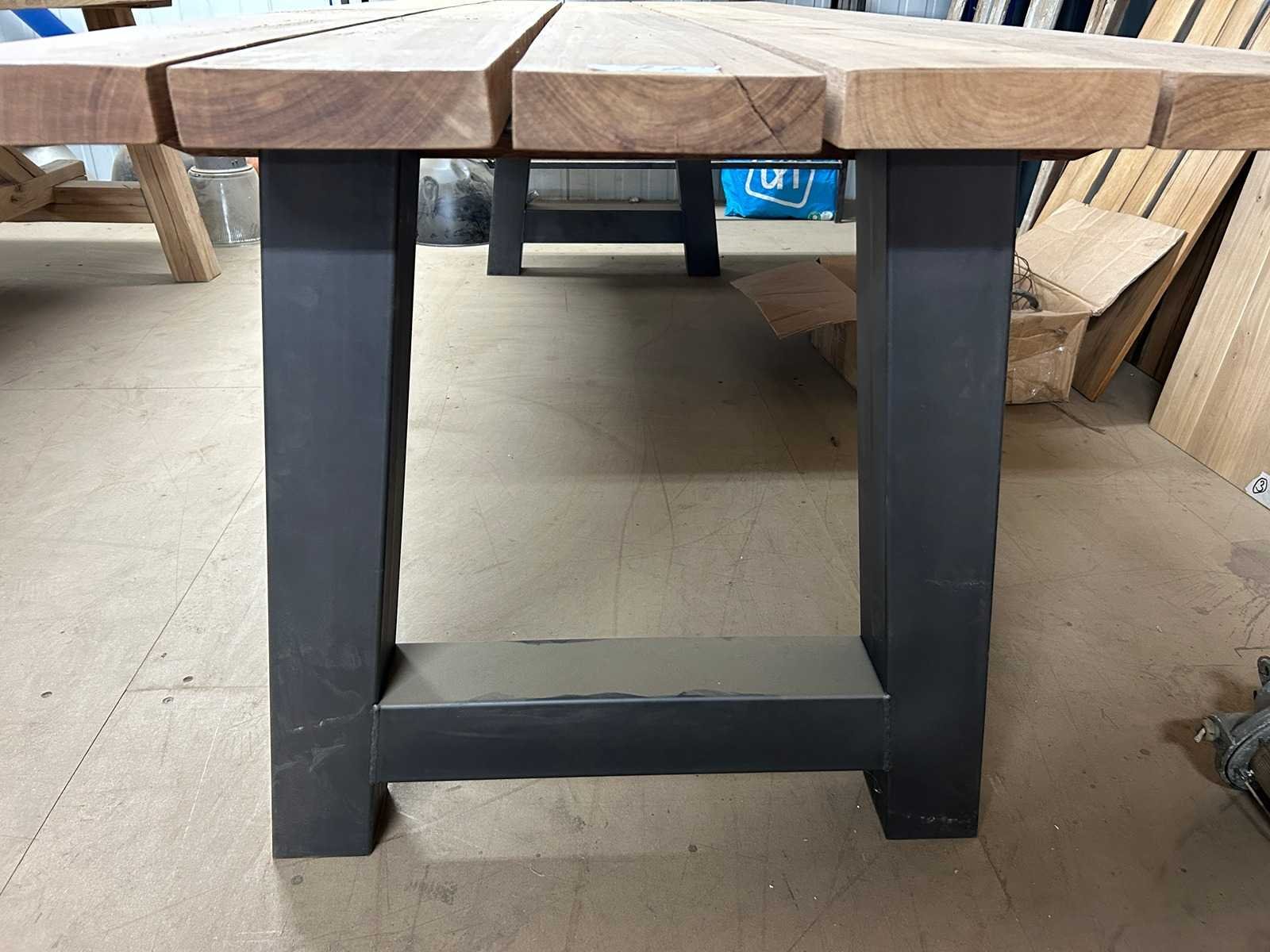 Blad dikte 4,5cm Stalen onderstel Lengte: 260cm Breedte: 95cm Hoogte: 78cm Materiaal: Teak