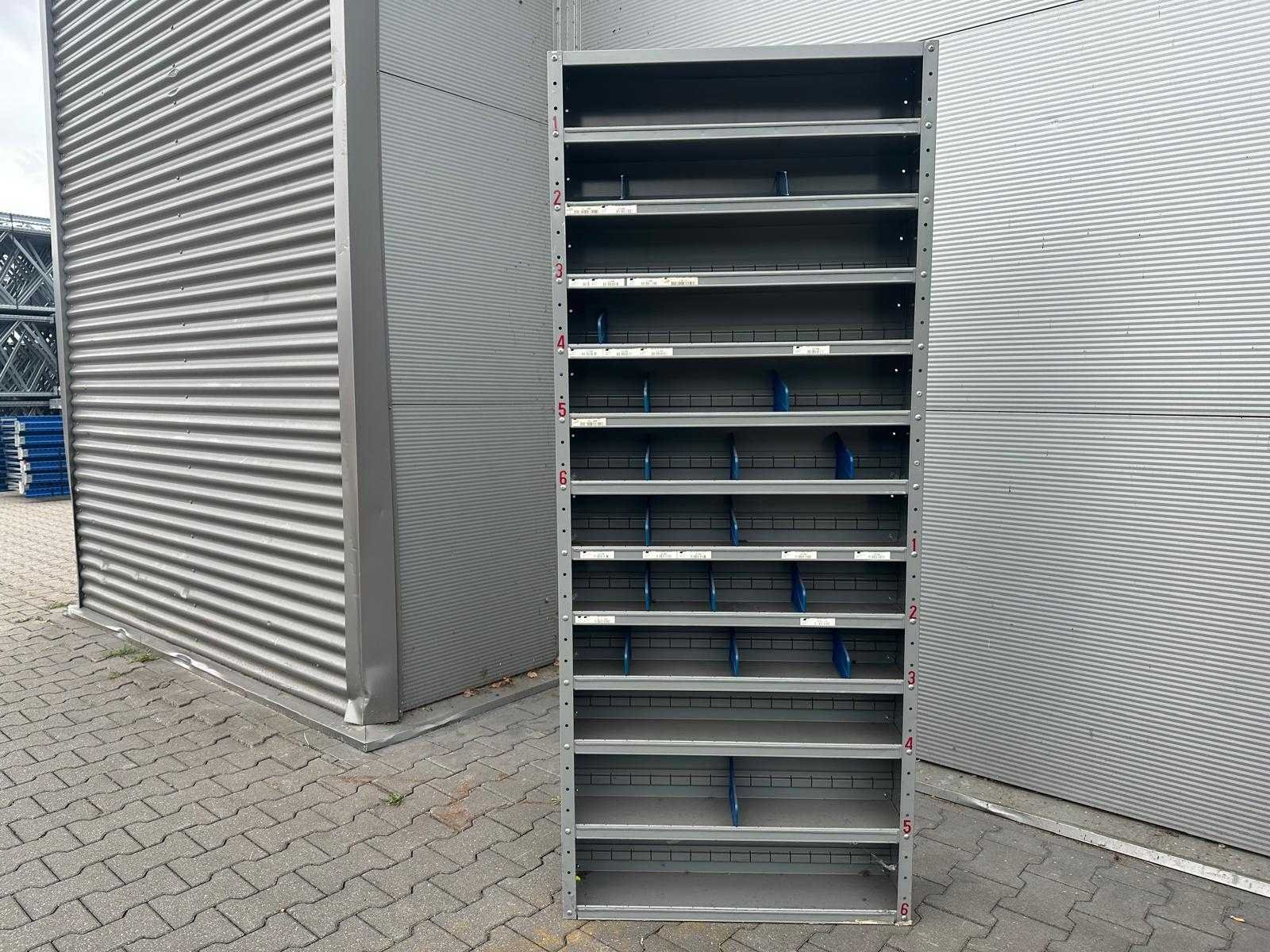 Met schotten; 12 lagen; Aantal laden: 0 Kleur: grijs/blauw Lengte: 80 Breedte: 20cm Hoogte: 193cm