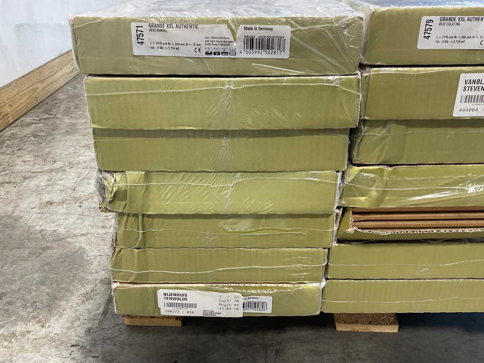 Mixpallet met diverse soorten laminaat – ongeveer 21 pakken, goed voor circa 50m². Bekijk de foto’s voor specificaties en details.