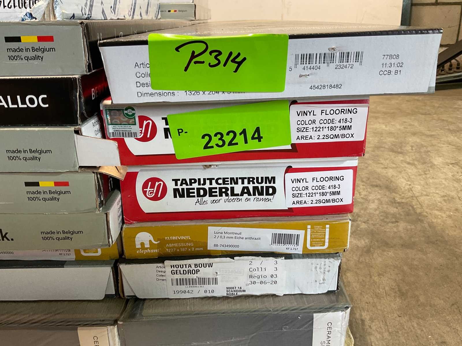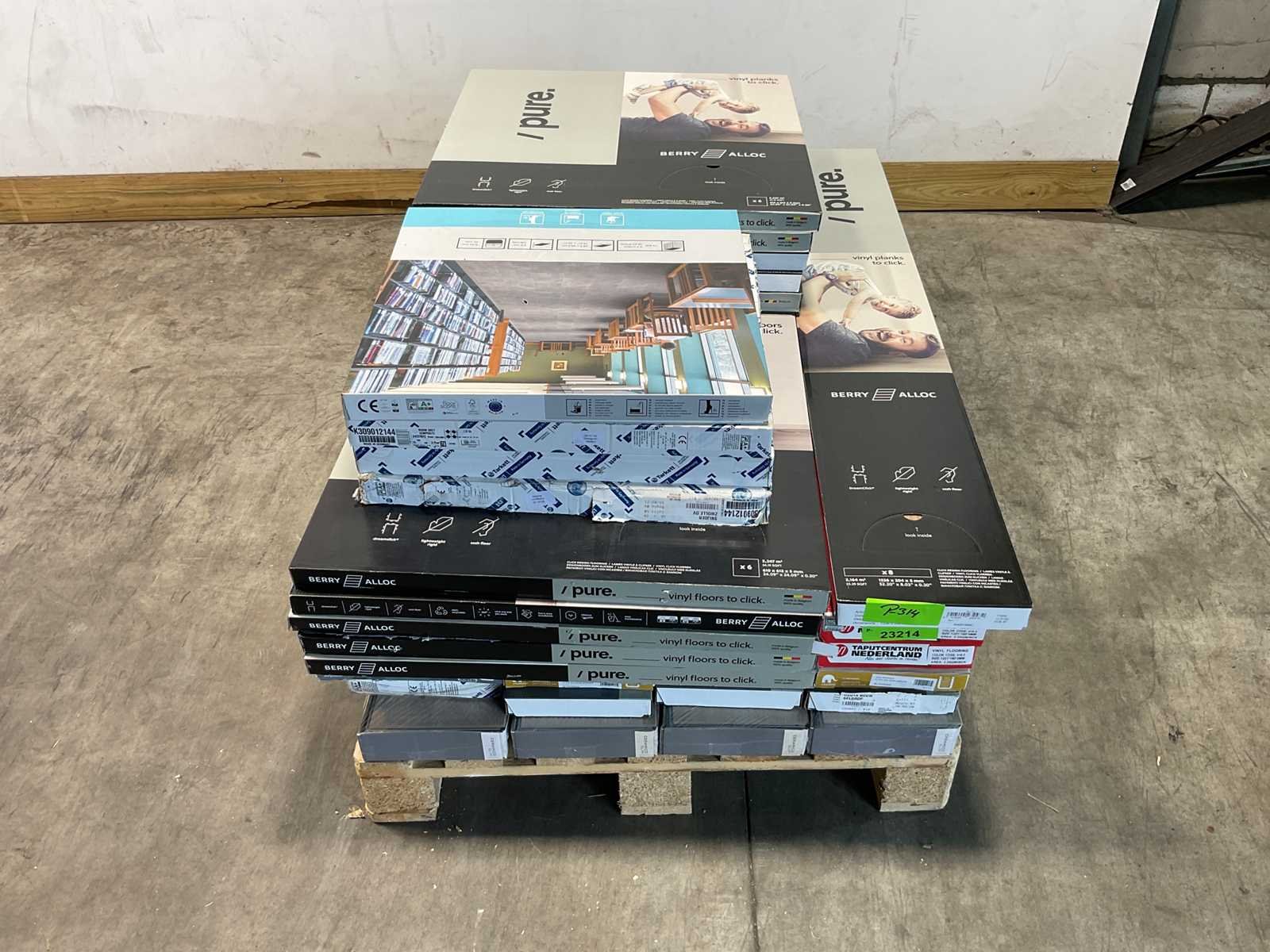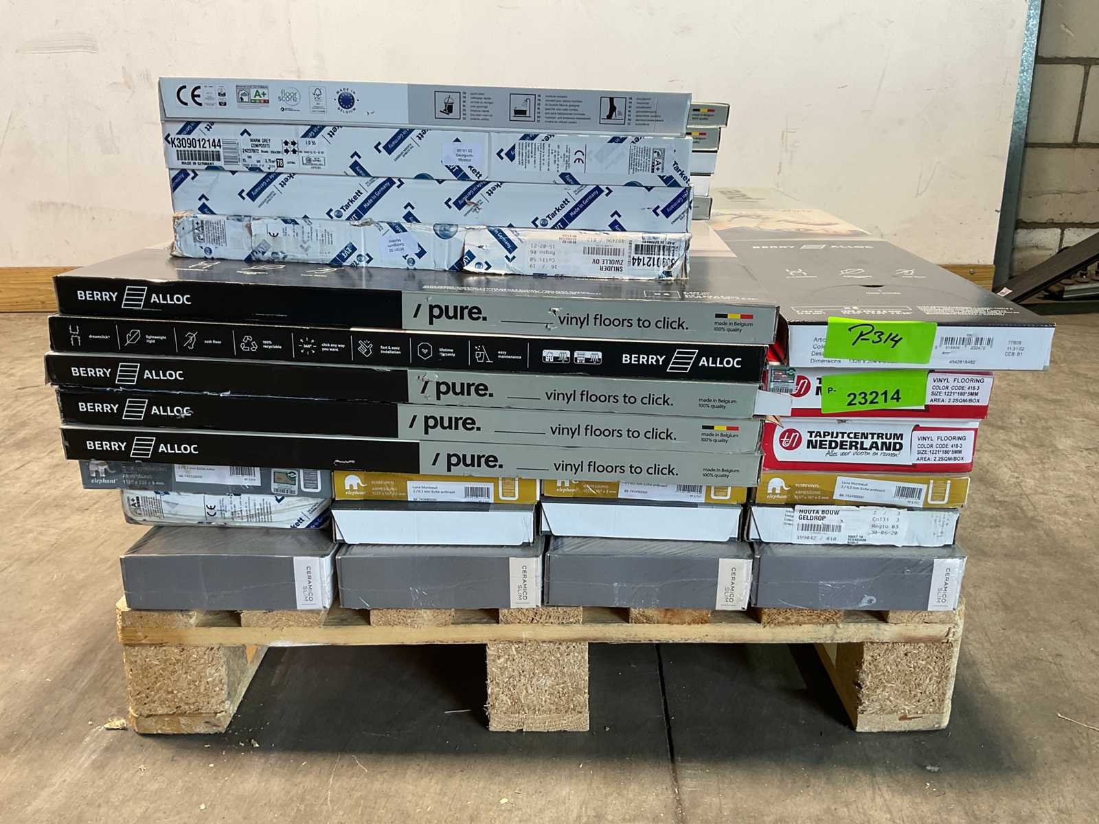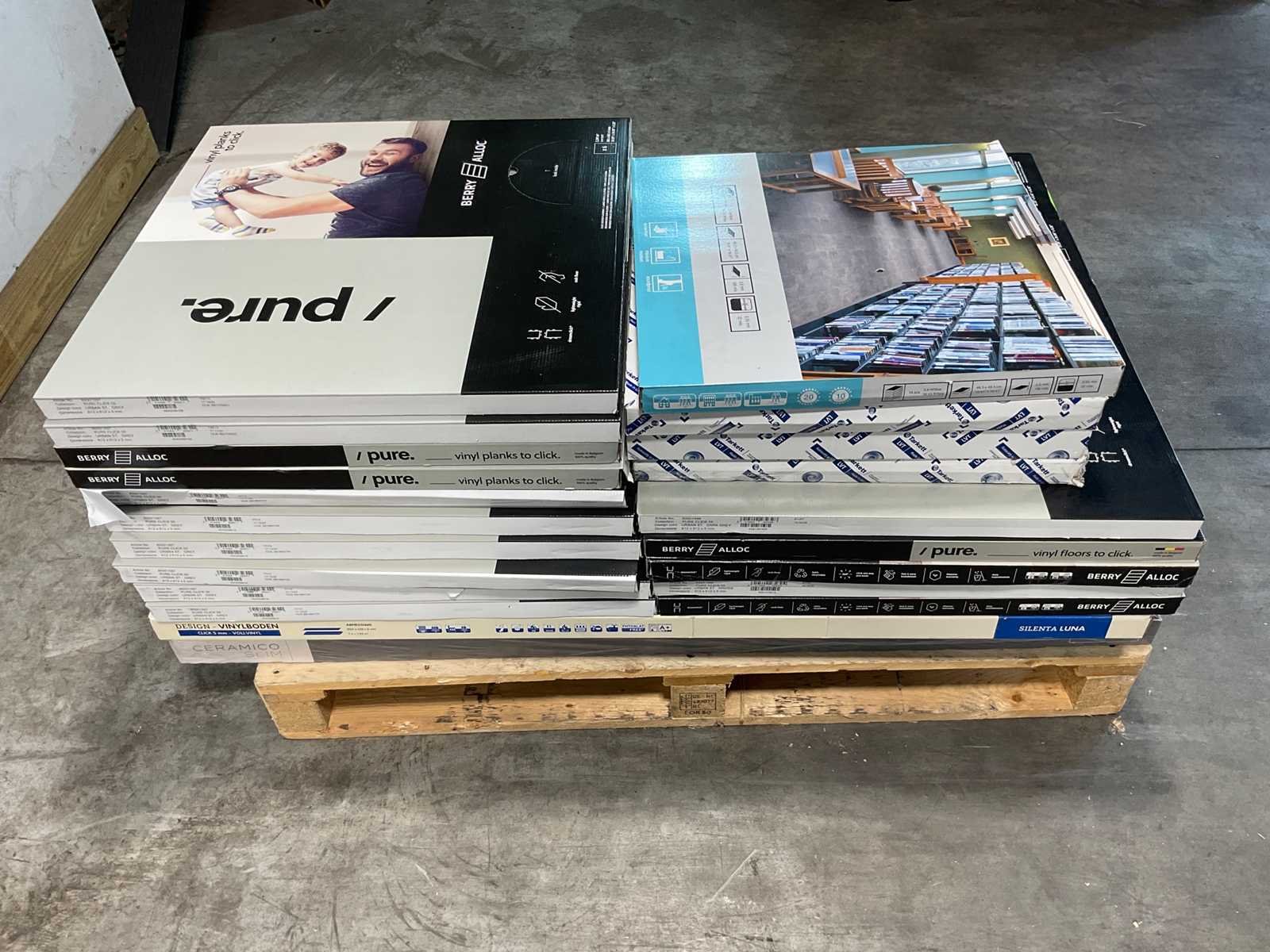 Mixpallet met diverse soorten laminaat – ongeveer 34 pakken, goed voor circa 75m². Bekijk de foto’s voor specificaties en details.