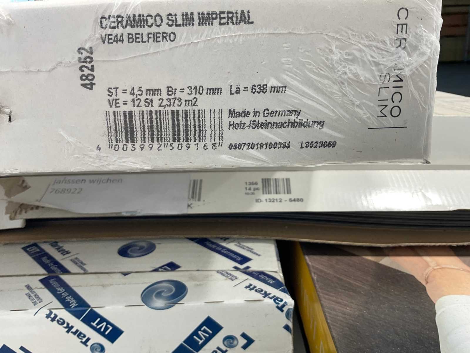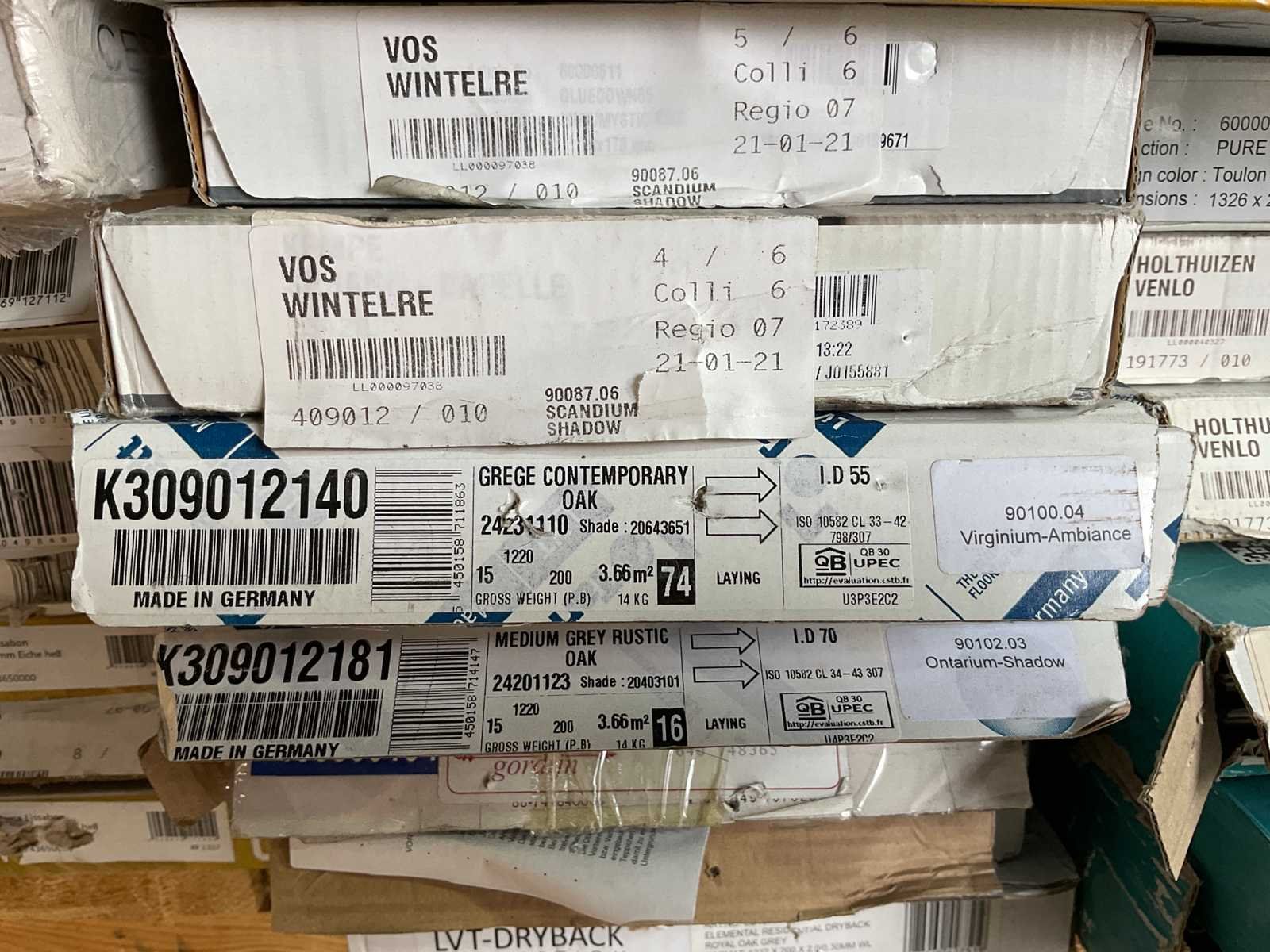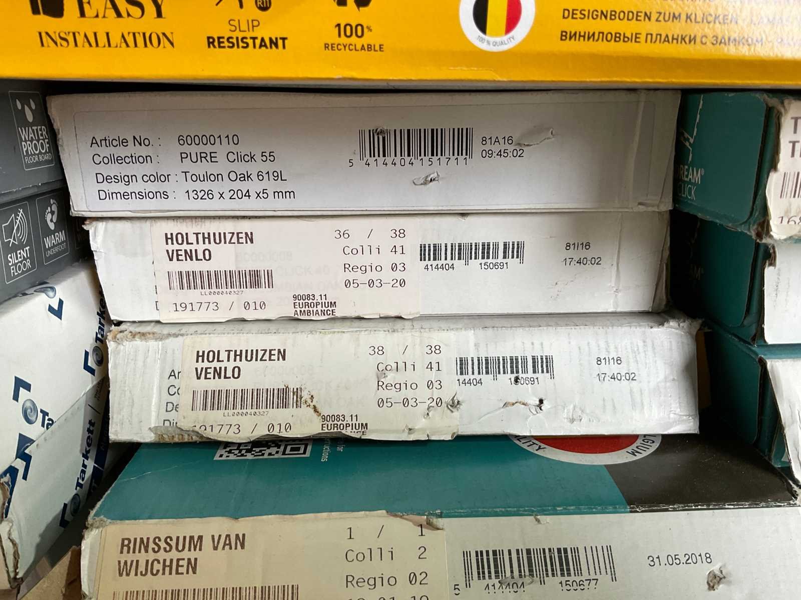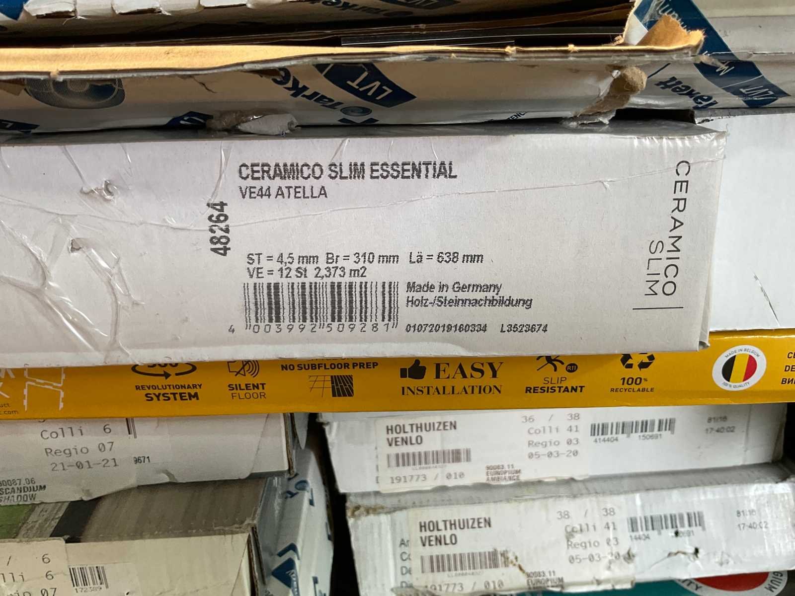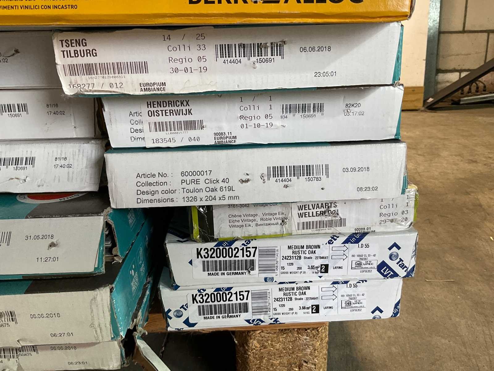 Mixpallet met diverse soorten laminaat – ongeveer 44 pakken, goed voor circa 96m². Bekijk de foto’s voor specificaties en details.