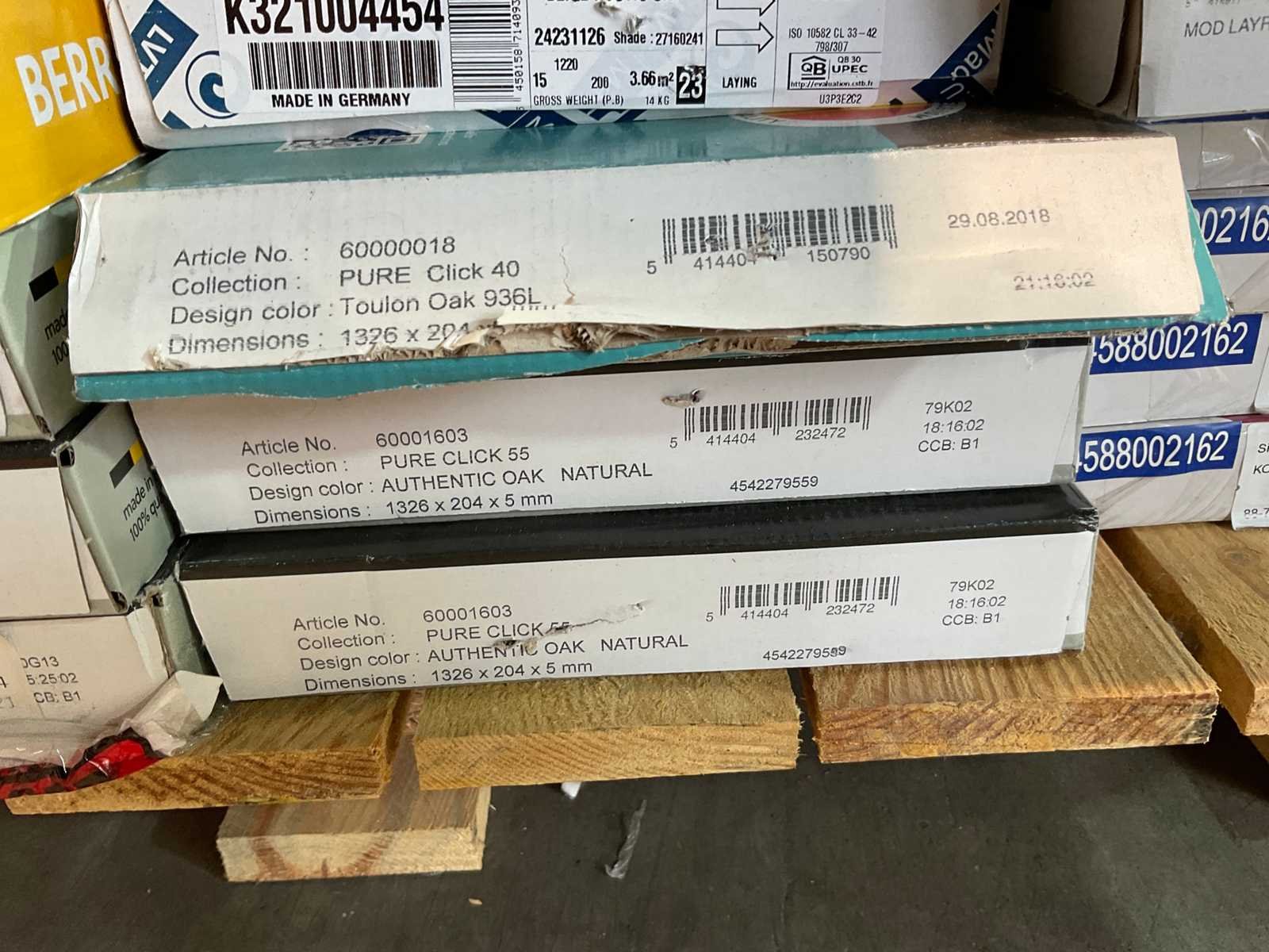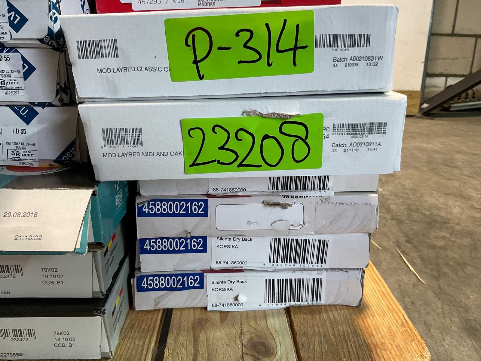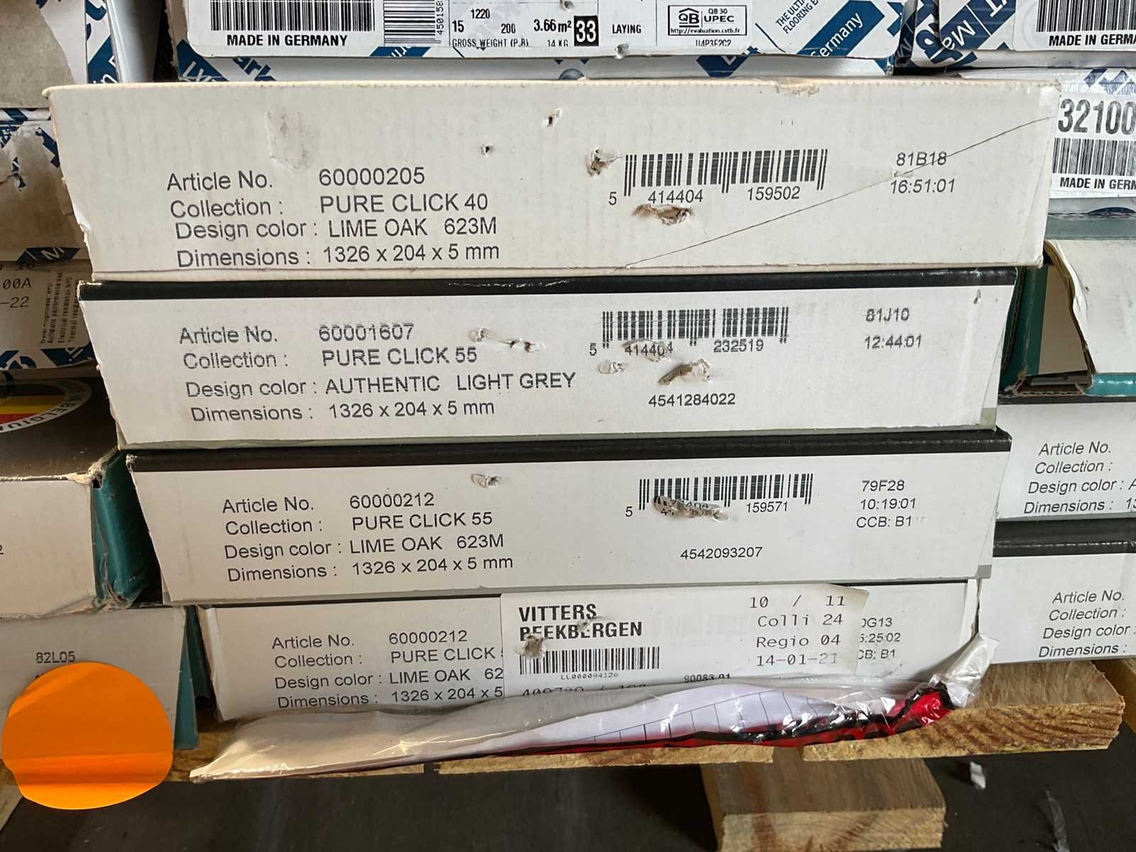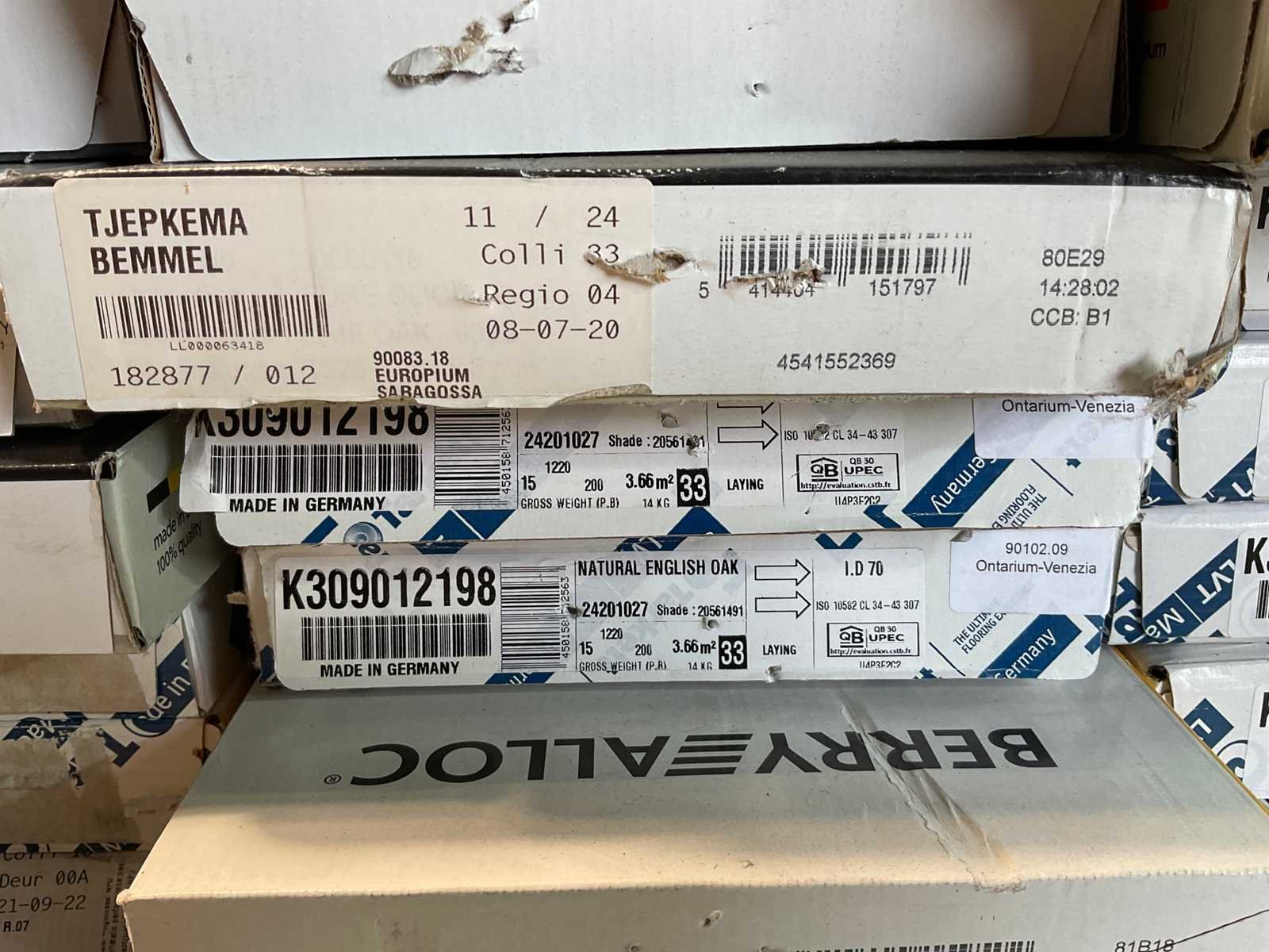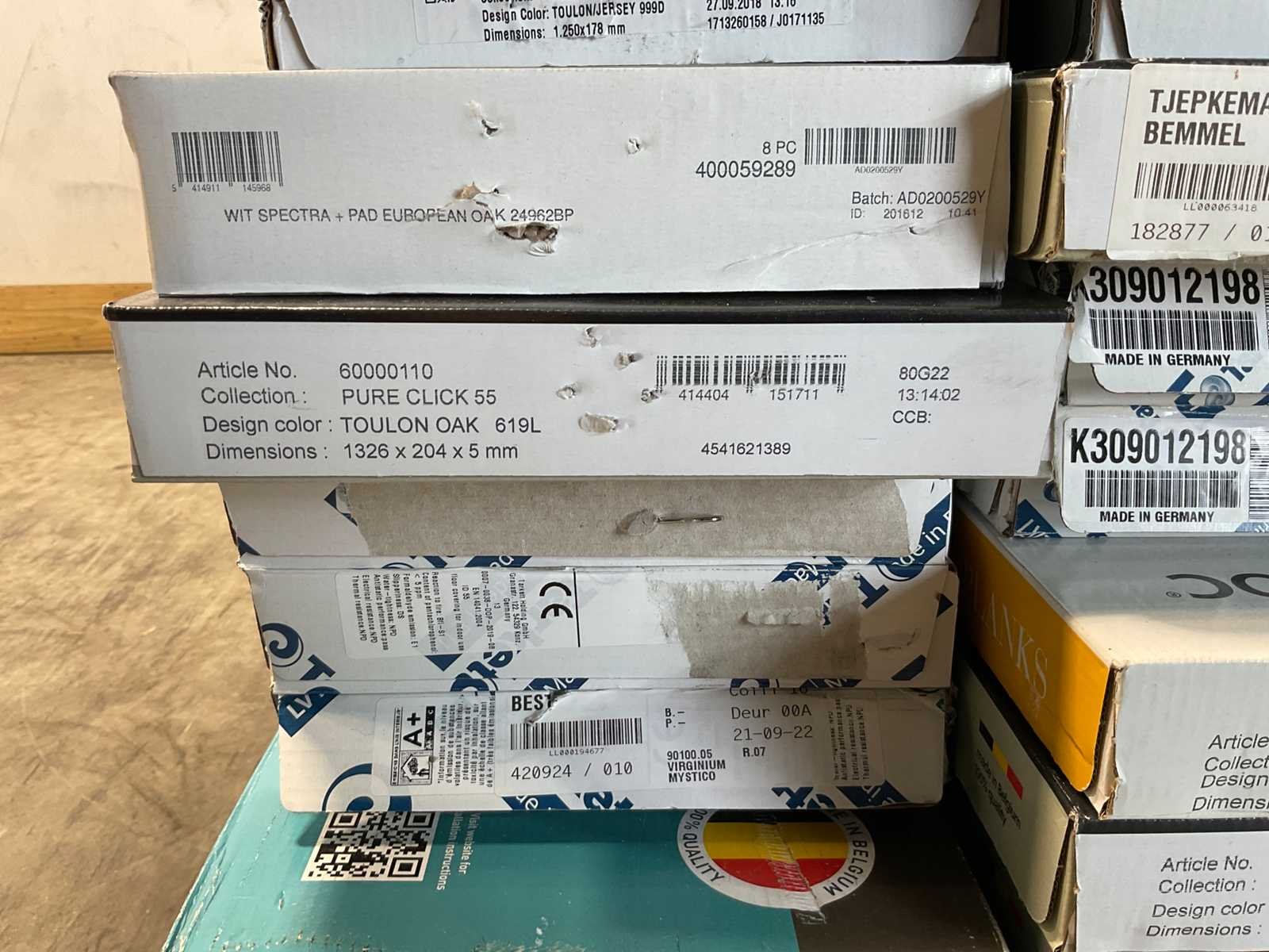 Mixpallet met diverse soorten laminaat – ongeveer 44 pakken, goed voor circa 96m². Bekijk de foto’s voor specificaties en details.