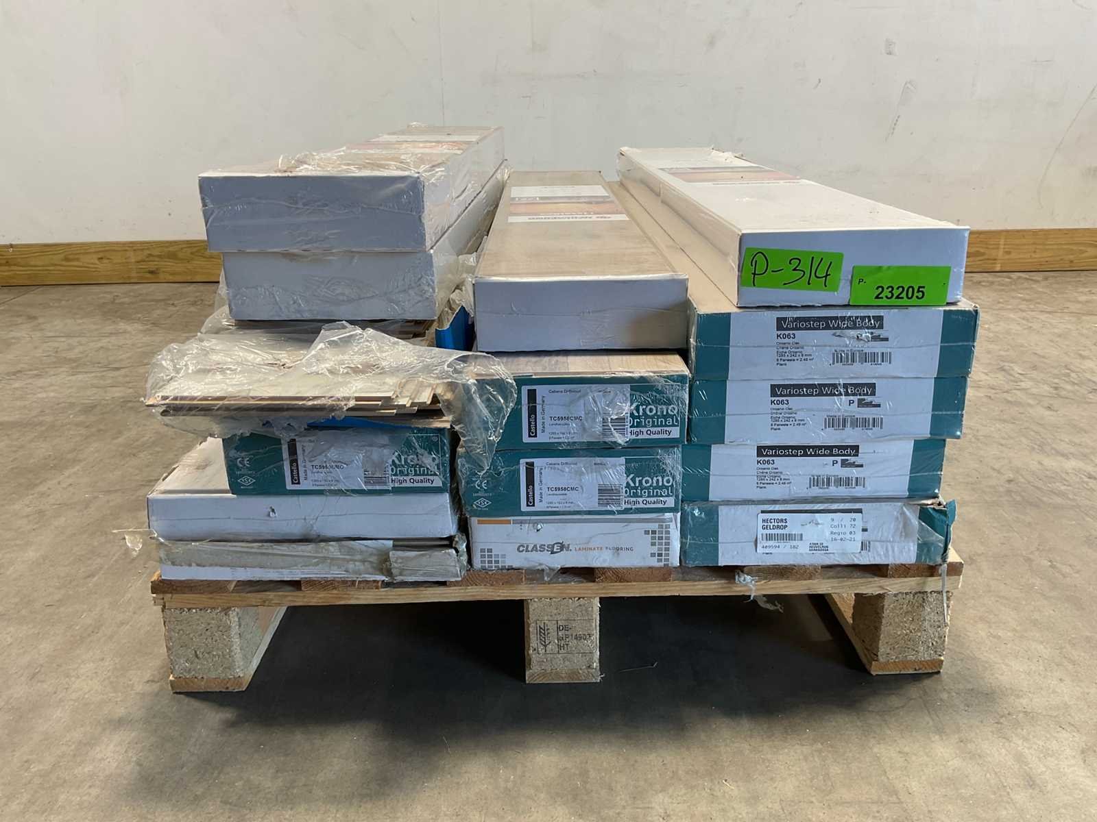 Mixpallet met diverse soorten laminaat – ongeveer 15 pakken, goed voor circa 33m². Bekijk de foto’s voor specificaties en details.