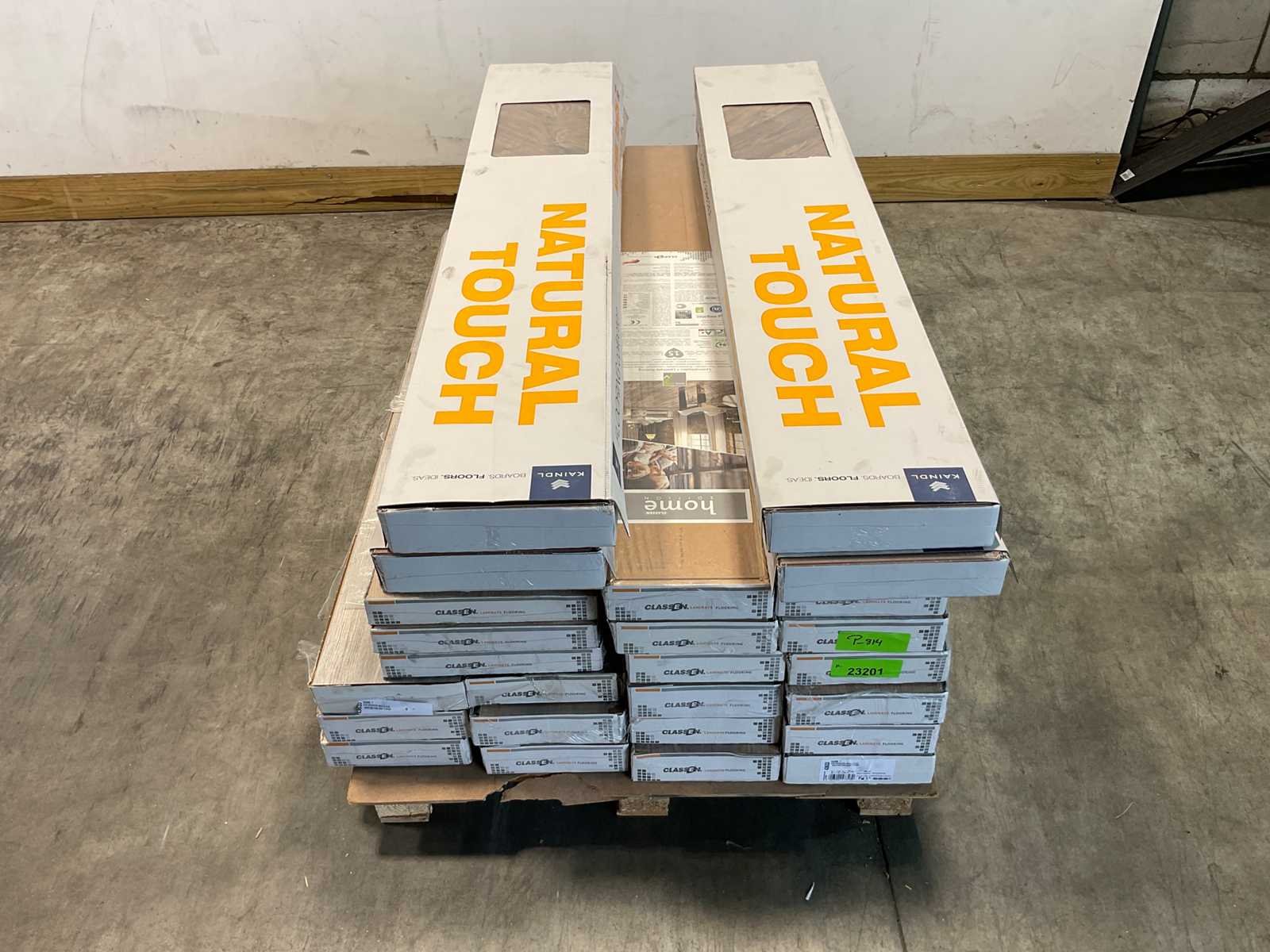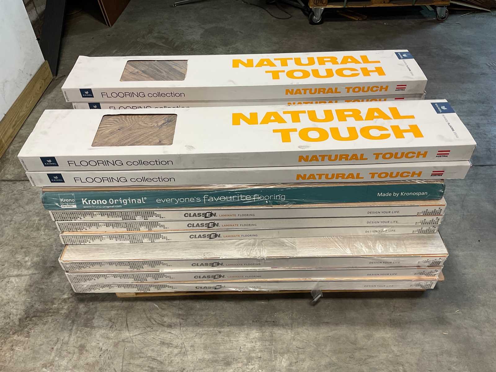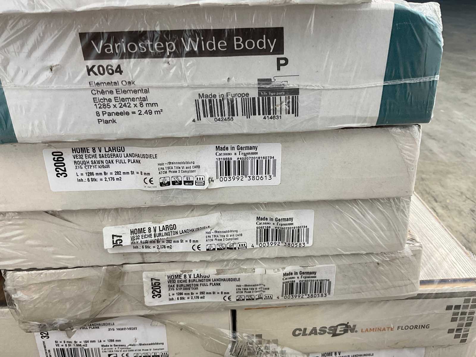 Mixpallet met diverse soorten laminaat – ongeveer 26 pakken, goed voor circa 57 m². Bekijk de foto’s voor specificaties en details.
