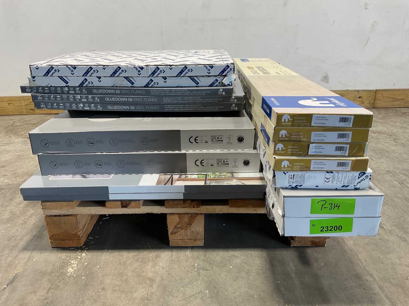 Mixpallet met diverse soorten laminaat – ongeveer 18 pakken, goed voor circa 39 m². Bekijk de foto’s voor specificaties en details.