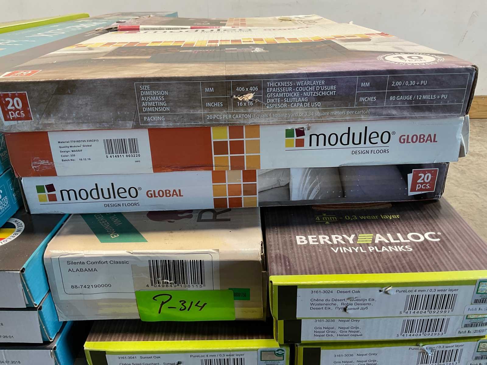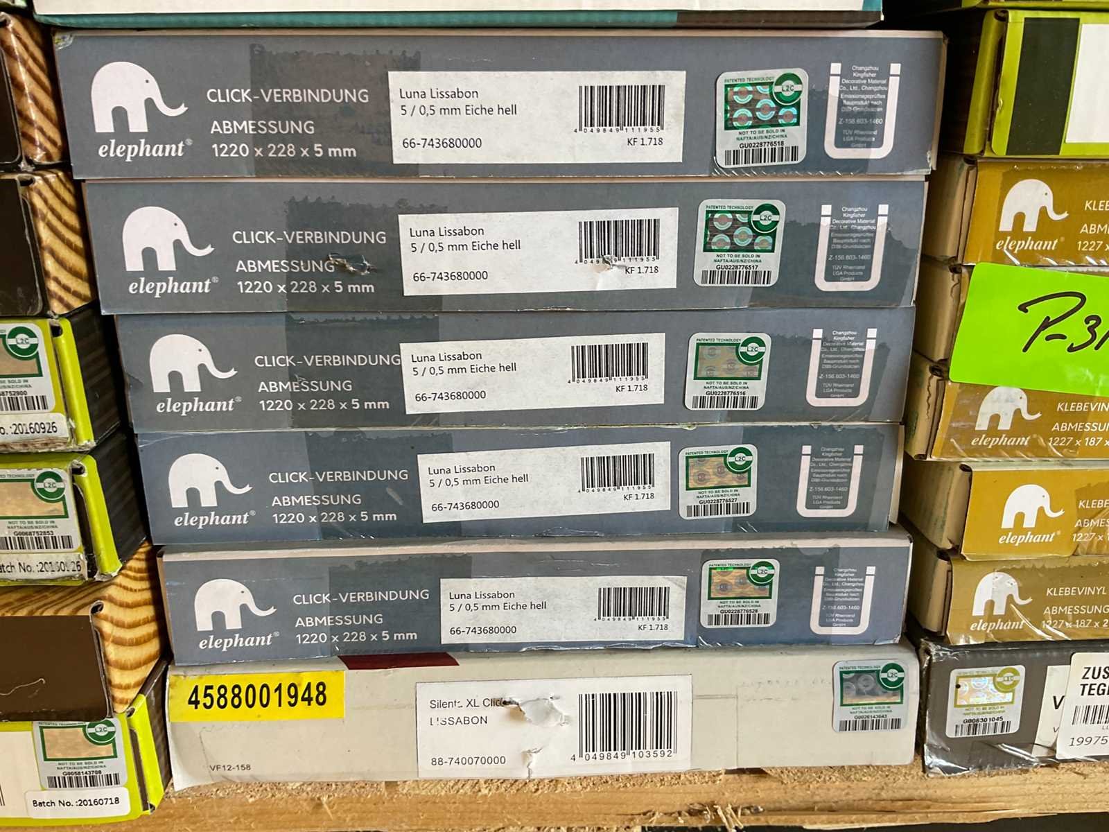 Mixpallet met diverse soorten laminaat – ongeveer 53 pakken, goed voor circa 115 m². Bekijk de foto’s voor specificaties en details.