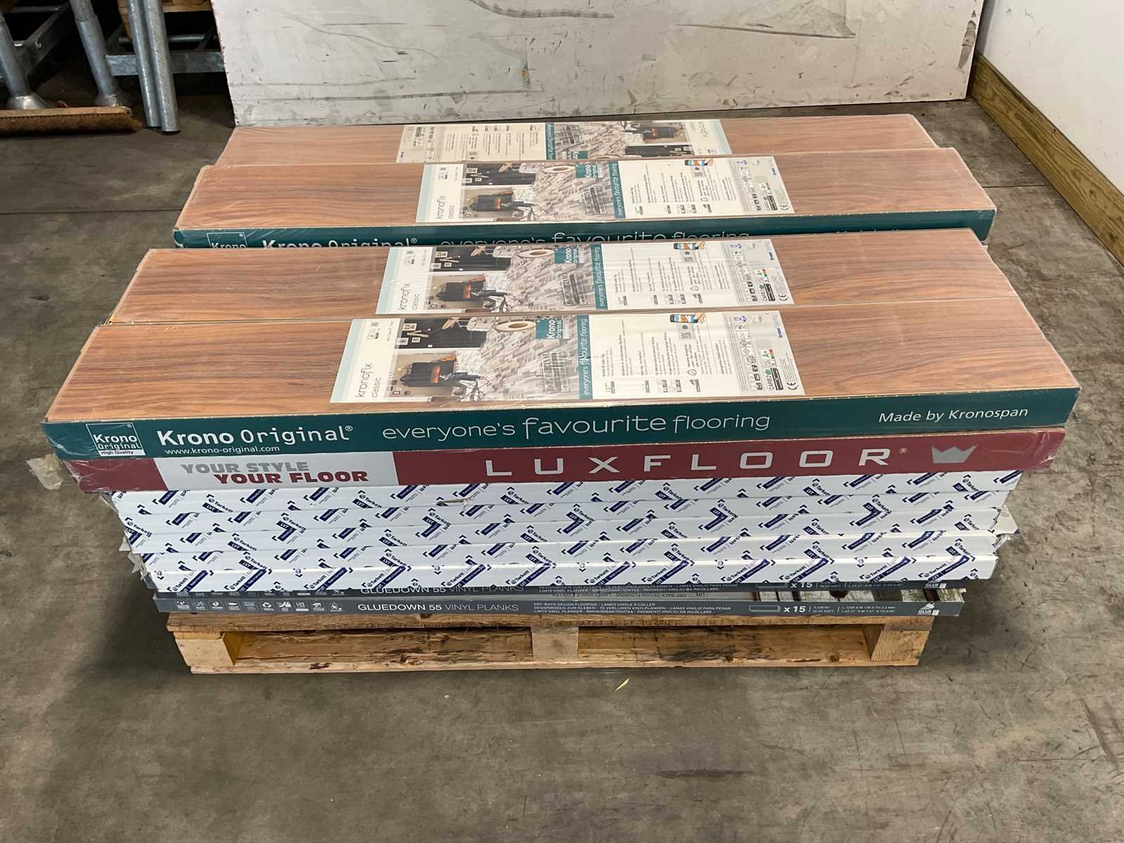 Mixpallet met diverse soorten laminaat – ongeveer 39 pakken, goed voor circa 85 m². Bekijk de foto’s voor specificaties en details.
