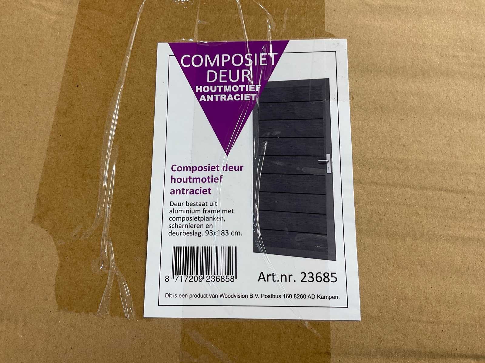 Kavel bevat: 1x Deur met composiet binnenwerk in aluminium frame (183 x 93 cm) 1x aluminium kozijnset (270 x 108 cm) Inclusief hang- en sluitwerk Buitendeur: true Stomp: true Afmeting h: 1830mm Afmeting b: 930mm Totale afmeting lxbxh: 2700x1080mm Aluminium: true Kleur: Antraciet
