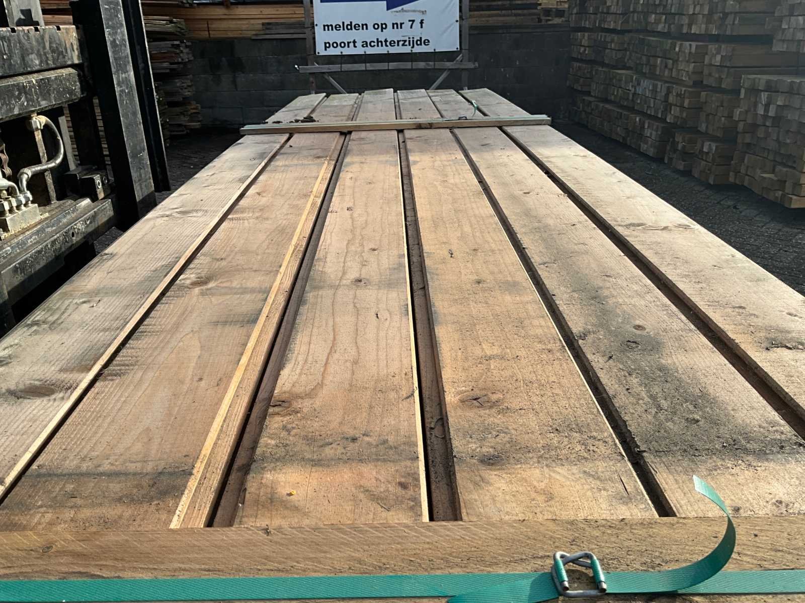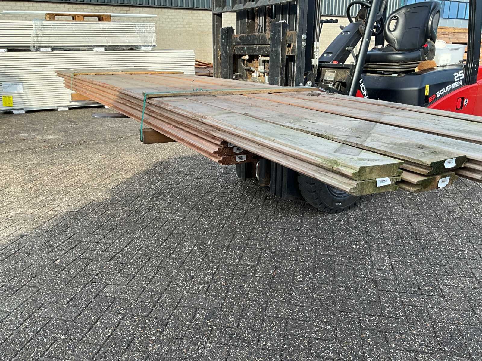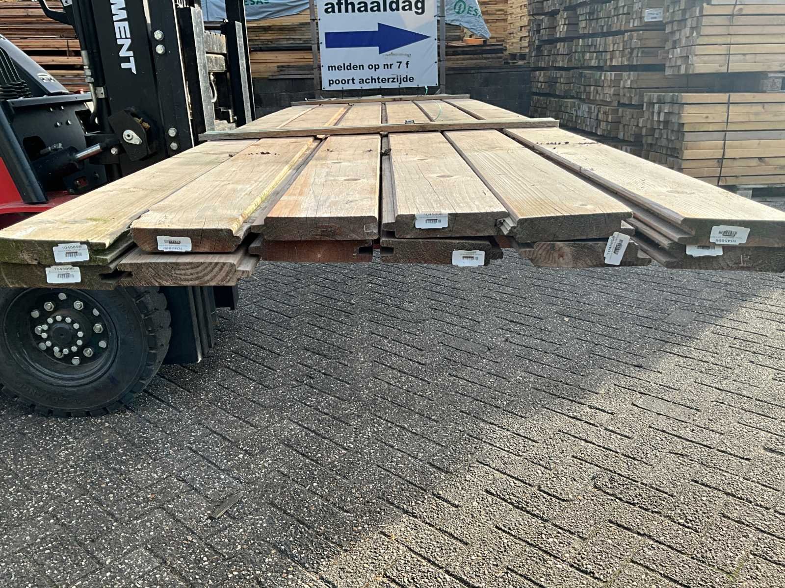 Redvision blokhutprofiel – vergrijsd, diverse maten. 12 stuks: 400 × 14,5 × 2,8 cm. 18 stuks: 300 × 14,5 × 2,8 cm. Houtsoort: Redvision Materiaal: Blokhutprofiel Lengte: 300-400cm Breedte: 145mm Hoogte: 28mm Kopmaat: 28x145 Gewicht: 200kg
