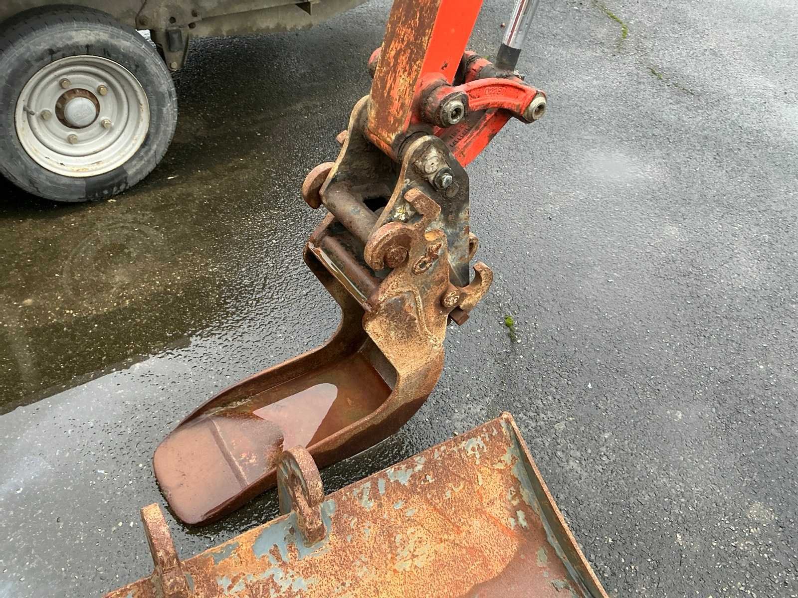 Voorzien van extra graafbak 100x45cm , rode sleutel ontbreekt. Brandstofdop ontbreekt. Onderste raam van de deur kapot. Merk: Kubota Type: KX019-4GL Bouwjaar: 2023 Serienummer: KBCGF22BTPZE79512 Inclusief graafbak: Yes Graafbak afm. l: 600mm Graafbak afm. b: 240mm Rups breedte: 230mm Afgelezen urenstand: 778 Eigen gewicht: 1780kg Totale afmeting L: 3500mm Totale afmeting Breedte: 1260mm Totale afmeting Hoogte: 2300mm