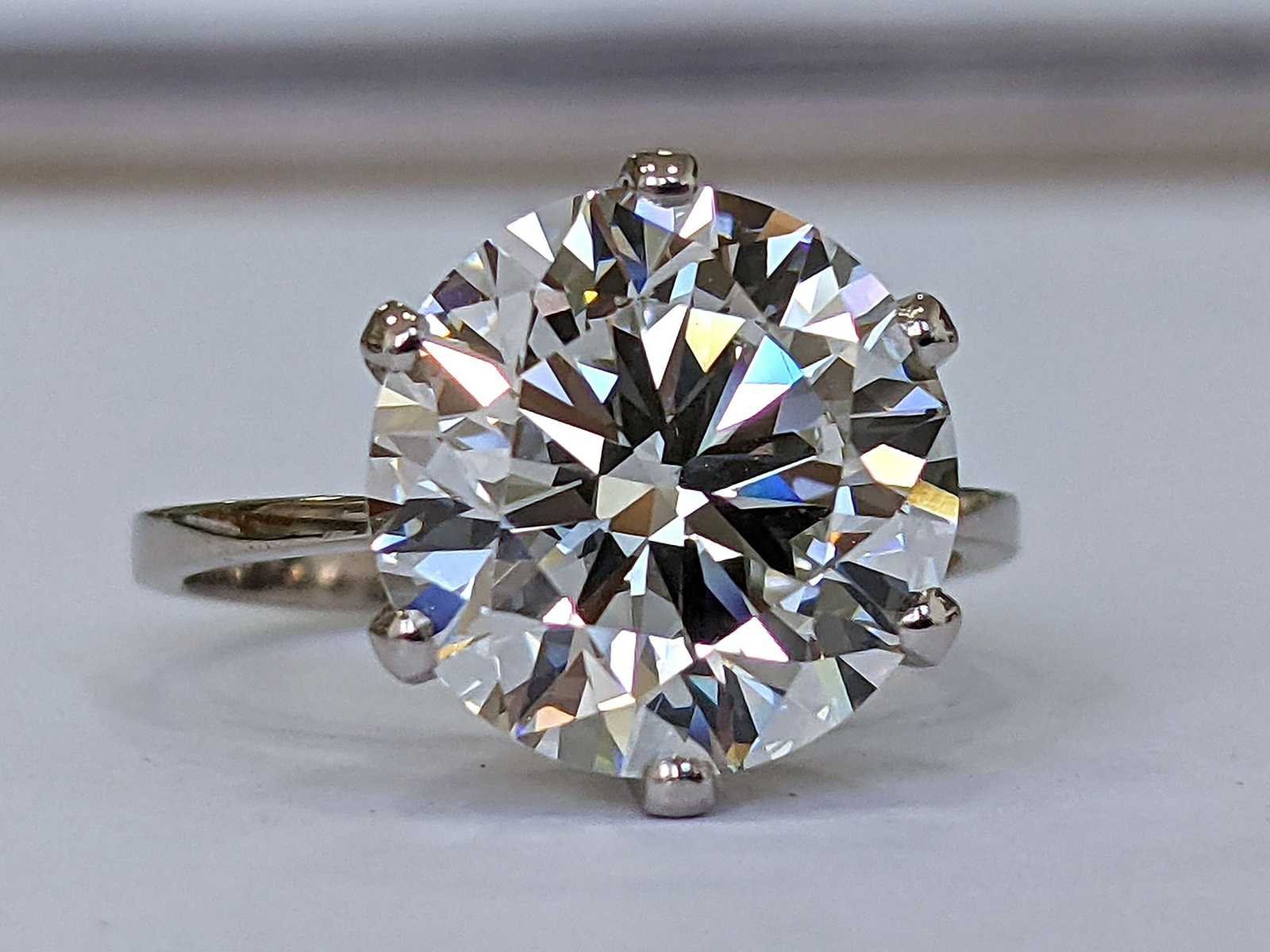 Ongebruikt Vorm: rond Briljant Gewicht: 5,06 CRT Kleur: E Duidelijkheid: VS1 Pools: Uitstekend Symmetrie: Uitstekend Rapportnummer IGI 18k wit goud Met IGI-certificaat Bezichtiging op afspraak Materiaal: Witgoud Ringmaat : 52 Certificaat: ja Lage schatting: 9800€