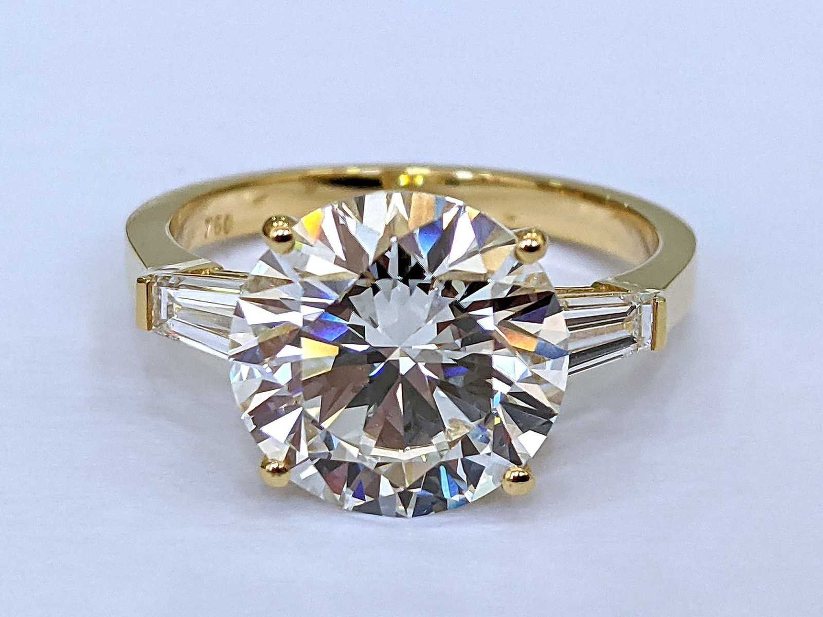Ongebruikt Vorm: rond Briljant Gewicht: 6,44 CRT Kleur: E Duidelijkheid: VVS2 Pools: Uitstekend Symmetrie: Uitstekend Rapportnummer IGI 18K geel goud Met IGI-certificaat Bezichtiging op afspraak Product type: 18 karaat geel goud Kleur diamant: E Slijpvorm diamant: Rond Briljant Ringmaat: 56 Slijpvorm: rond Certificaat: International Gemological Institute (IGI) Kleur: VVS2 Materiaal: 18 karaat geel goud Lage schatting: 11000€