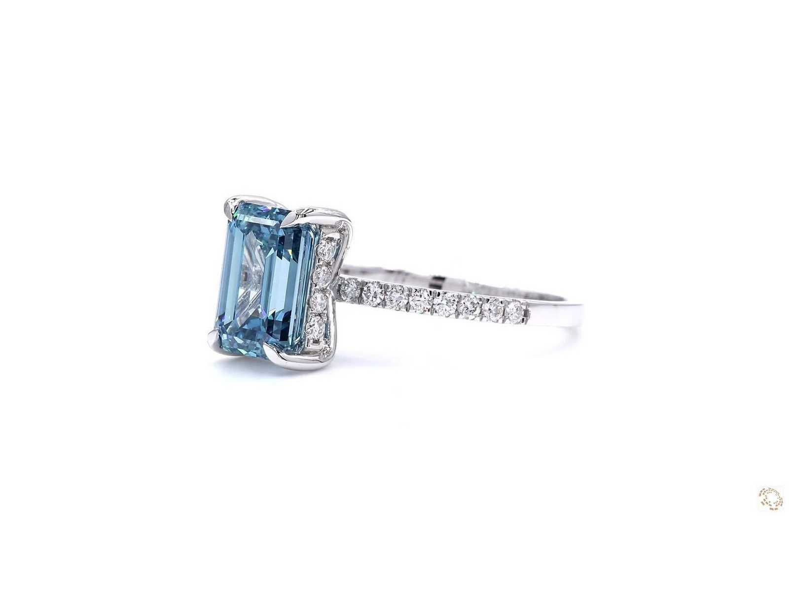 Ring in wit 18KT Ringmaat 54 Ronde briljant Caraat: 3,45 ct Kleur: Fancy Blue Fluorescentie: Geen Helderheid: VVS2 Totaalgewicht van de ring: 3,24 g Bezichtiging op afspraak Materiaal: 18 karaat Witgoud Ringmaat : 54 Certificaat: ja Lage schatting: 7100€