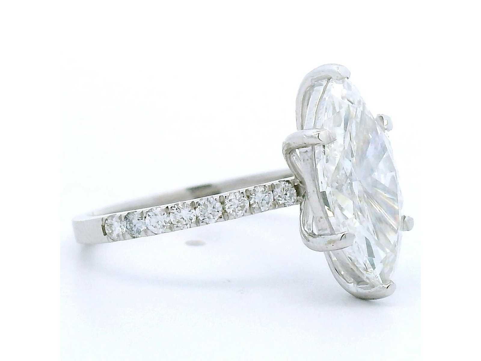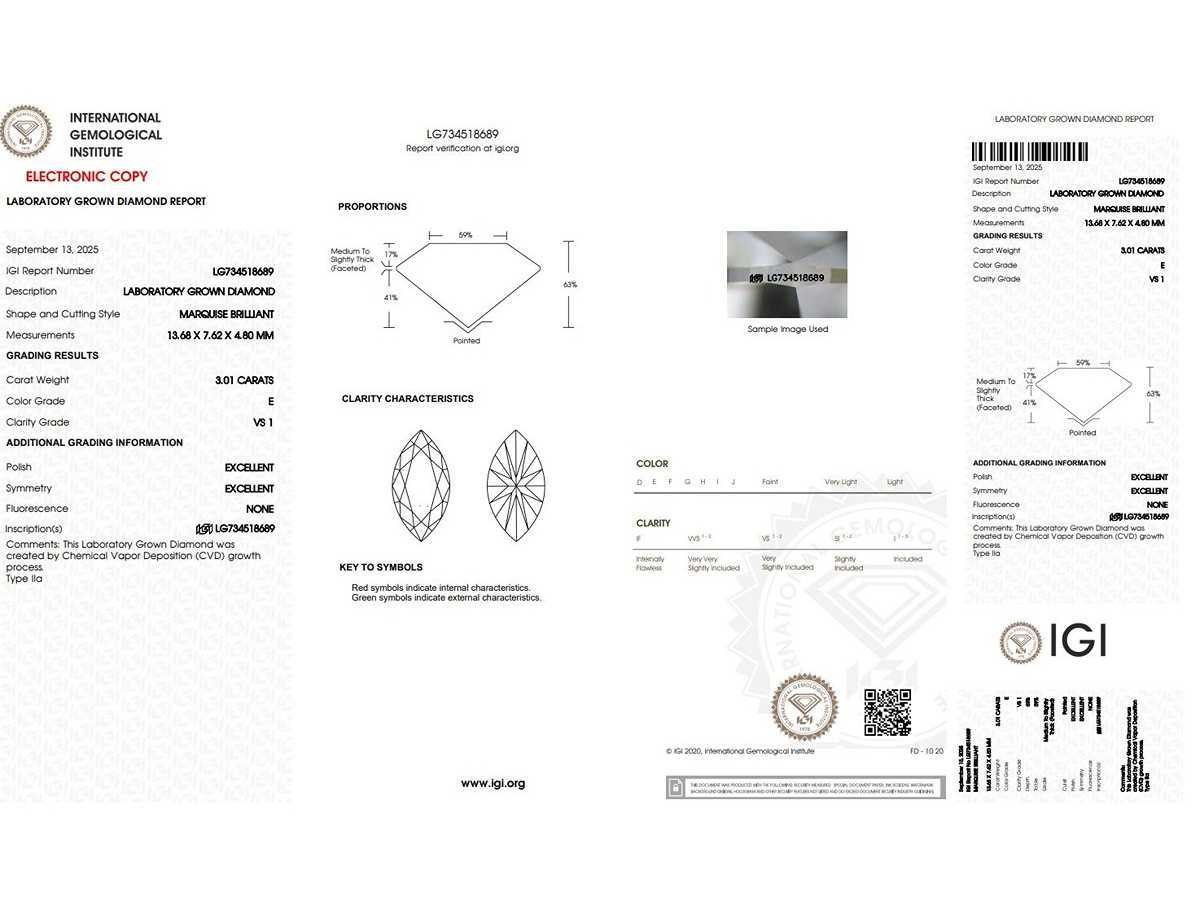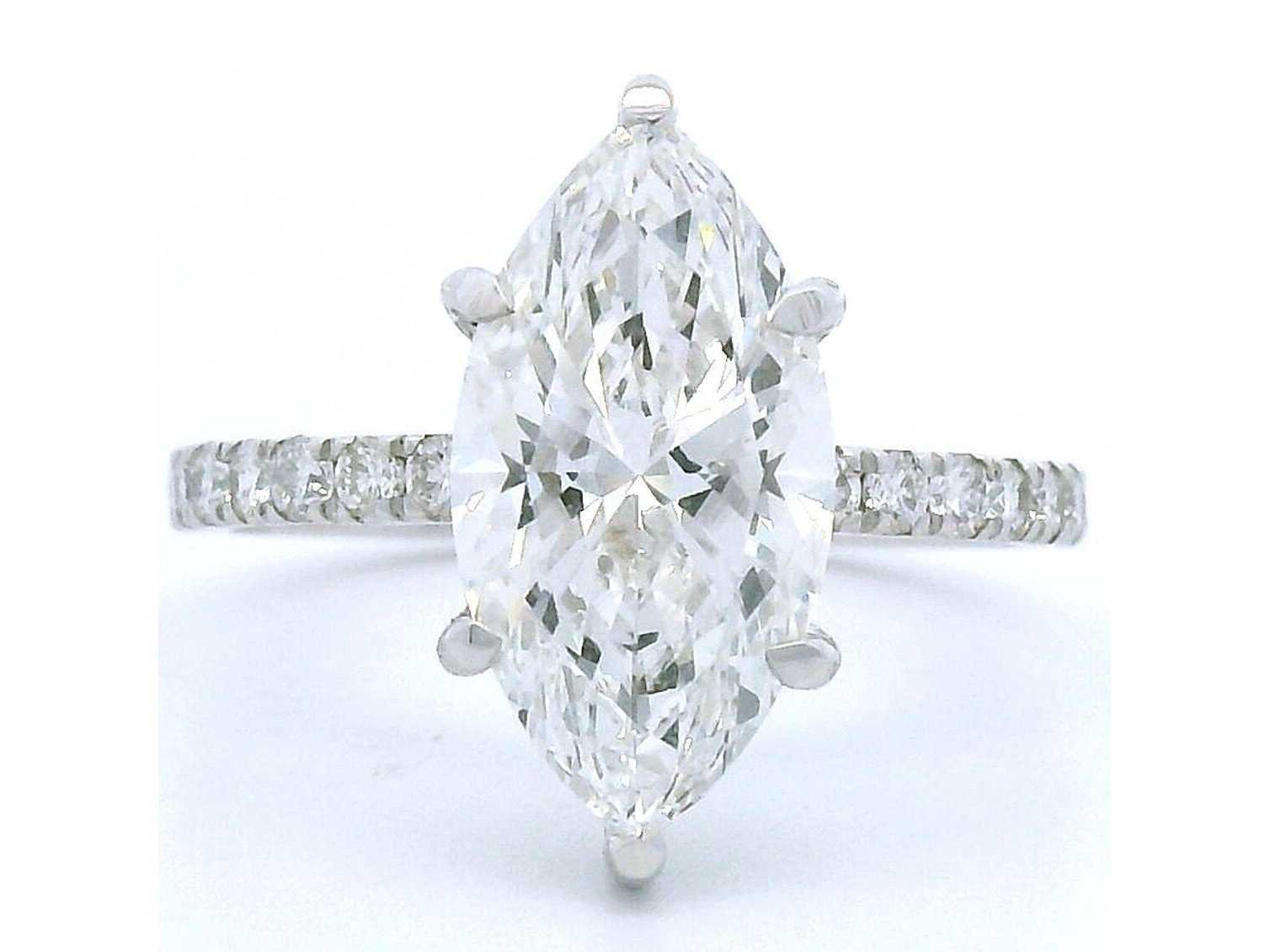 Exclusieve 18K witgouden ring Ringmaat - 54 EU / 14 IT / 6.75 US Rapportnummer IGI: LG734518689 Totaal Carat Gewicht - 3.34 Vorm: Marquise Brilliant Gewicht van de hoofsteen: 3,01 CT Kleur: E Helderheid: VS1 Snede: uitstekend Symmetrie: uitstekend Omringende stenen - 0,33 (16 stuks) Totaal ringgewicht: 3,20 gram Bezichtiging op afspraak Materiaal: Witgoud Ringmaat : 54 Certificaat: ja Lage schatting: 5700€