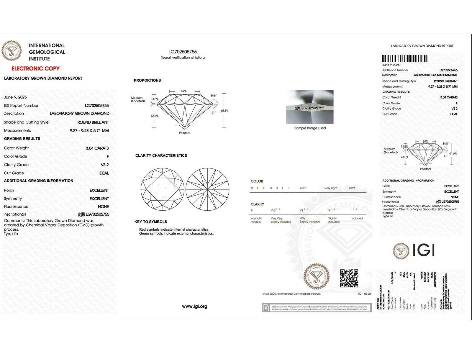 Laboratoriumrapport IGI: LG702505755 Ring in wit 18KT Ringmaat 14/54/6-3/4 Ronde briljant Caraat: 3,04 ct Kleur: F Fluorescentie: Geen Helderheid: VS2 Totaalgewicht van de ring: 3,0 g Bezichtiging op afspraak Materiaal: Witgoud Ringmaat : 54 Certificaat: ja Lage schatting: 6100€