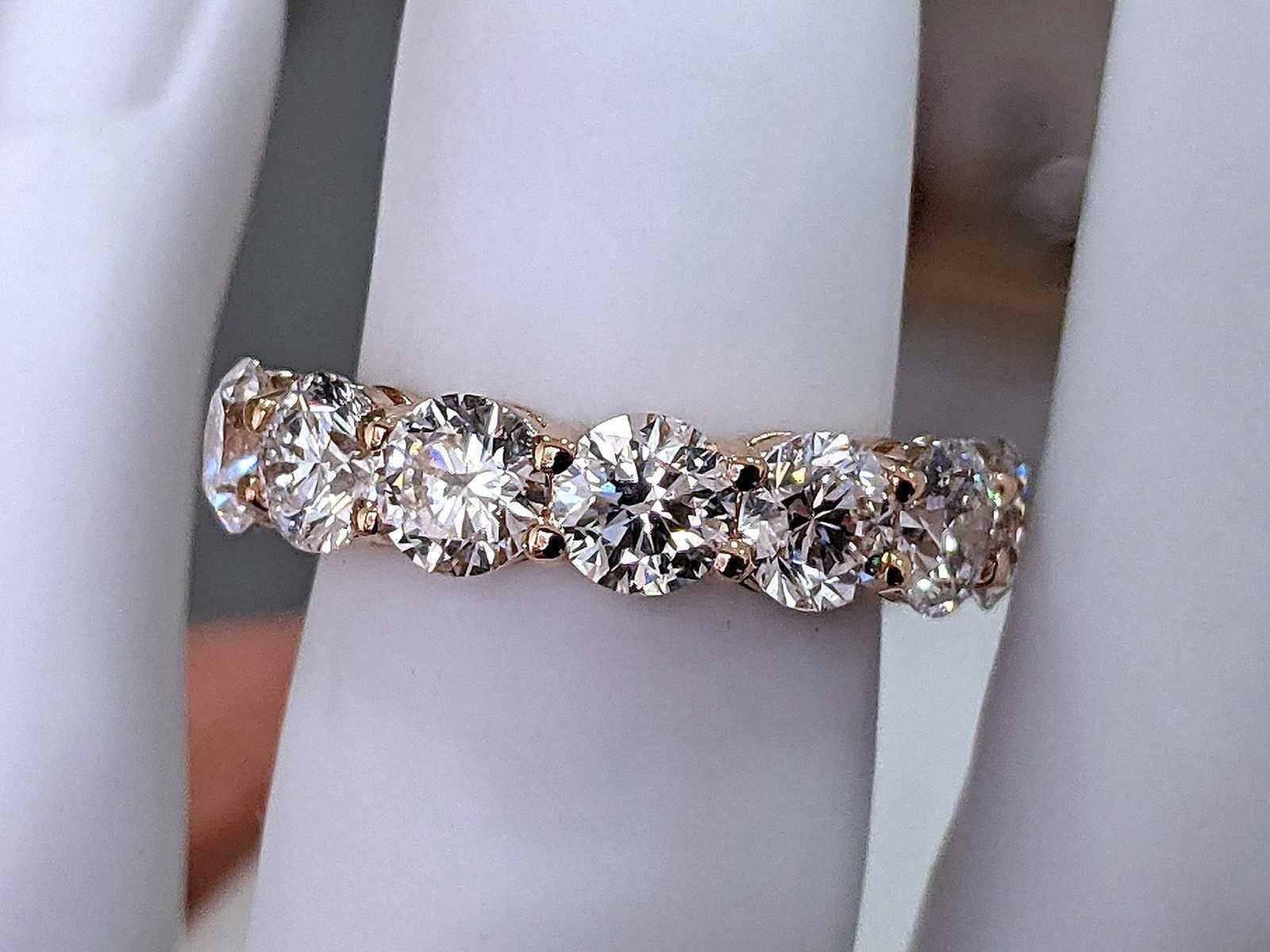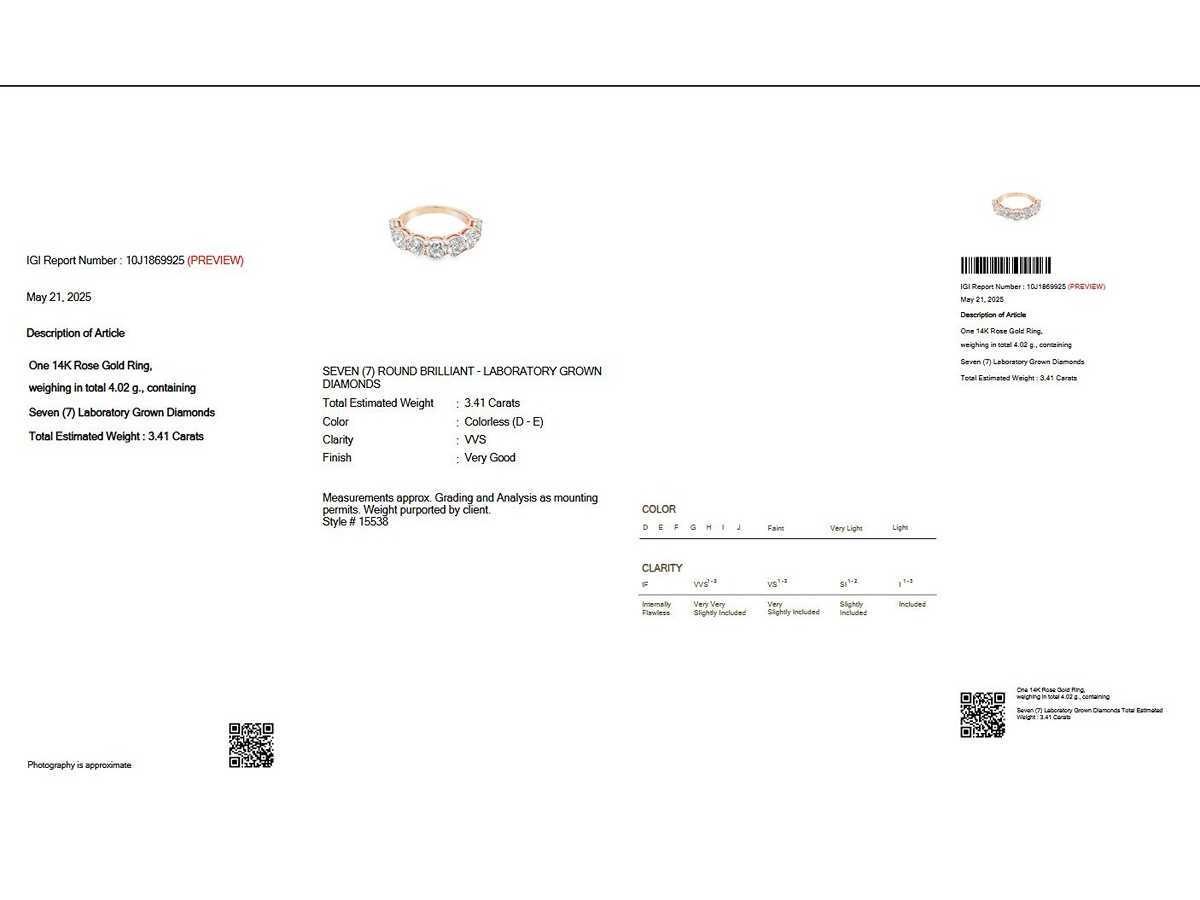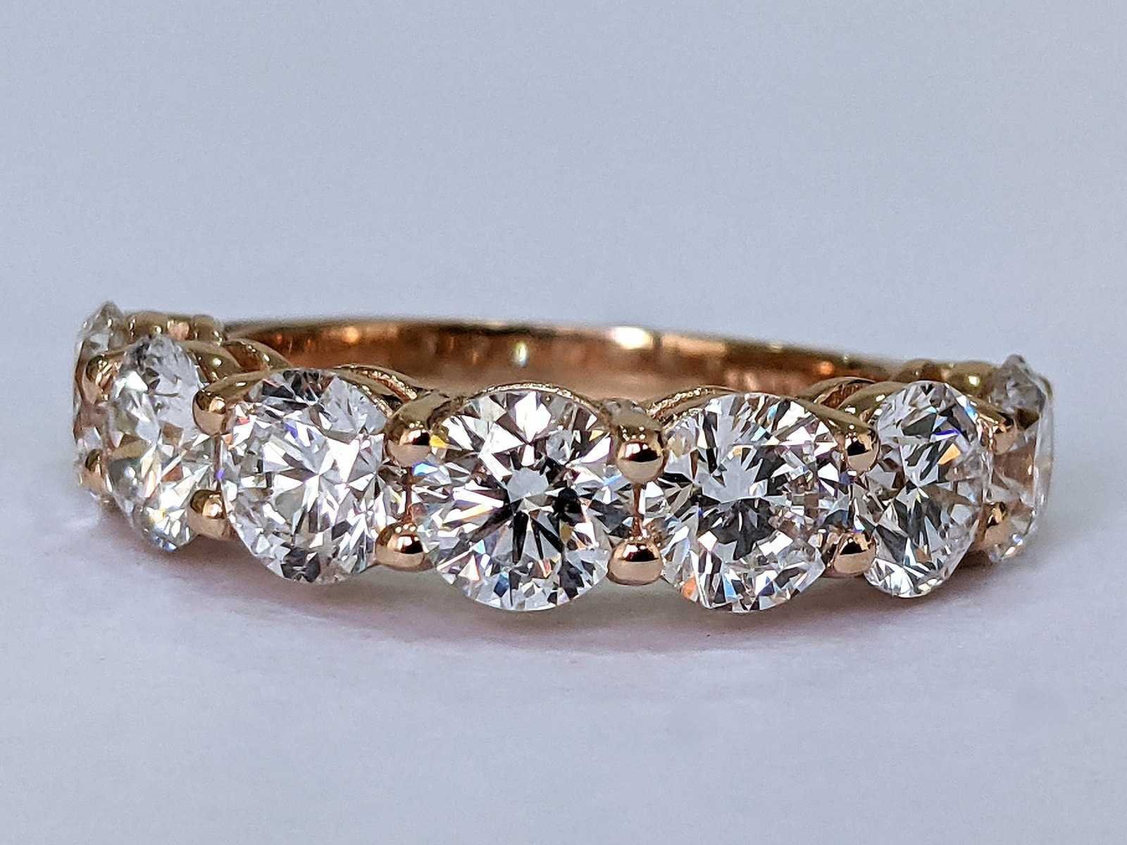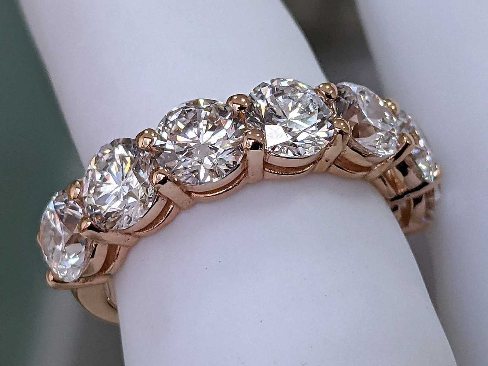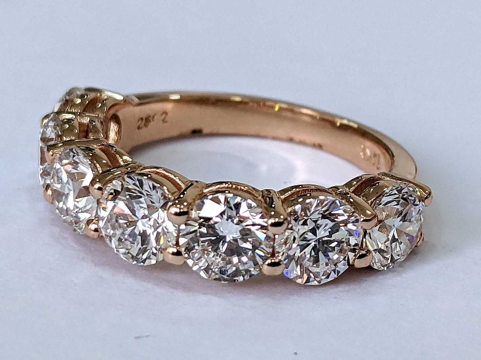 Diamant Slijpvorm: Rond Briljant Karaat: 3,41 cttw / 7 stenen Kleur: Kleurloos (D - E) Duidelijkheid: VVS Bezichtiging op afspraak Product type: Rose goud Ringmaat: 56 Certificaat: Ja Lage schatting: 3700€