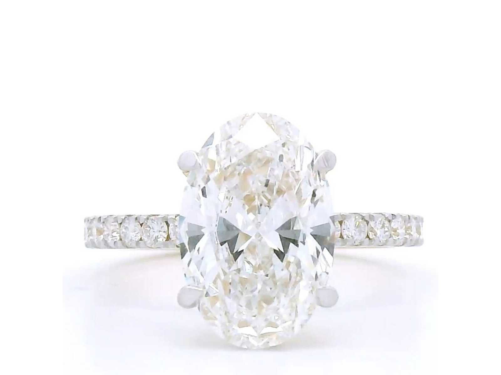Ring in geel 18KT Ringmaat 55 Ronde briljant Caraat: 3,91 ct Kleur: D Fluorescentie: Geen Helderheid: VS2 Totaalgewicht van de ring: 3,36 g Bezichtiging op afspraak Materiaal: 18 karaat Geelgoud Ringmaat : 55 Certificaat: ja Lage schatting: 6400€