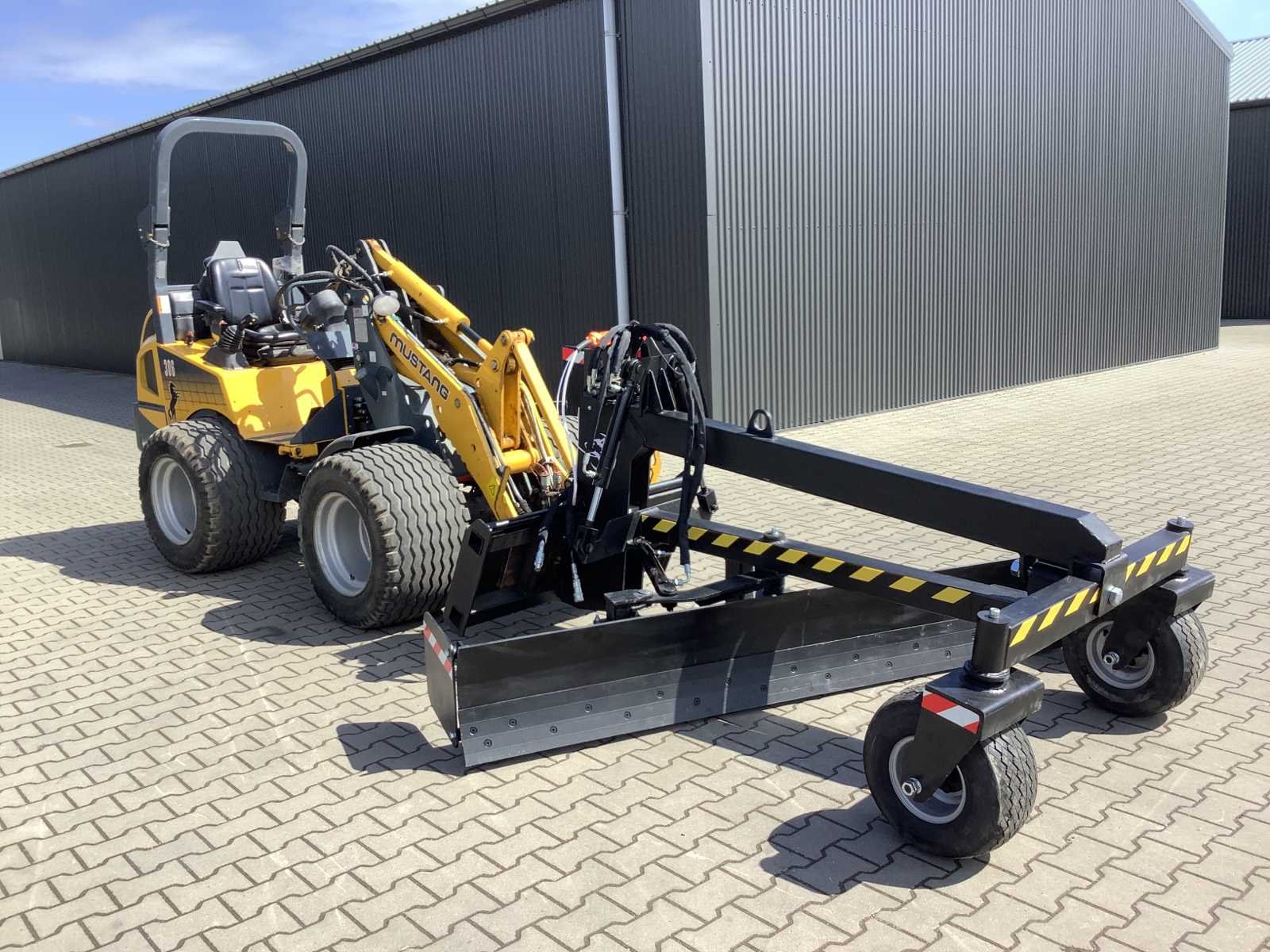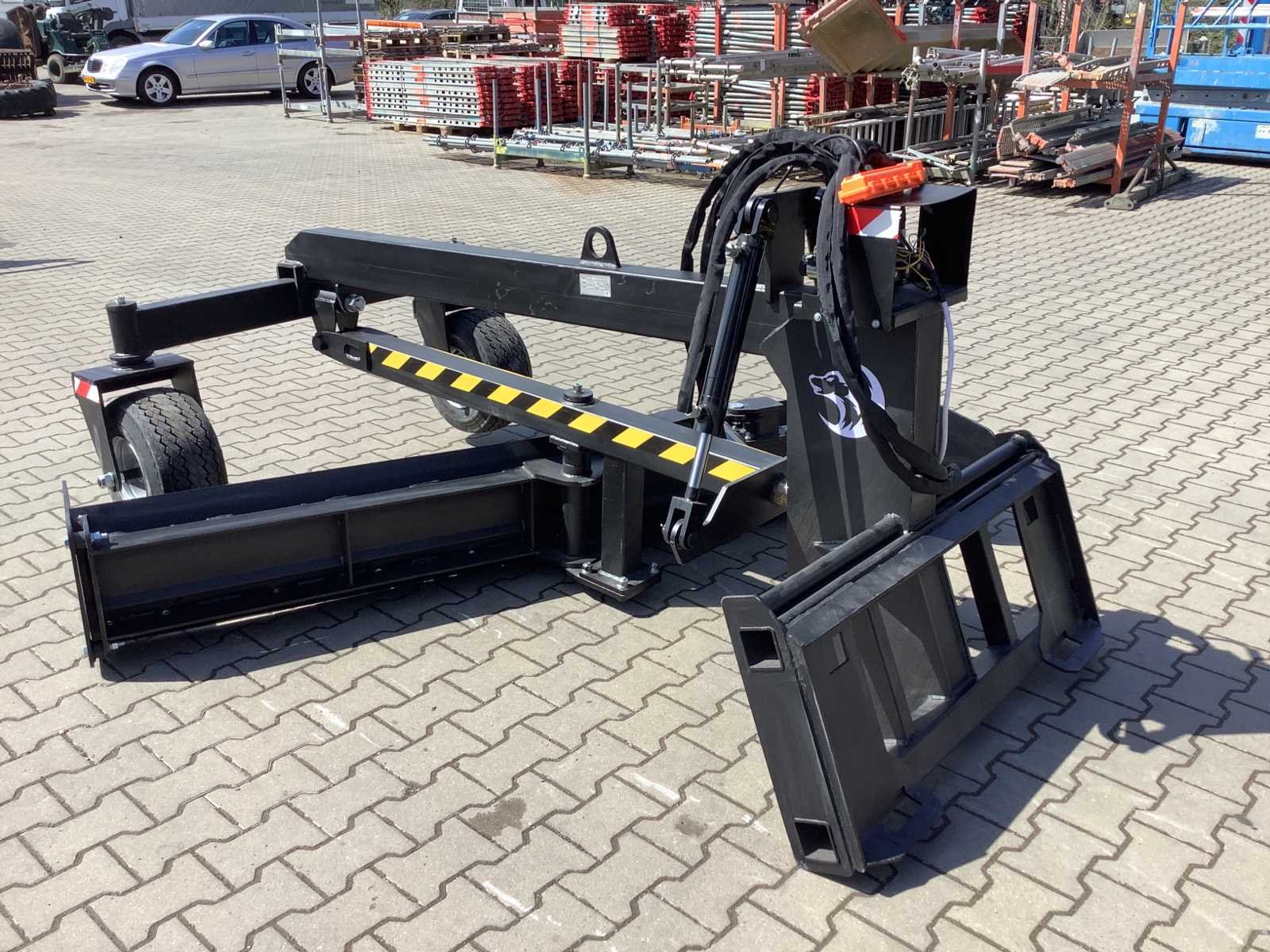 Werkbreedte 240 cm, hydraulisch bestuurbaar, voorzien van afstandsbediening (aan te sluiten op 12V systeem), rotatiehoek 25 graden, hellingshoek 24 graden, hydropomp, hydraulisch slangenpakket met aansluitingen, Bobcat/schranklader opname-/aanbouwplaat, luchtbanden, ongebruikt Merk: Field Type: Leveller 2400 Bouwjaar: 2025 Eigen gewicht: 520kg Totale afmeting L: 2900mm Totale afmeting Breedte: 2425mm Totale afmeting Hoogte: 1350mm