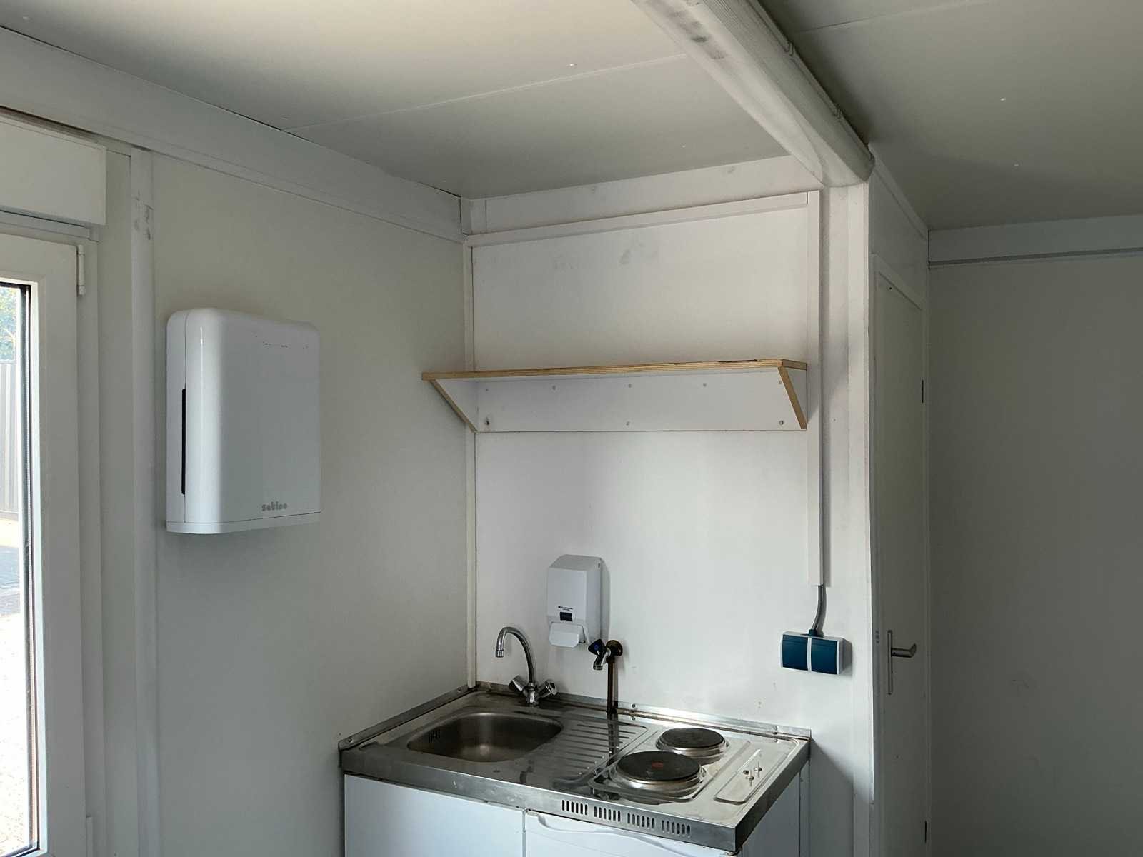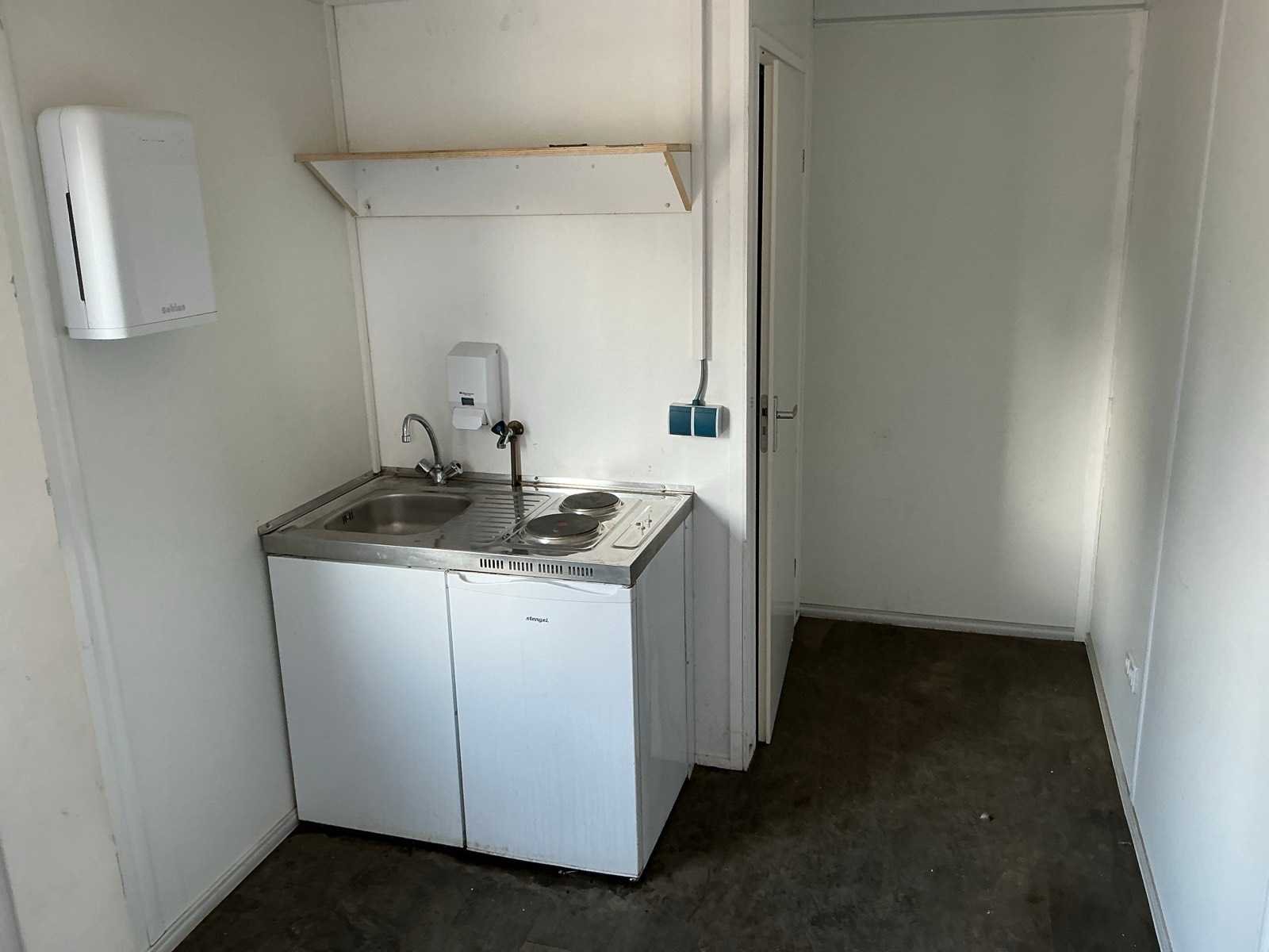 Voorzien van stopcontacten, verlichting, draai-/kiepramen met rolluiken, groepenkast, hijsogen, lepelgaten Merk: CTX Containex Schakelunit: true Directie-unit: true Keukenblok: true Toilet: true