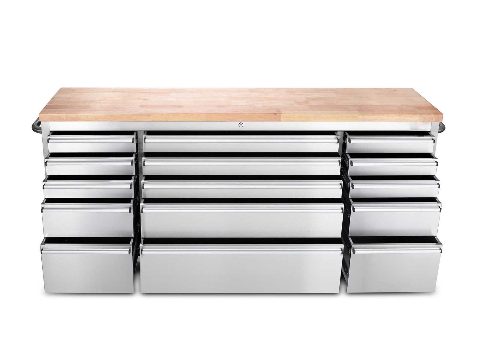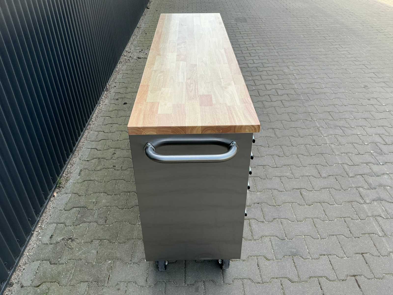 Materiaal RVS Voorzien van luxe afgewerkt houten werkblad, 15 laden, 4 zwenkwielen (2 voorzien van rem), ongebruikt in doos. Merk: Field Type: 7215 Inox Premium Bouwjaar: 2025