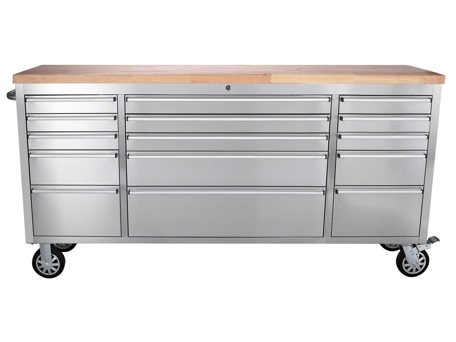 Materiaal RVS Voorzien van luxe afgewerkt houten werkblad, 15 laden, 4 zwenkwielen (2 voorzien van rem), ongebruikt in doos. Merk: Field Type: 7215 Inox Premium Bouwjaar: 2025