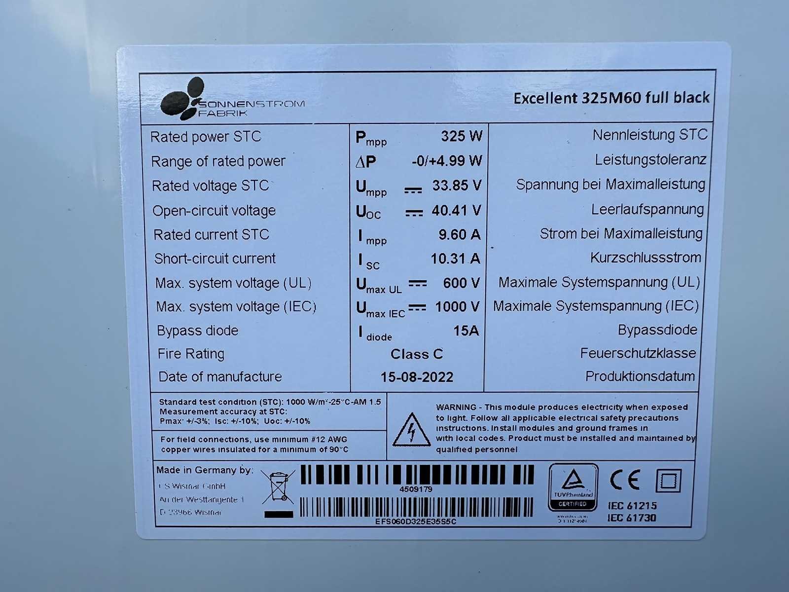 Set van 14 zonnepanelen (325 wp) met Solax X1 4.2 T D omvormer (1-fase) omvormer: Solax X1 4.2 T D omvormer (1-fase) 4,2 kW totaal vermogen: 4550 Wp vermogen: 325 Wp per zonnepaneel herkomst: made in Germany conditie: nieuw Merk: Sonnenstromfabrik Max. dc power: 325W Eigen gewicht: 23kg Totale afmeting L: 1555mm Totale afmeting Breedte: 1145mm Totale afmeting Hoogte: 35mm