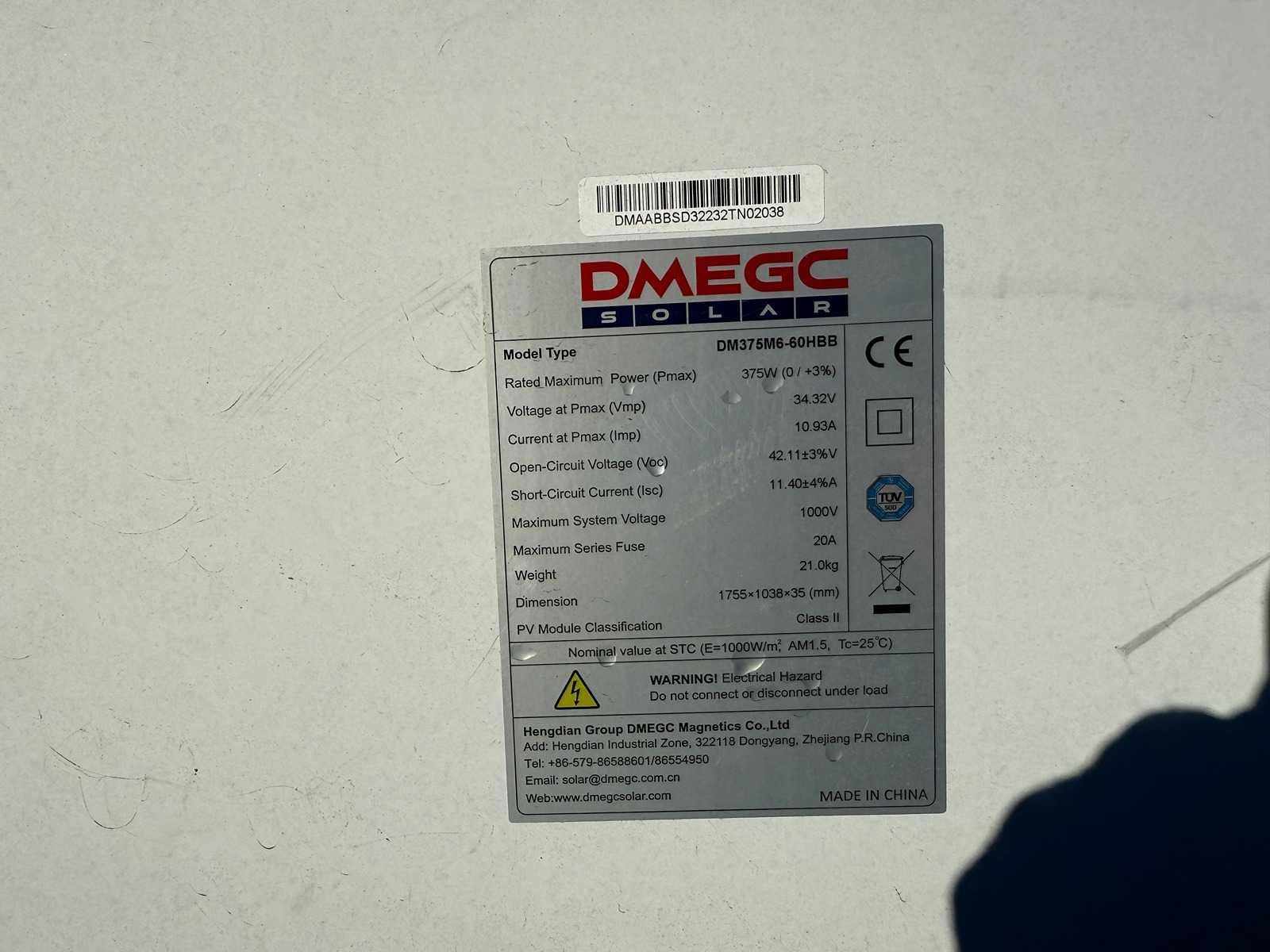 Zonnepanelen: 32x DMEGC (375 wp) Omvormer: Sungrow SG12.0RT Premium met Wifi totaal vermogen: 12.000 wp Conditie: ongebruikt Merk: DMEGC Type: DM375M6-60HBB Max. dc power: 375W Eigen gewicht: 21kg Totale afmeting L: 1755mm Totale afmeting Breedte: 1038mm Totale afmeting Hoogte: 35mm Leveringsvoorwaarden: Gratis op vrachtwagen