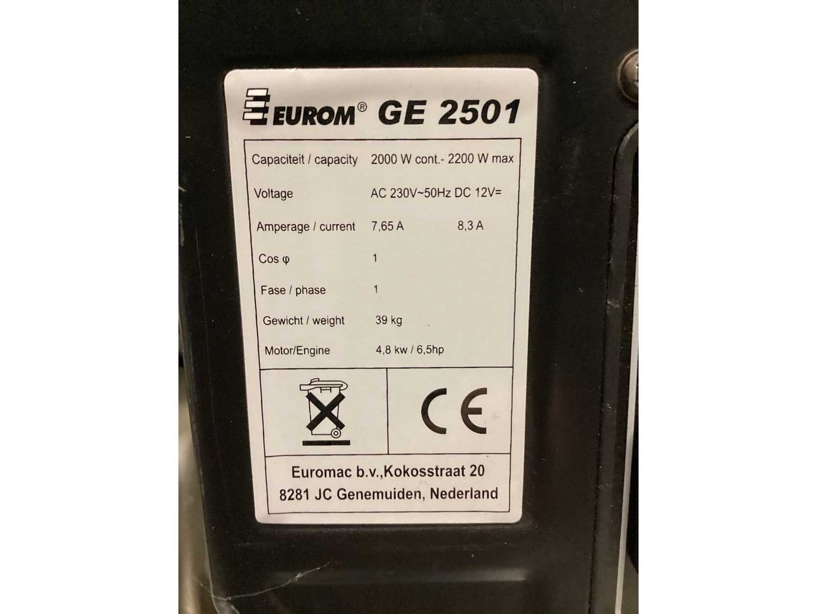 Merk: Eurom Type: GE2501 Motorvermogen (kW): 4.8kW