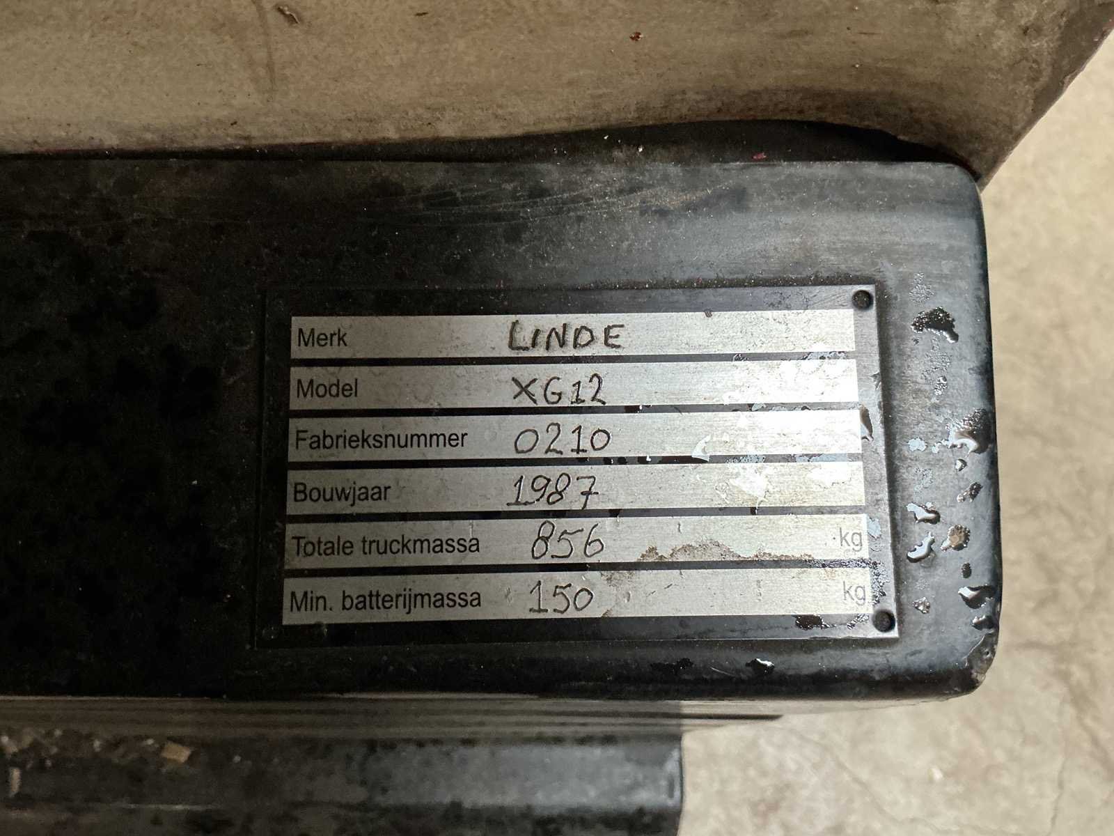 Merk: Linde Type: XG12 Bouwjaar: 1987 Hefhoogte: 3800mm Lepellengte: 1150mm Minimale doorrijhoogte: 2360mm
