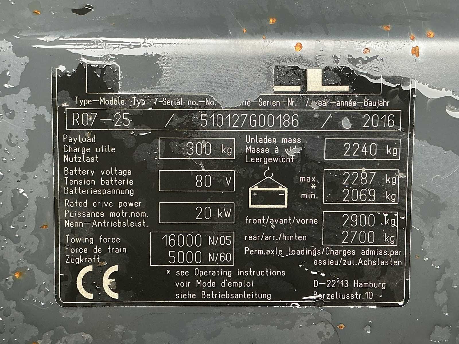 Merk: STILL Type: RO7-25 Bouwjaar: 2016 Serienummer: 510127G00186 Eigen gewicht: 2287kg